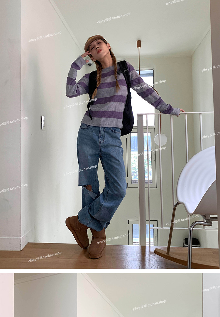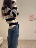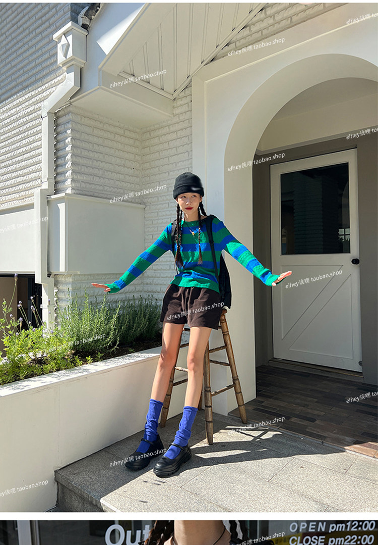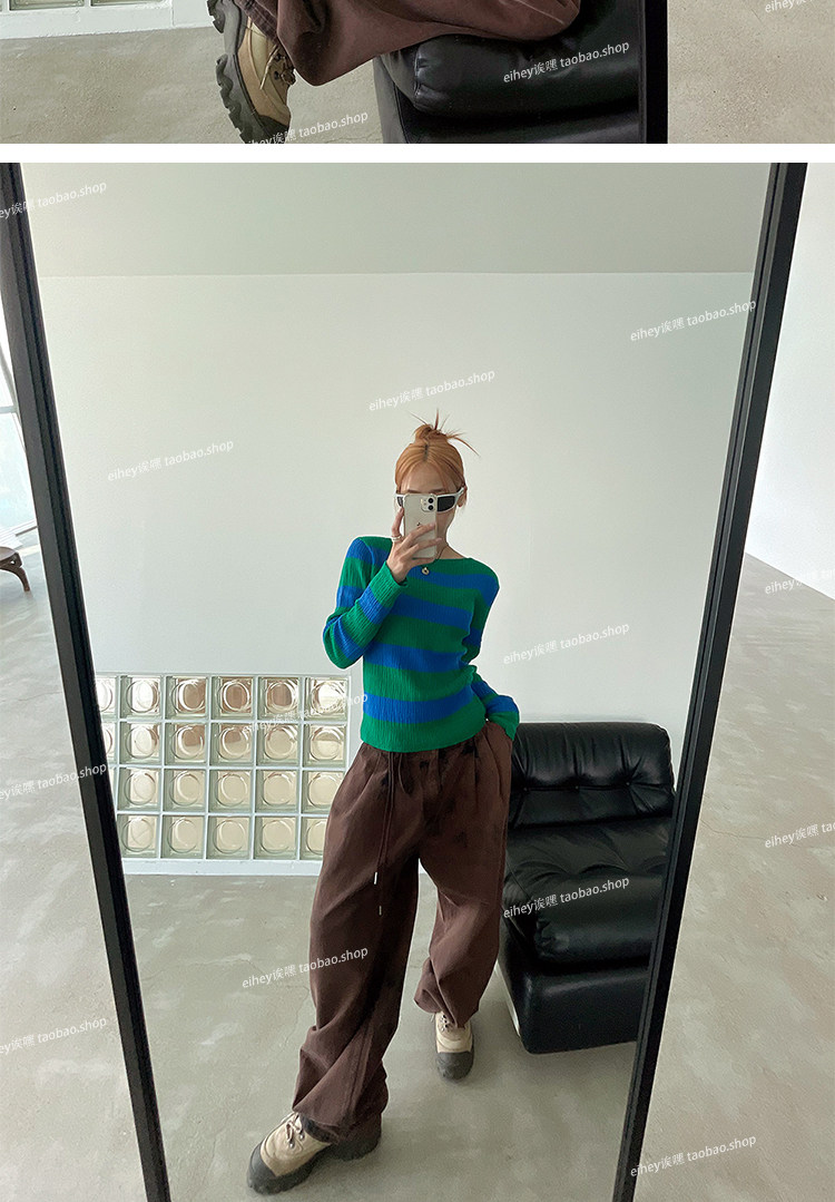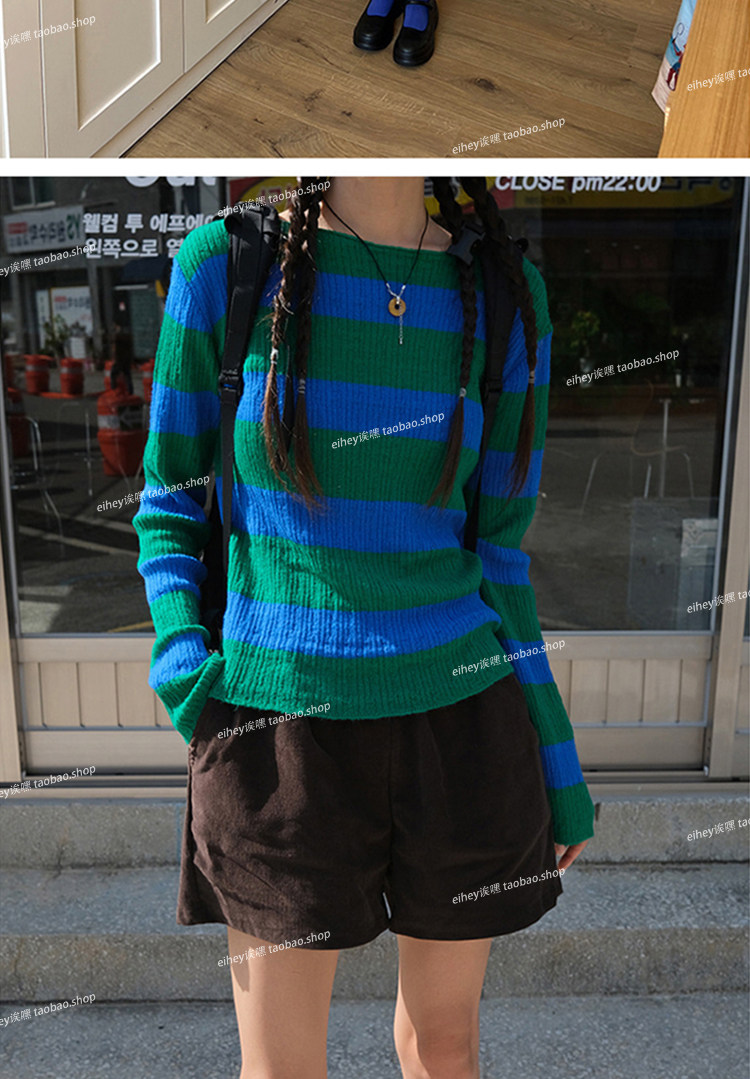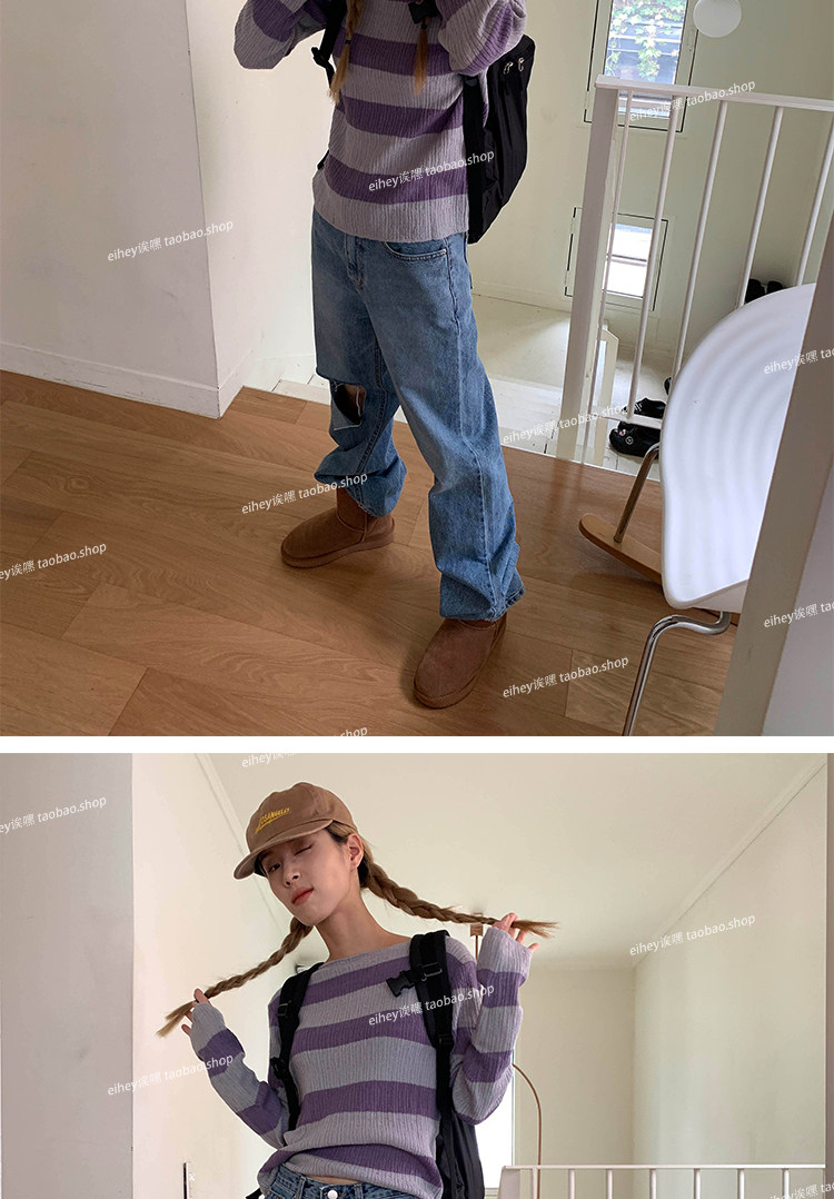 Eihey new Simple и универсальный цветовой блок круглый воротник Полосатый модный топ с длинными рукавами