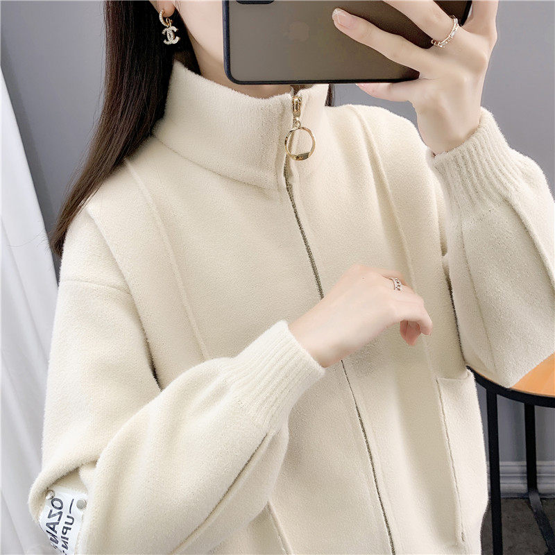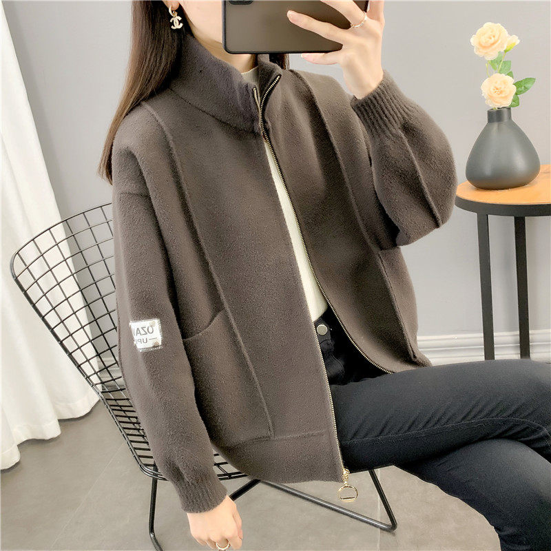 Трикотажное двусторонное демисезонное шерстяное пальто, куртка с молнией, короткий кардиган, в корейском стиле, оверсайз