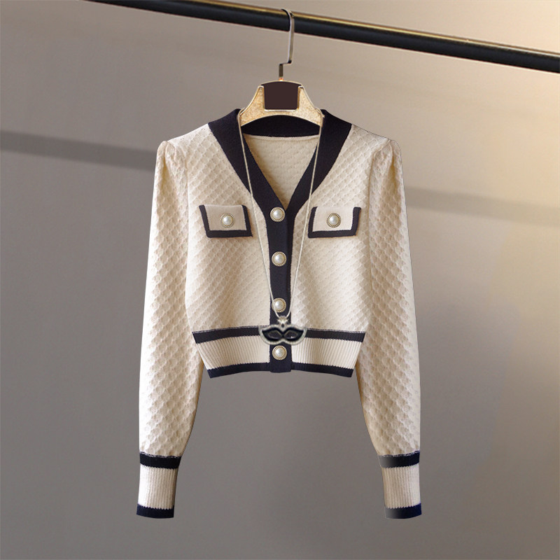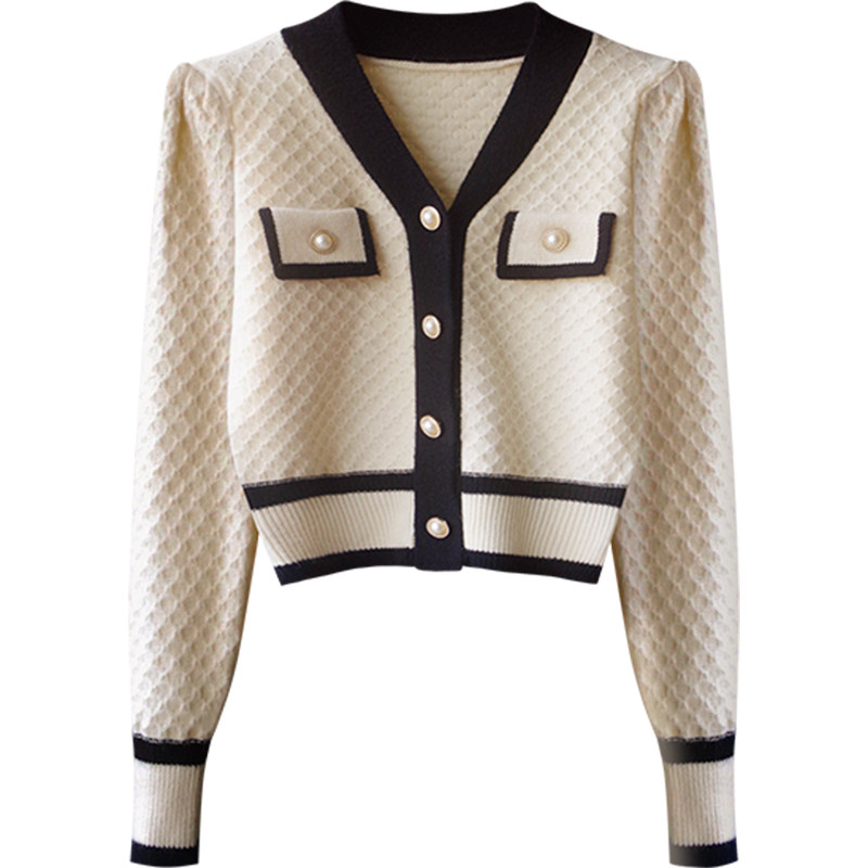 Ретро трикотажный свитер, кардиган, короткая демисезонная куртка, в стиле Шанель, высокая талия