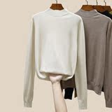 Базовый приятный телу трикотажный белый свитер, высокий воротник