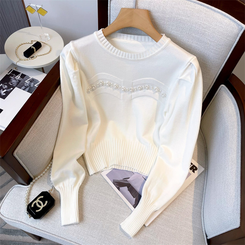 Трикотажный осенний ретро короткий свитер, изысканный стиль, французский стиль, рукава фонарики