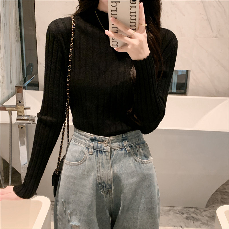 Свитер, лонгслив, демисезонное трикотажное термобелье, высокий воротник, облегающий крой, в обтяжку