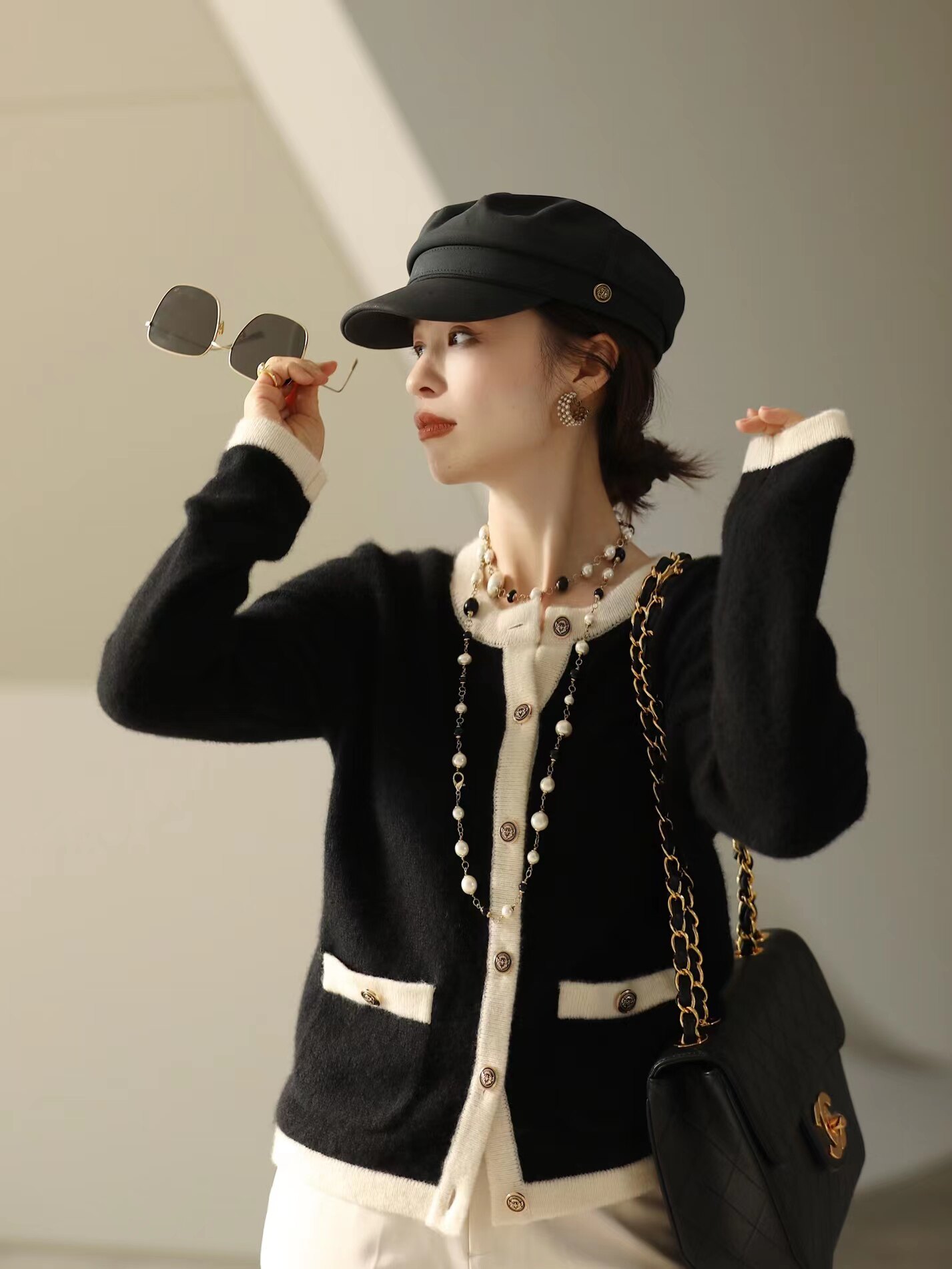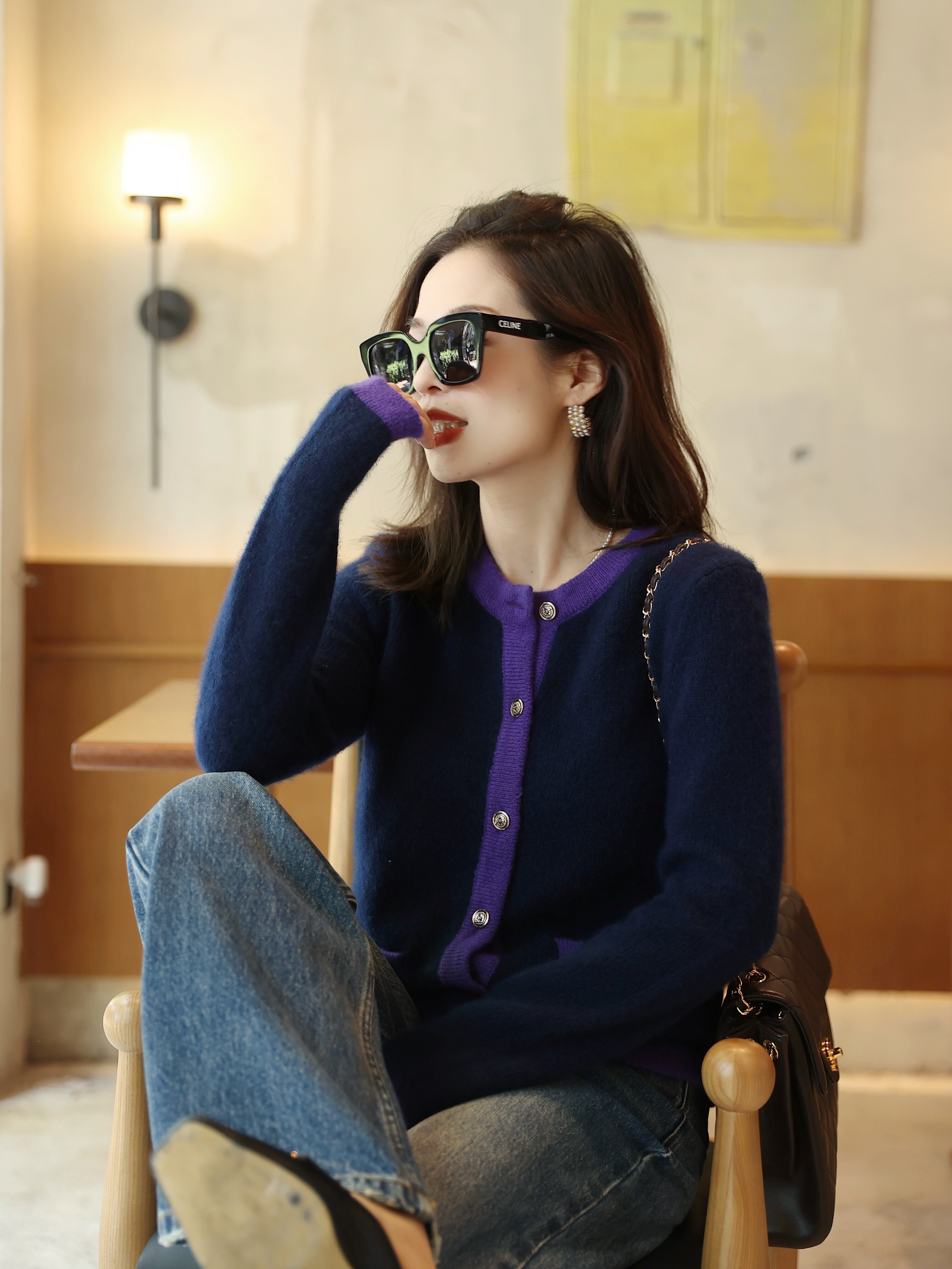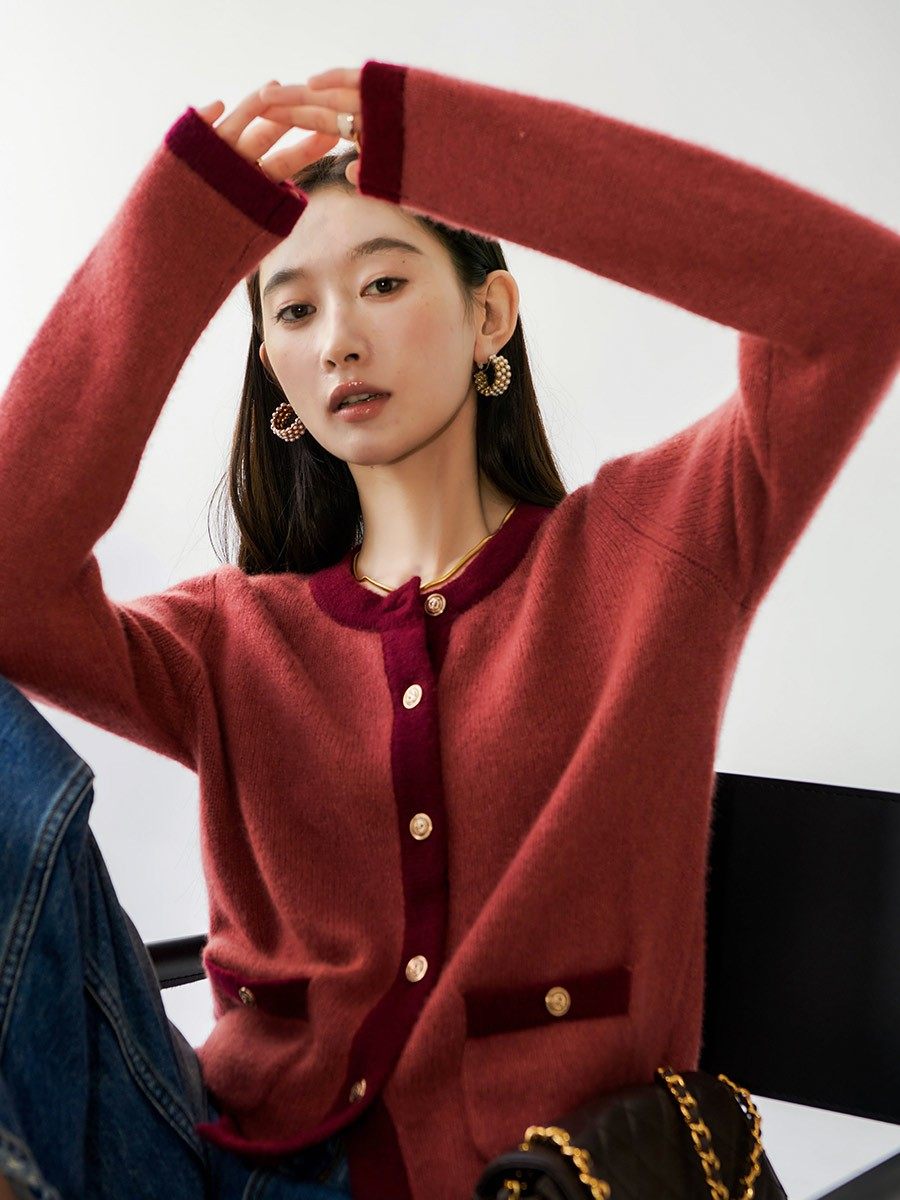Кашемировый красный кардиган с круглым воротником, изысканный стиль