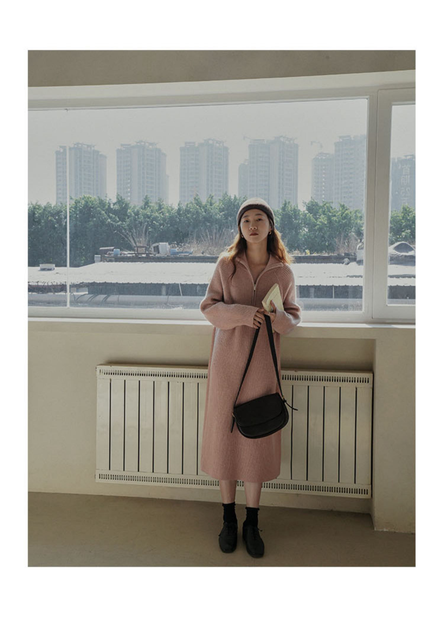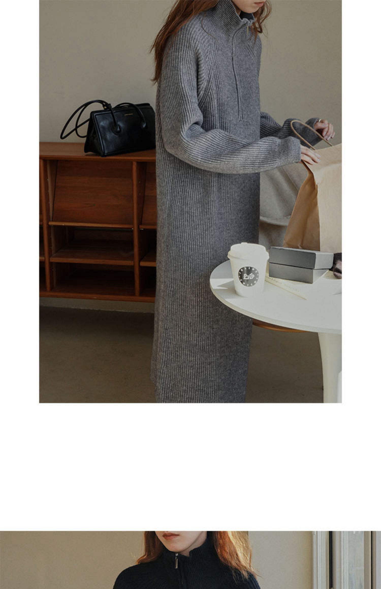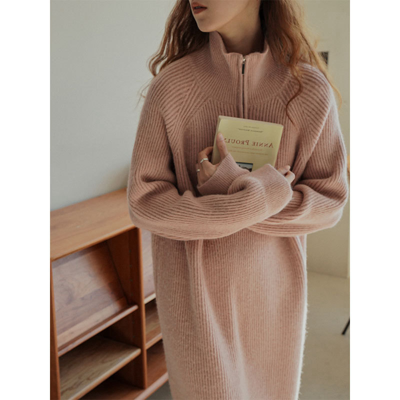Ретро длинное демисезонное трикотажное платье с молнией, свитер, французский стиль, яркий броский стиль, изысканный стиль, средней длины, на молнии