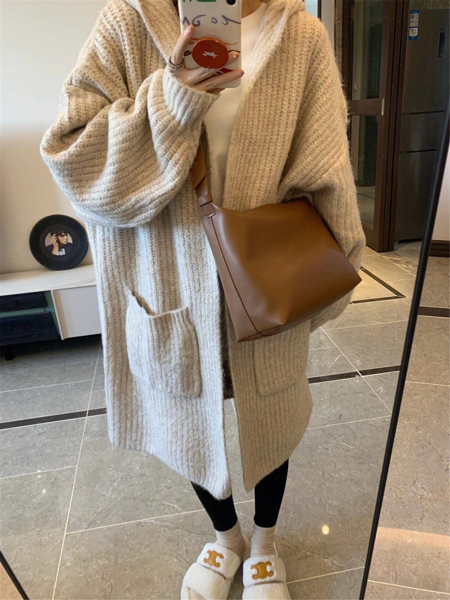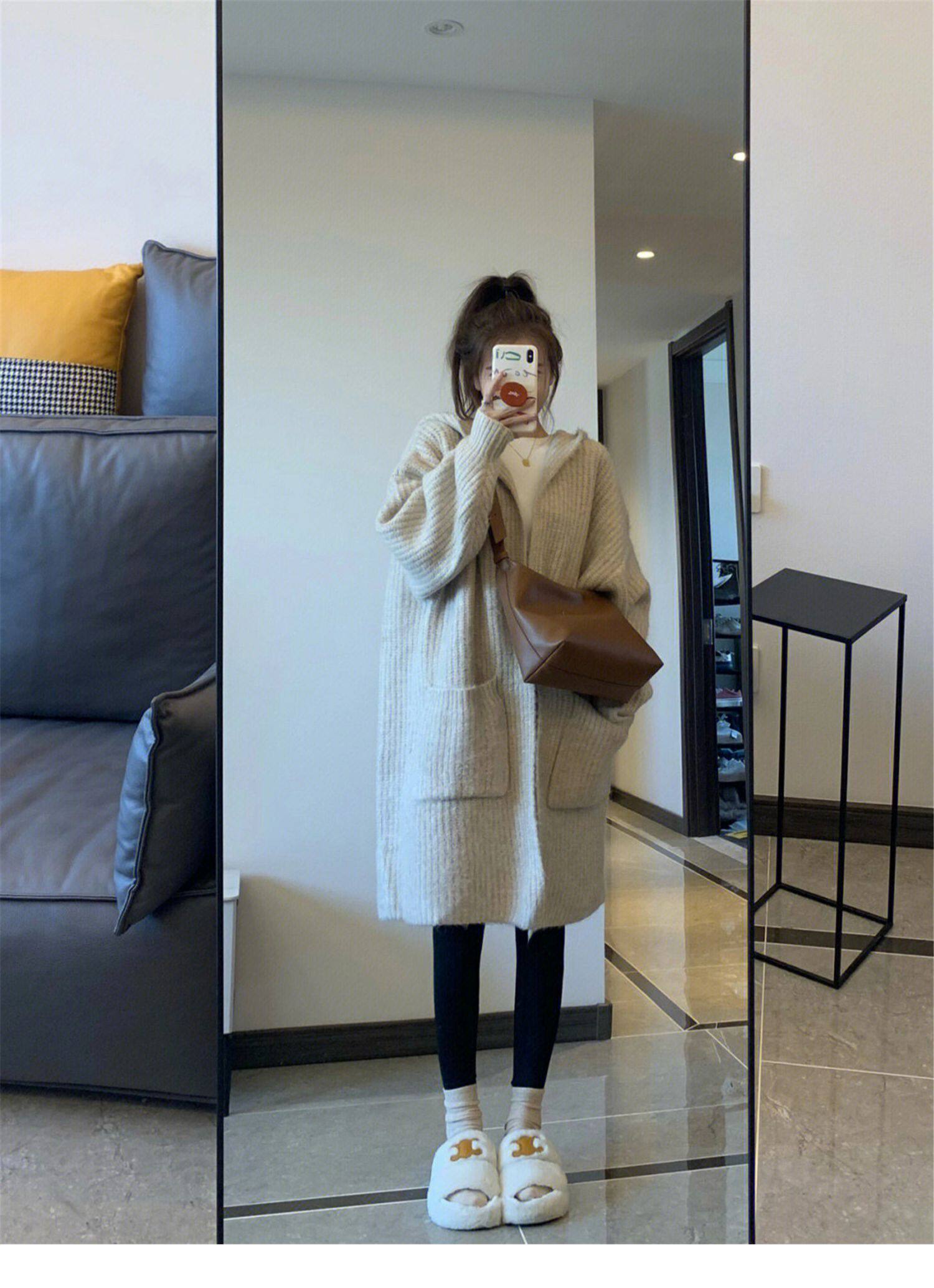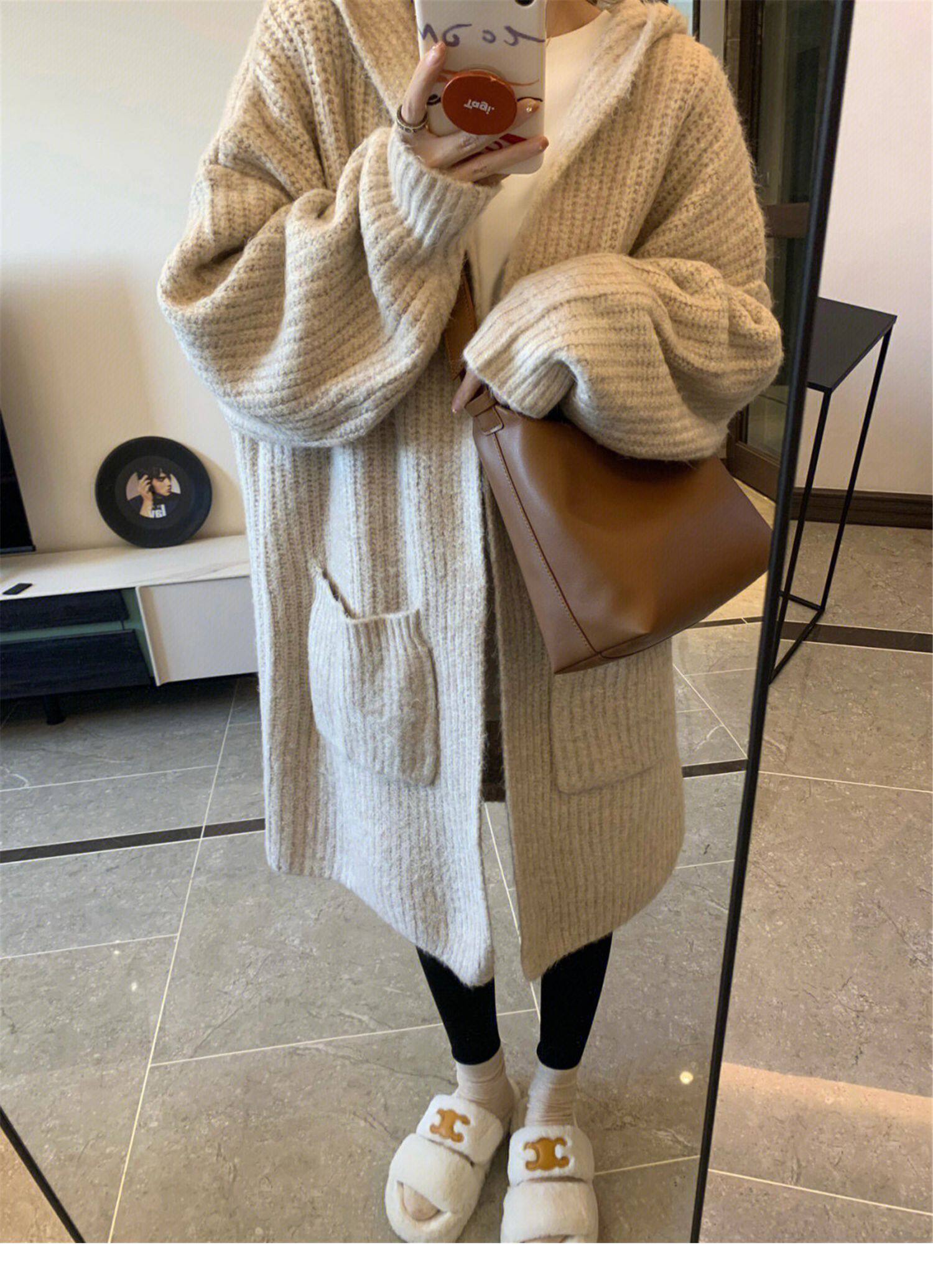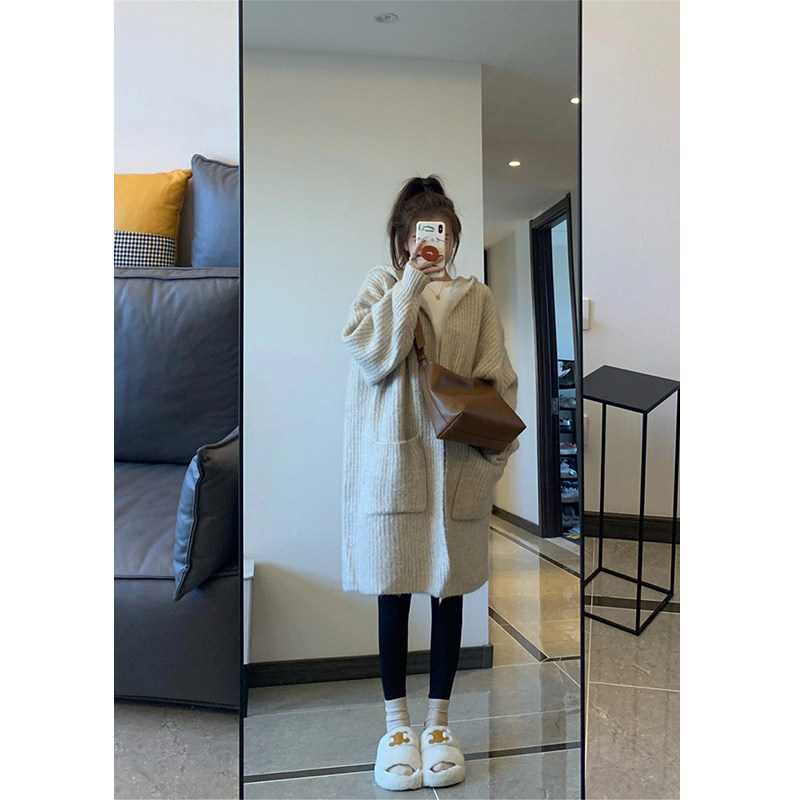 Абрикосовая ретро длинная толстовка с капюшоном, свитер, демисезонный кардиган, пальто, свободный крой, средней длины