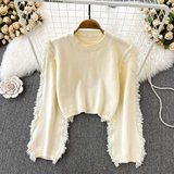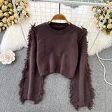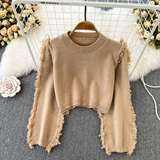 Демисезонный ретро лонгслив с круглым воротником, трикотажный короткий свитер для отдыха, в корейском стиле, высокая талия
