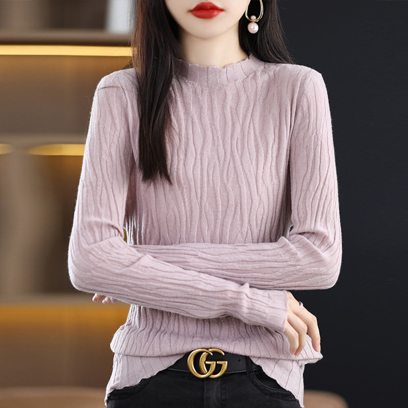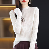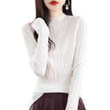 Демисезонный шерстяной кашемировый трикотажный свитер, 2023 года, высокий воротник, облегающий крой