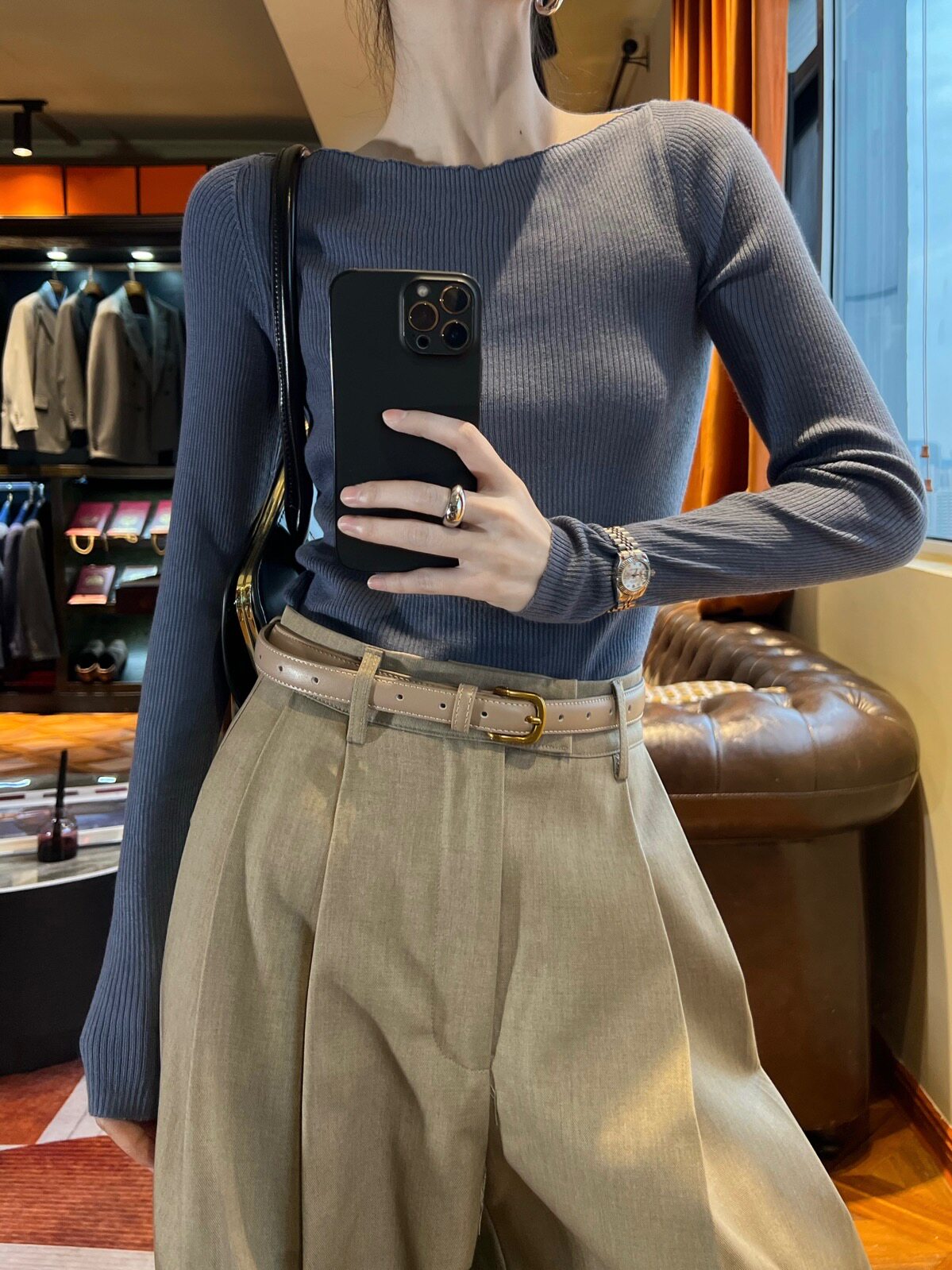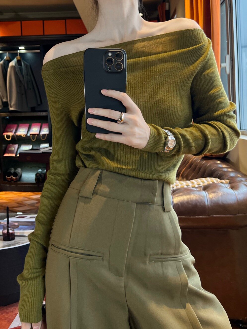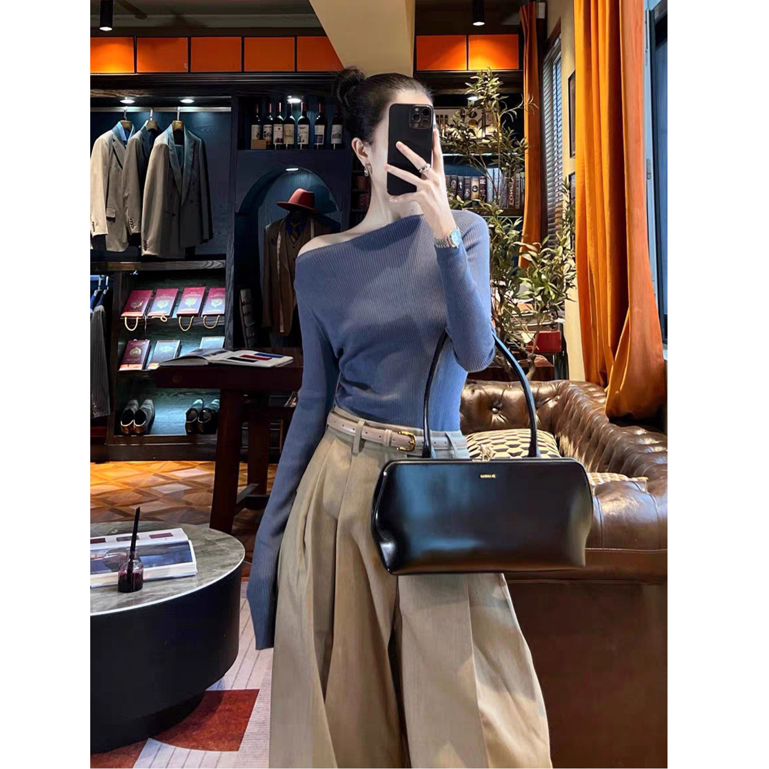 Yijiang | холодный темперамент, свитер плеча, простой темперамент, литературная осень и зимняя элегантная поездка на работу