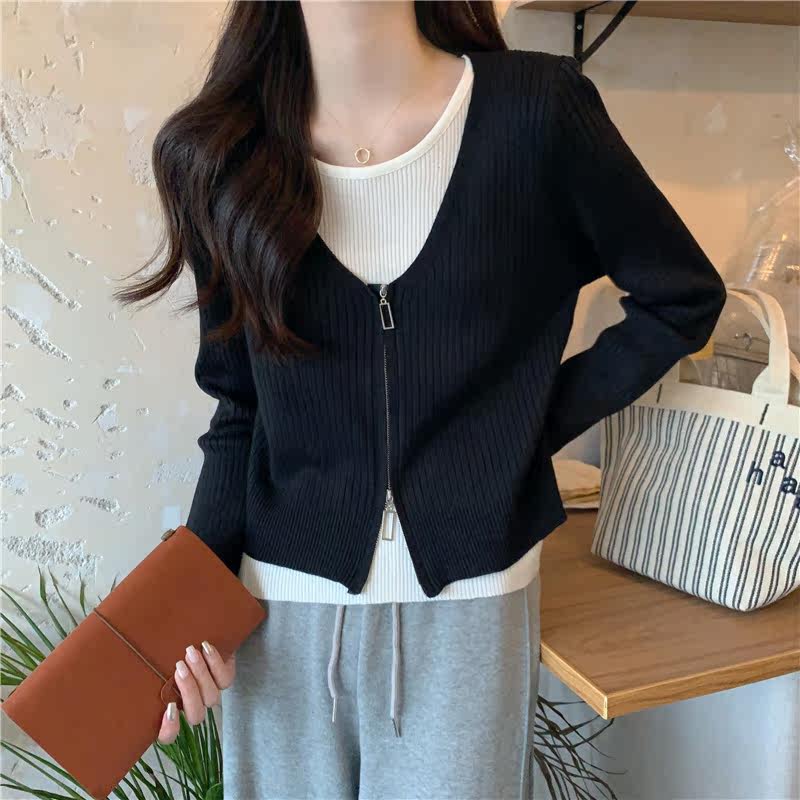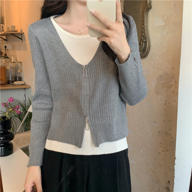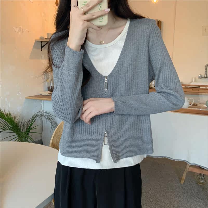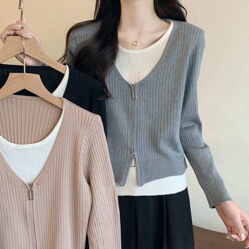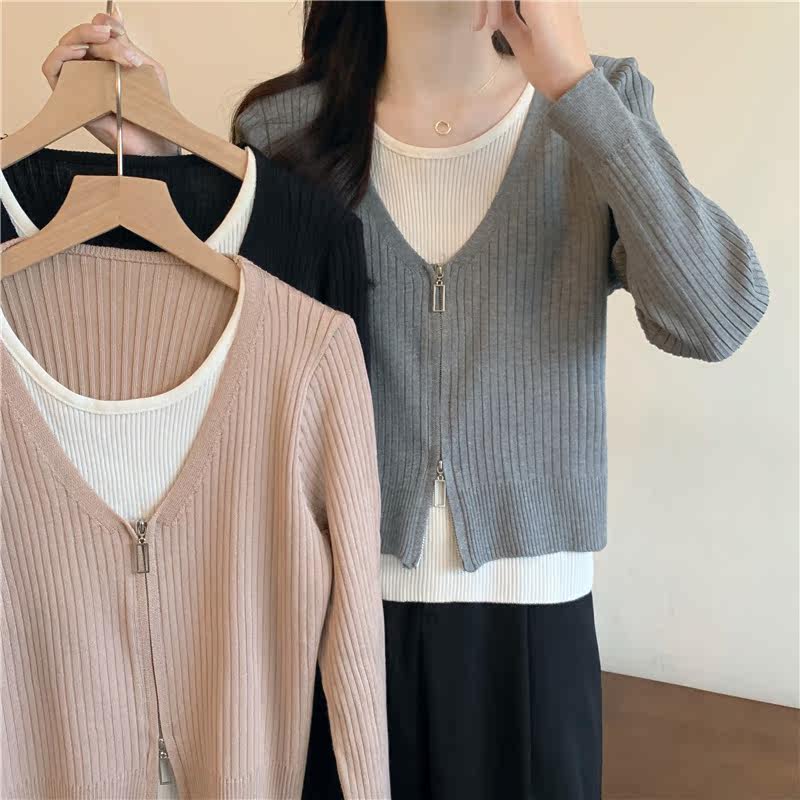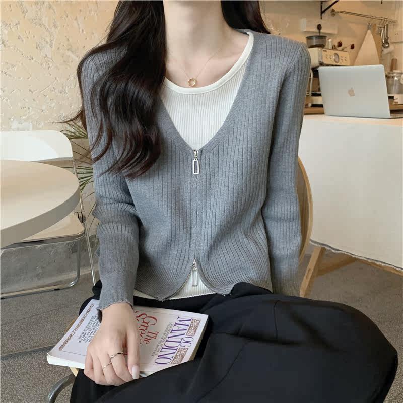 Осенний модный трикотажный лонгслив, свитер, короткий комплект, коллекция 2023, в западном стиле