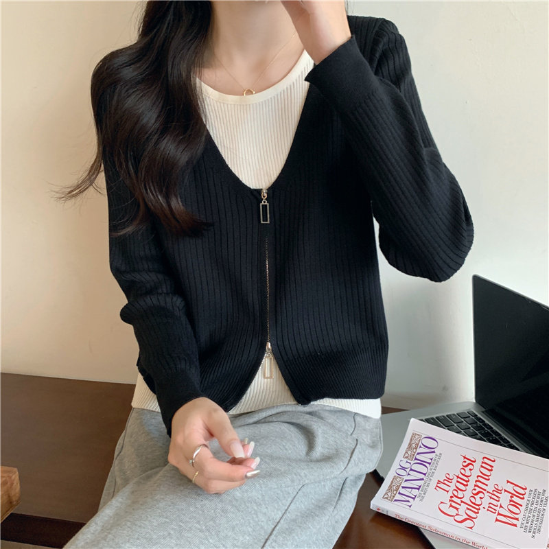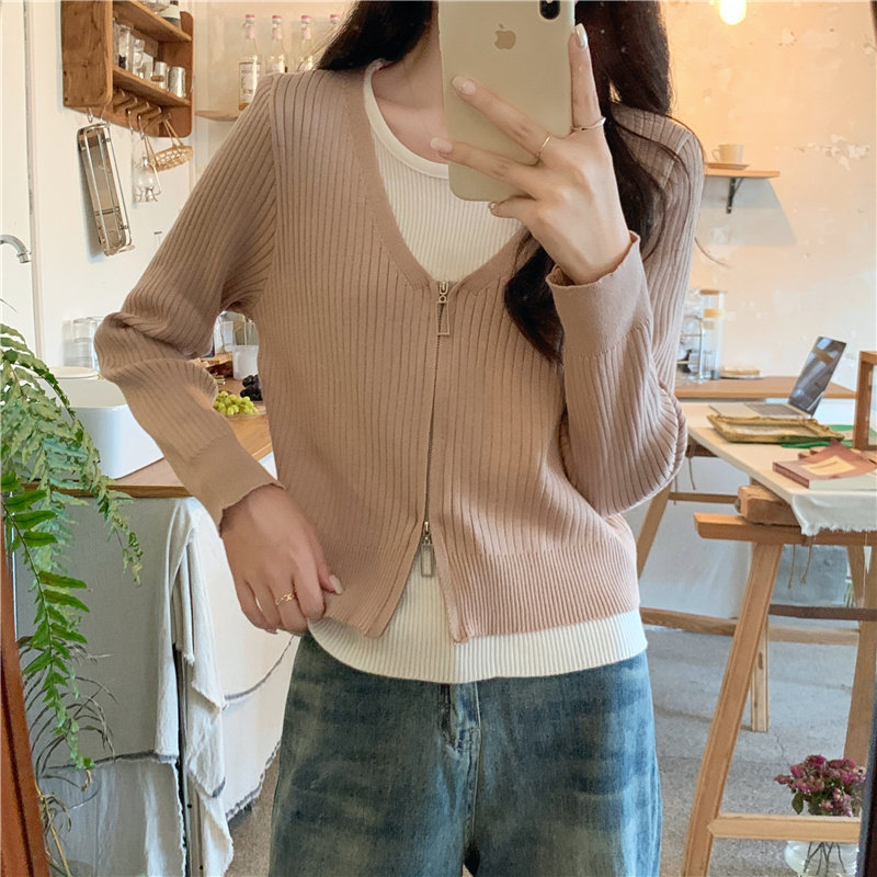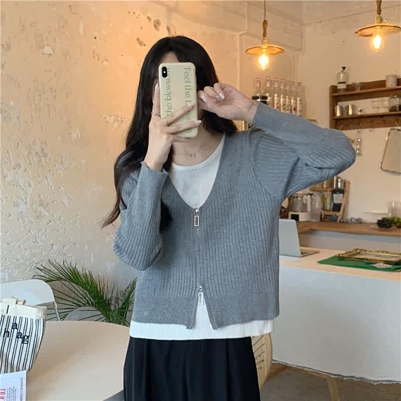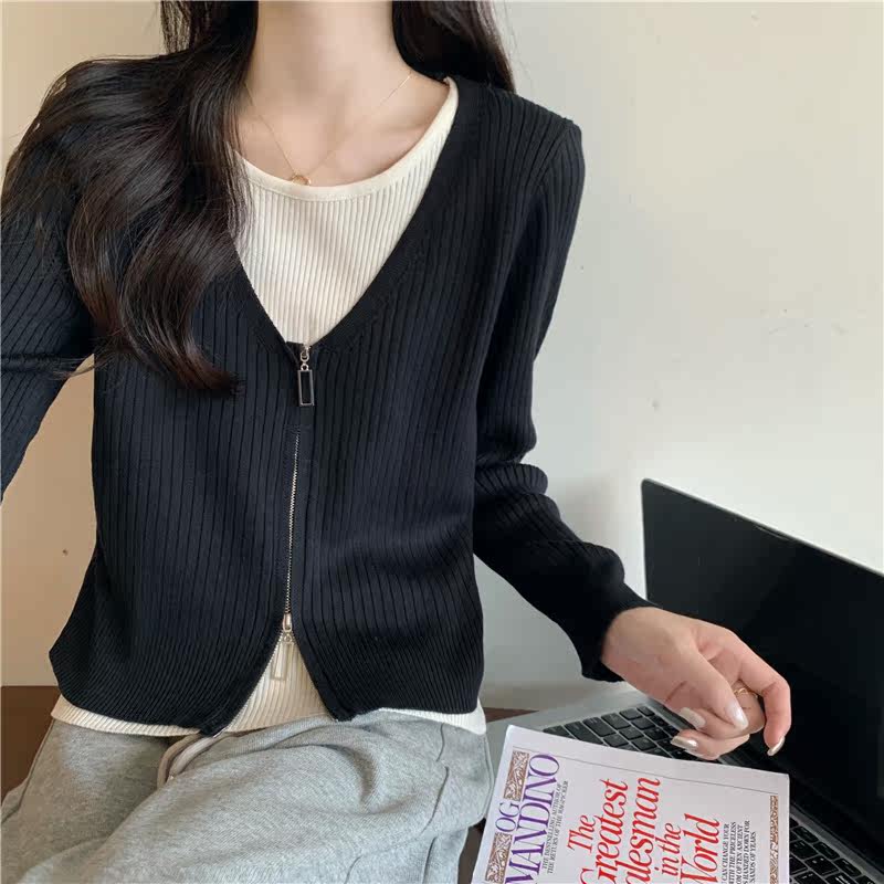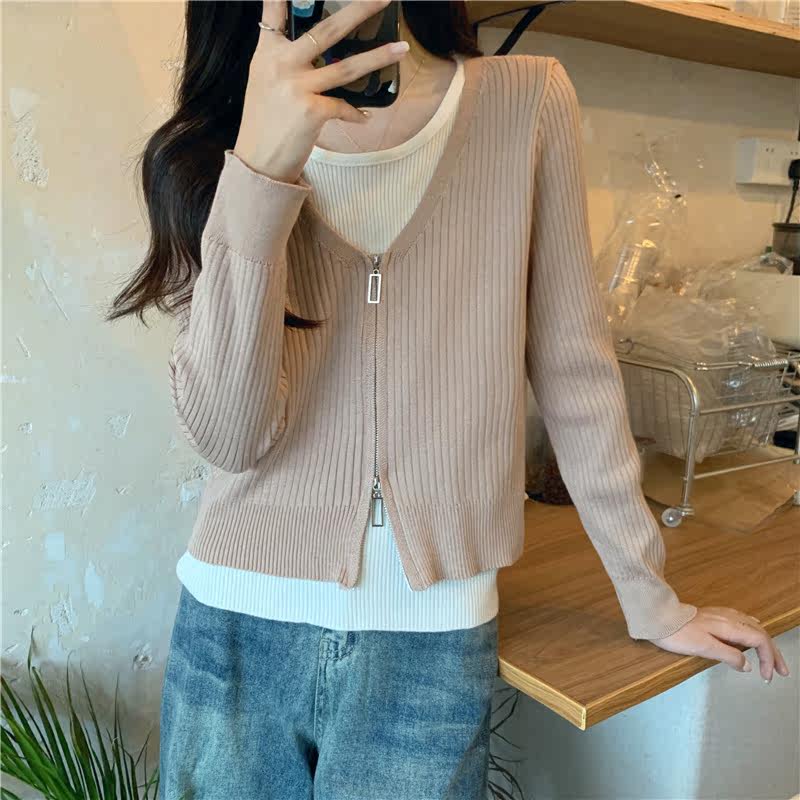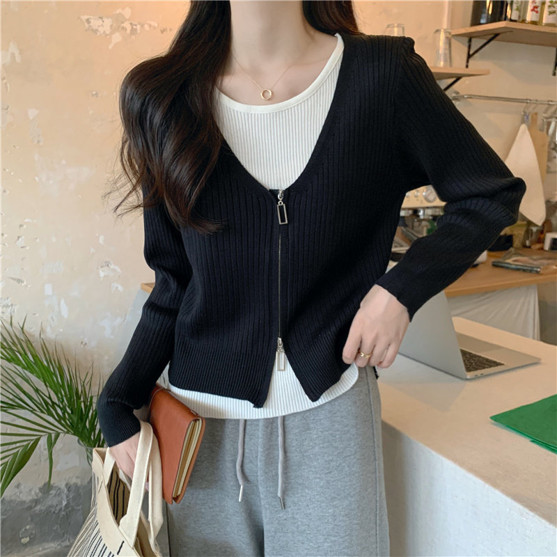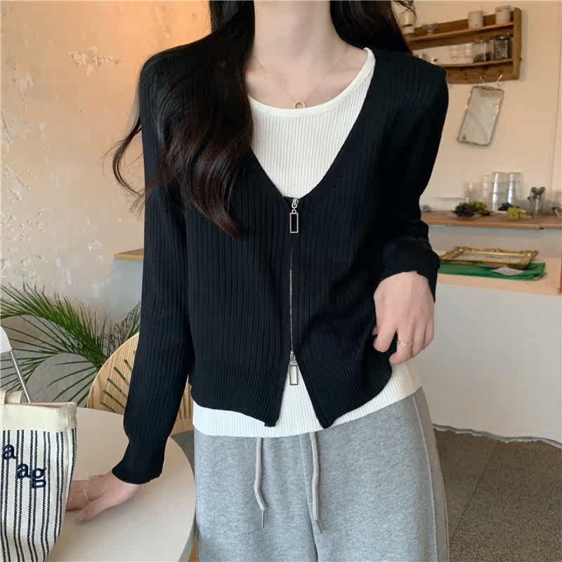 Осенний модный трикотажный лонгслив, свитер, короткий комплект, коллекция 2023, в западном стиле