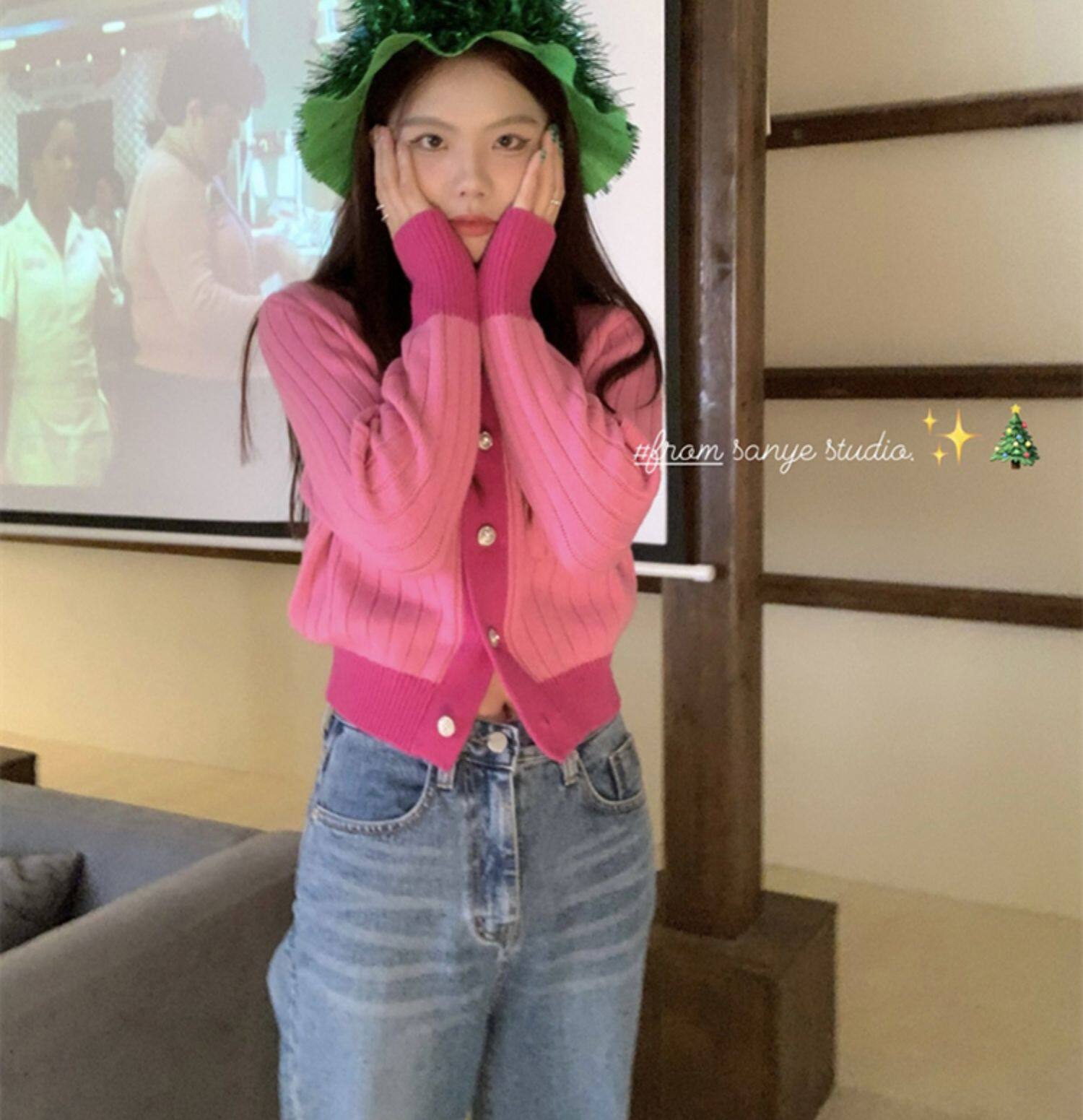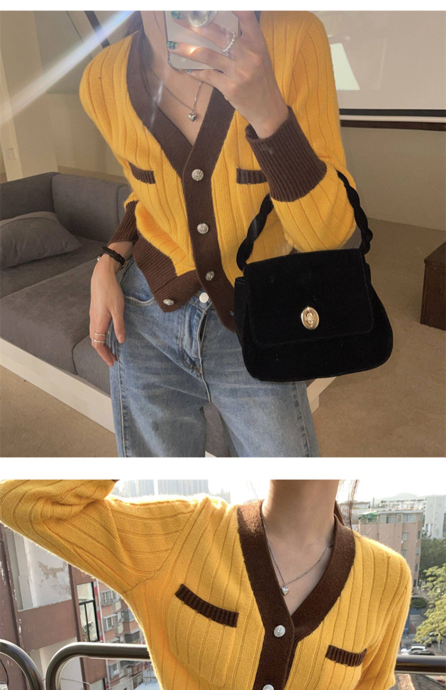 Трикотажный весенний свитер, дизайнерский короткий кардиган, в стиле Шанель, оверсайз, свободный крой