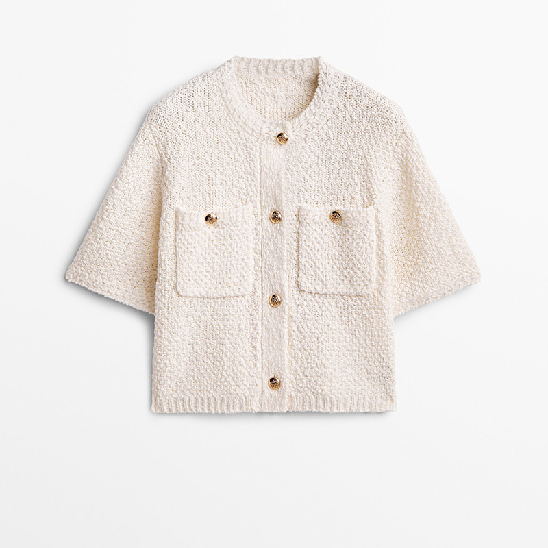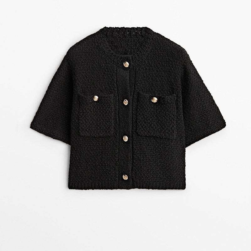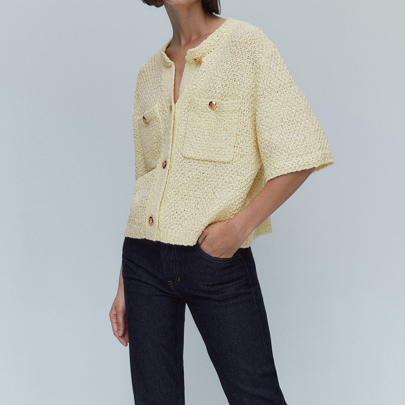 Осенний демисезонный черно-желтый белый небольшой трикотажный кардиган для отдыха, короткий рукав, в стиле Шанель