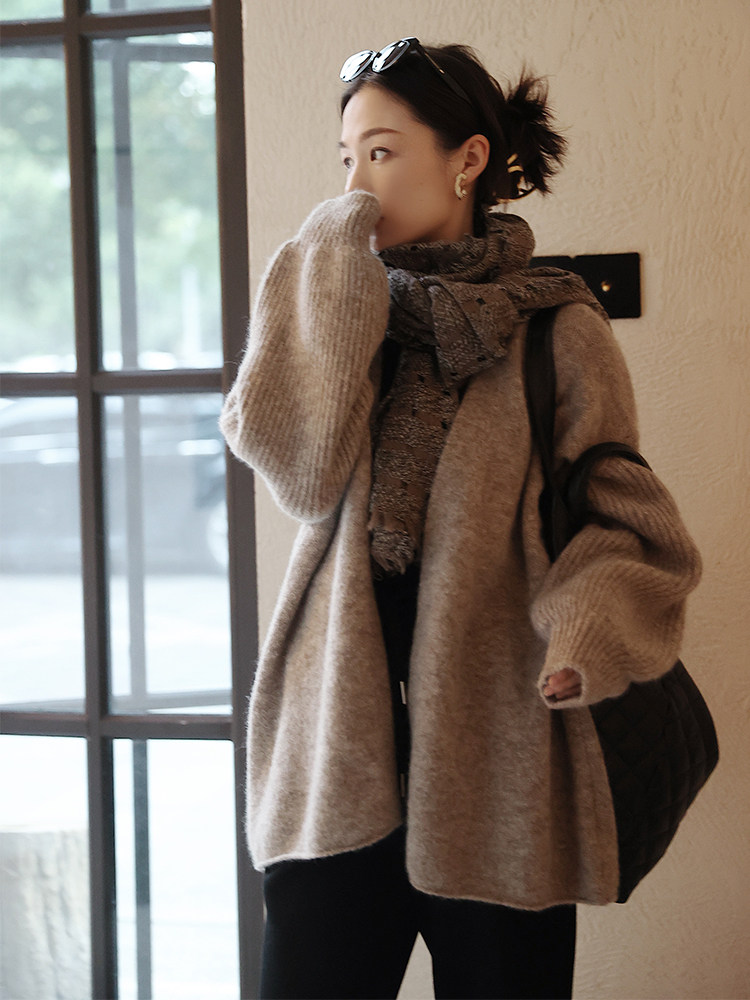 Тыквенная долина Гербалайф и Андская малышка и лама волокна + кашемировый кардиган вязаной женский и зима Z1686