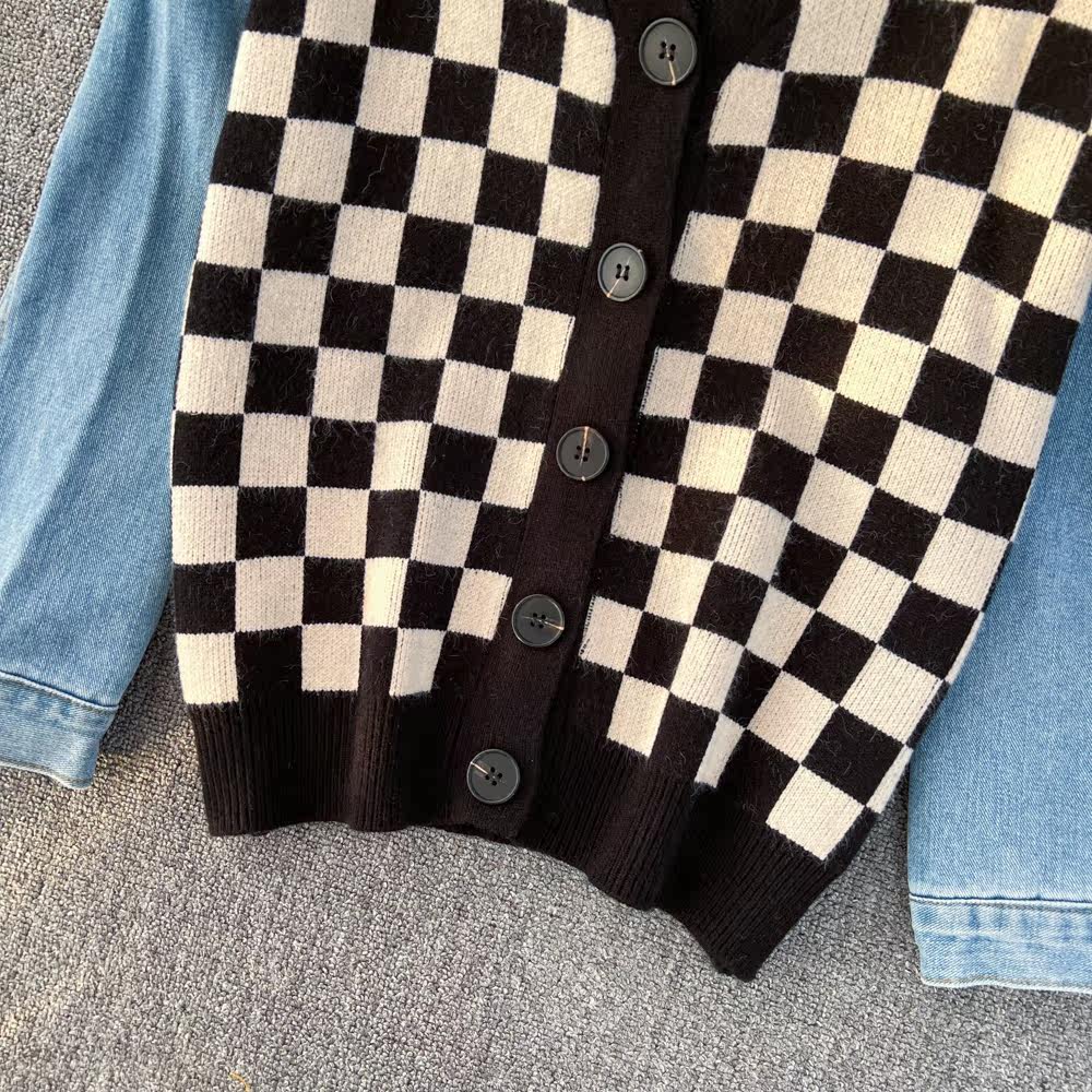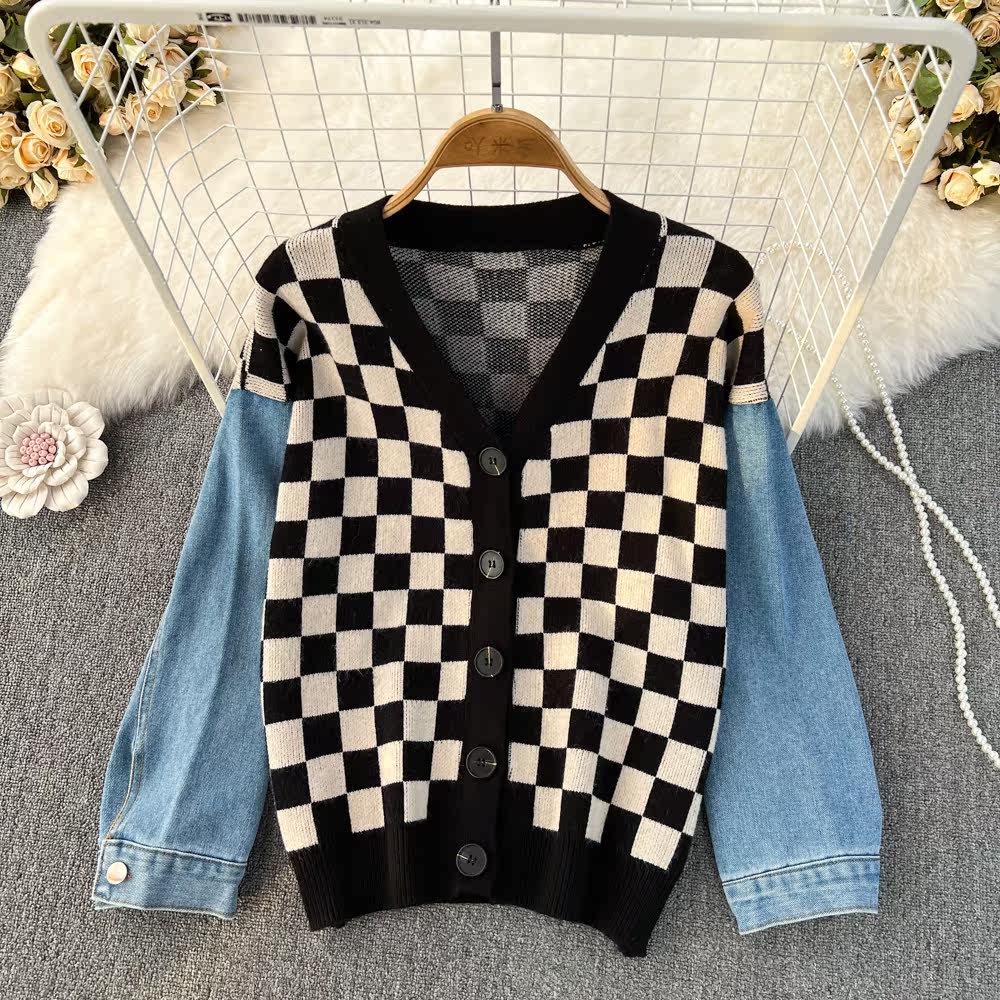 Ретро джинсовый комплект, свитер, демисезонная куртка, кардиган для отдыха, V-образный вырез