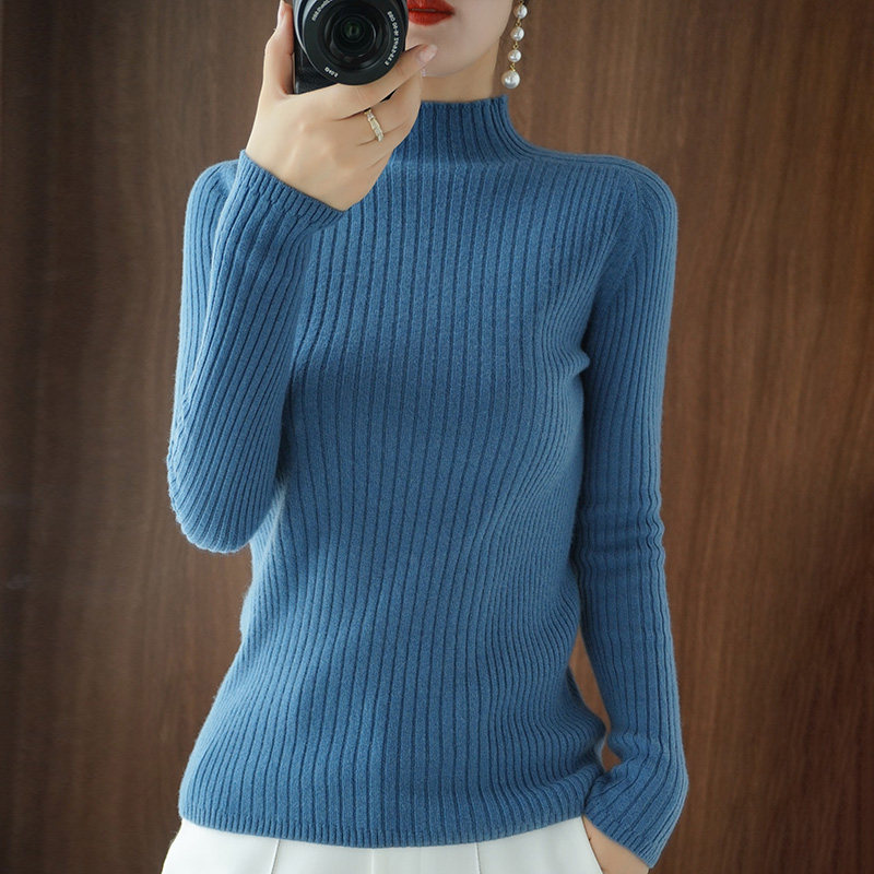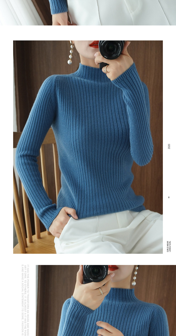 Базовый приятный телу демисезонный кашемировый трикотажный шерстяной свитер, в западном стиле, высокий воротник, увеличенная толщина