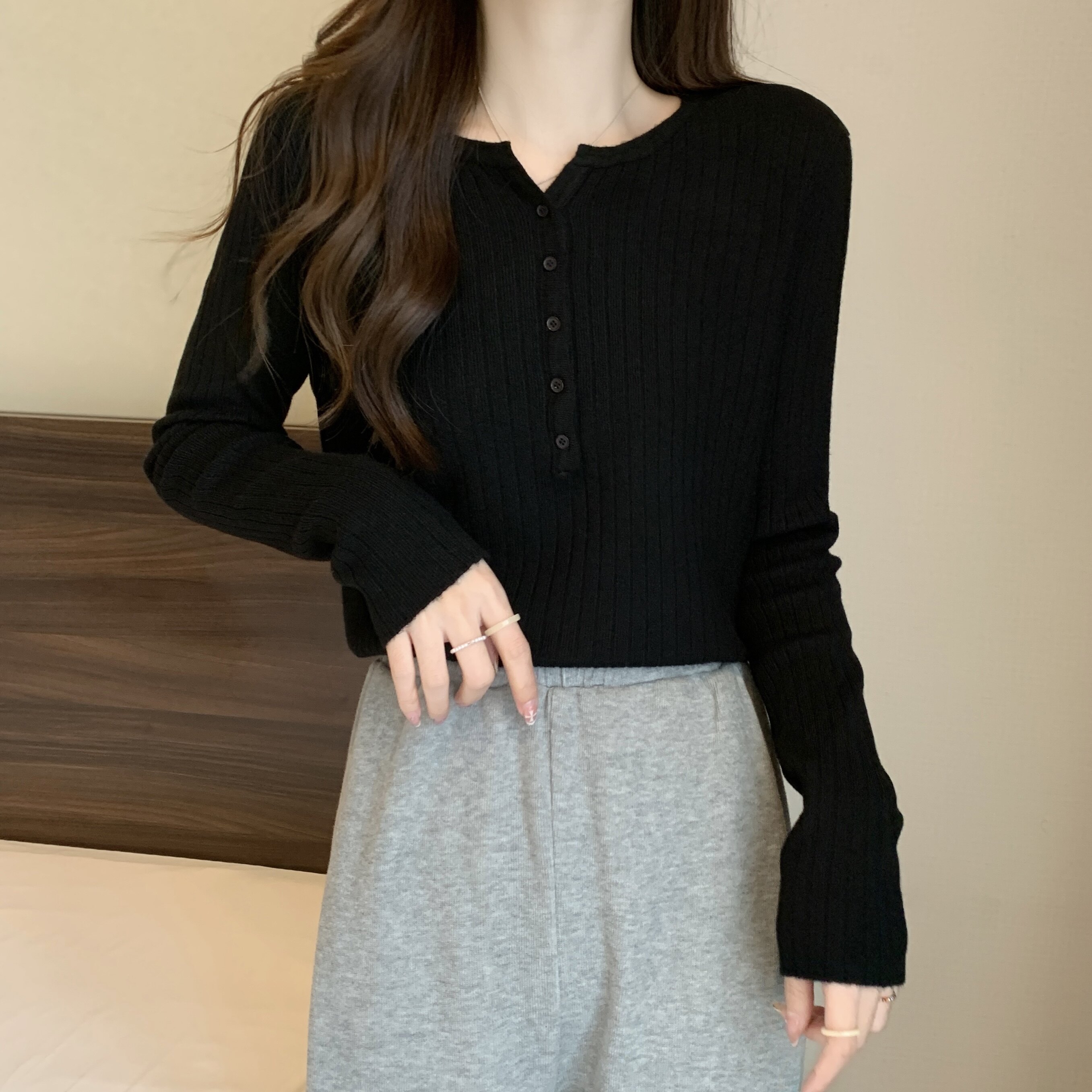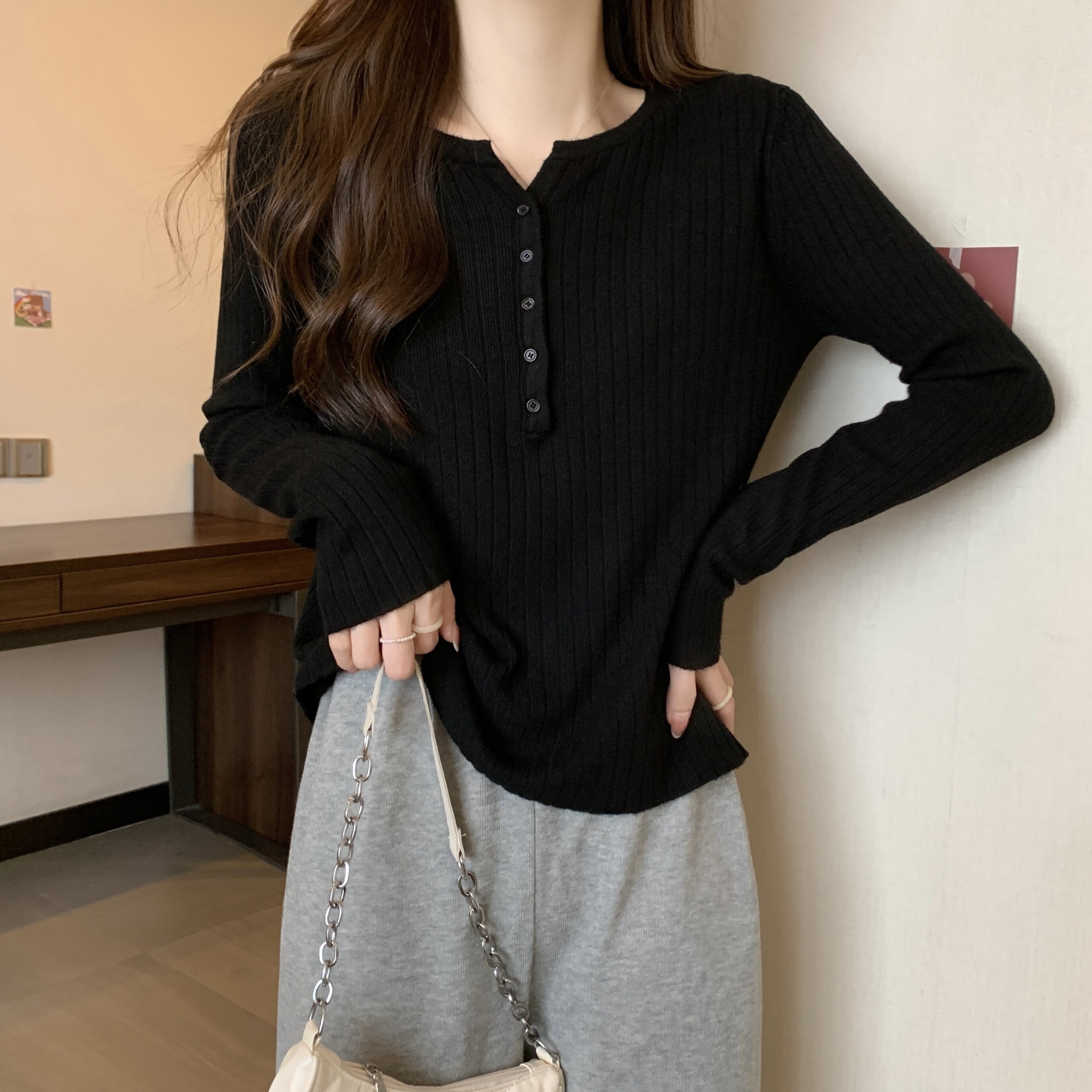 Простая и стильная вязаная базовая рубашка