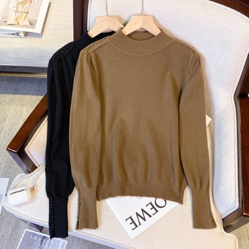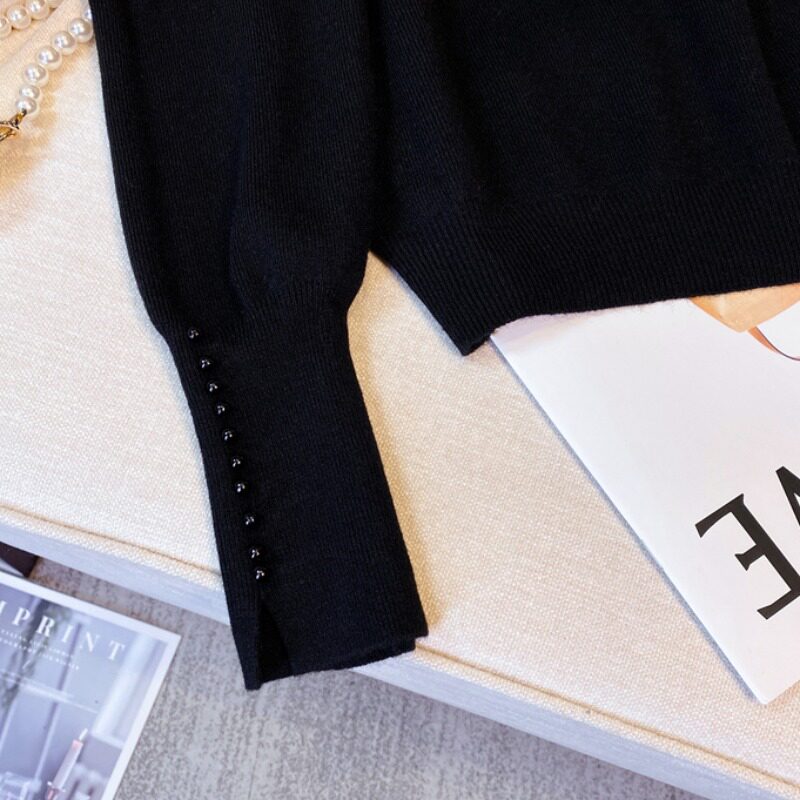 Осенний лонгслив, модный трикотажный свитер, большой размер, подходит для полных девушек, высокий воротник