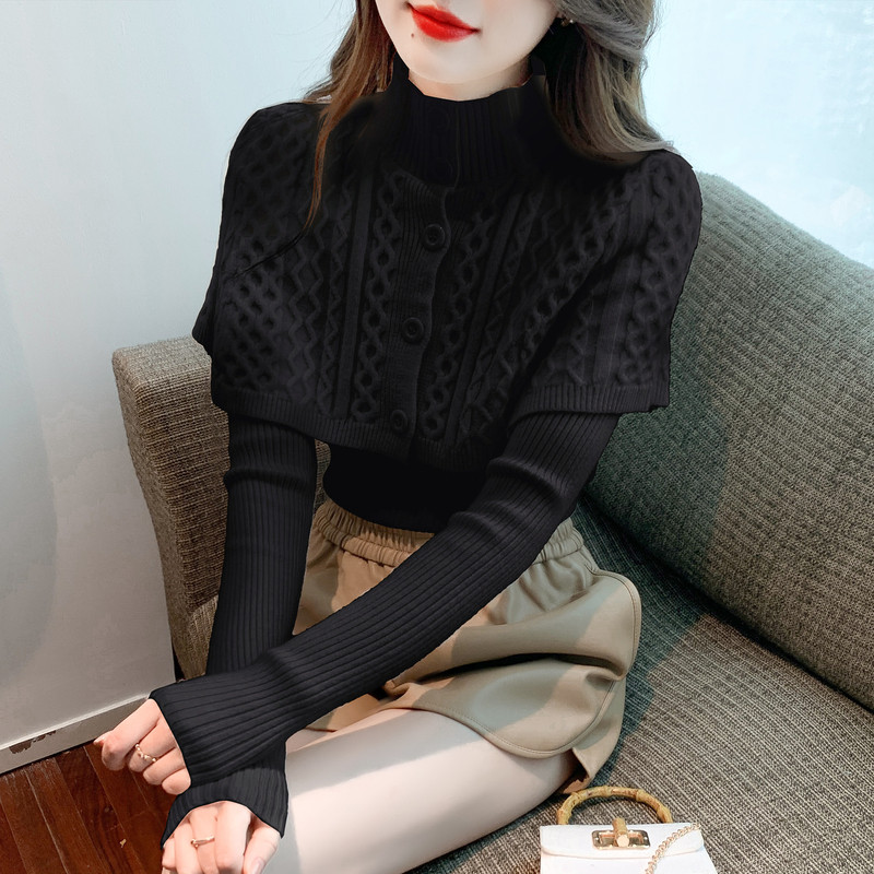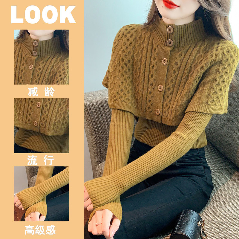 Трикотажный свитер, плащ с косичкой, накидка, демисезонный базовый комплект, изысканный стиль, в западном стиле