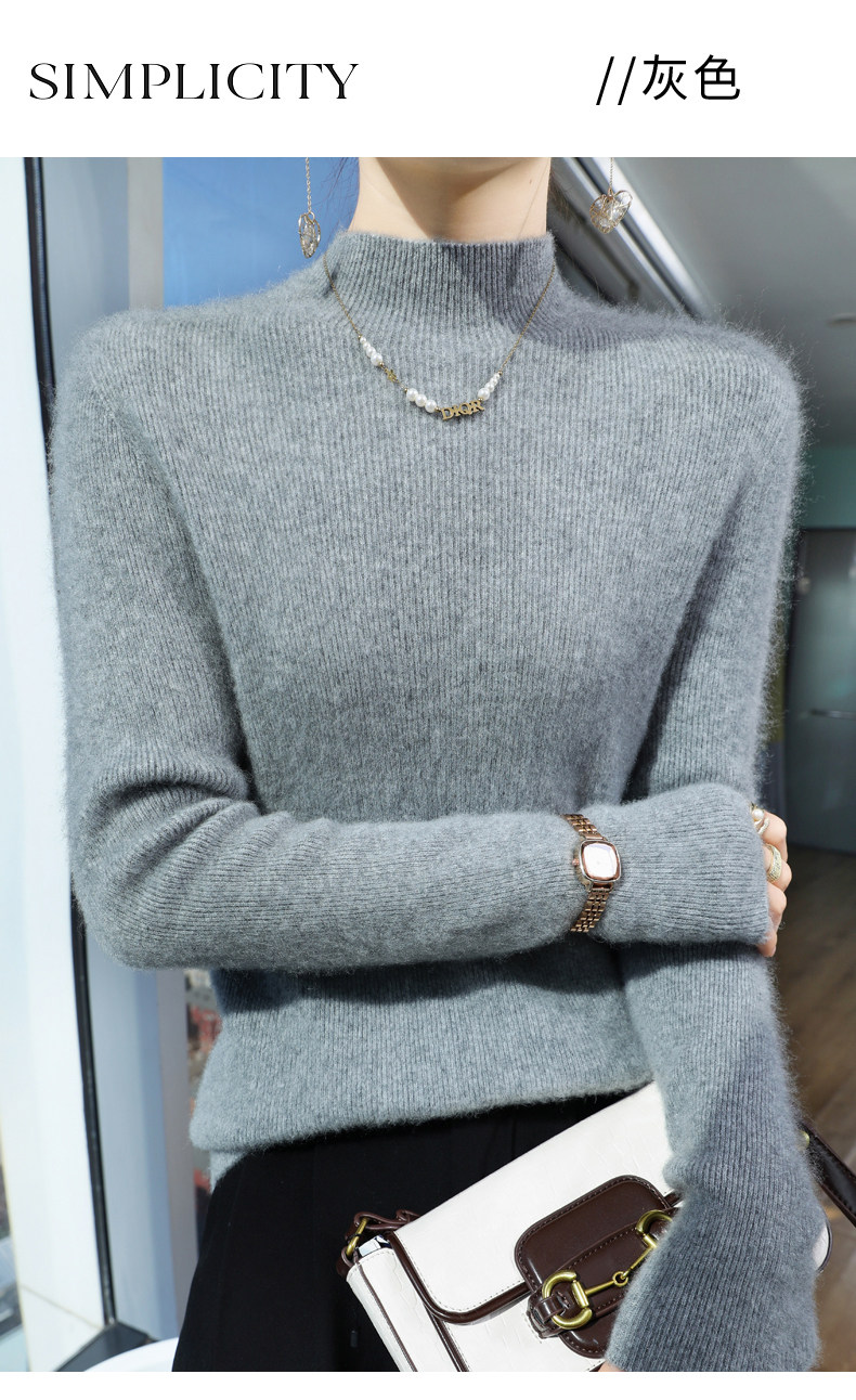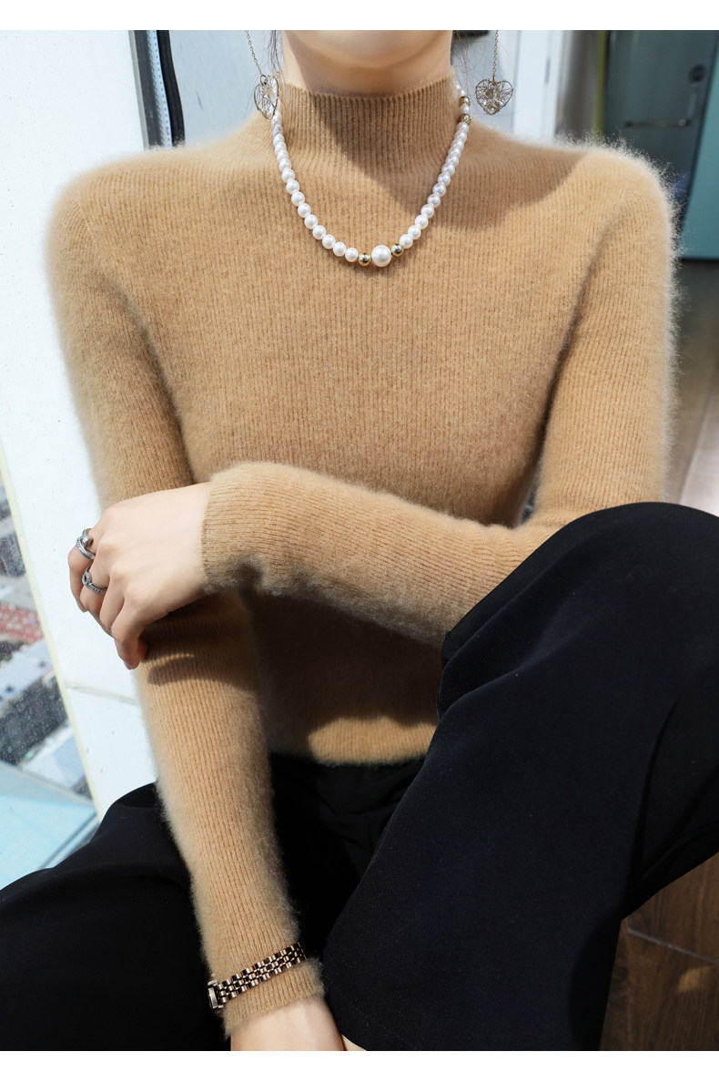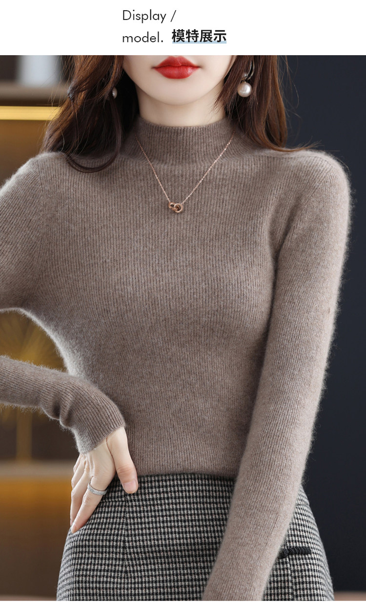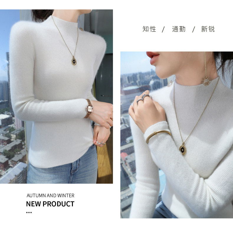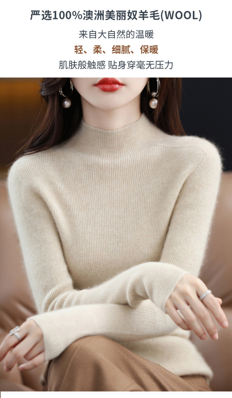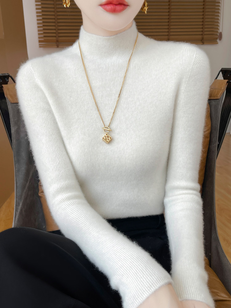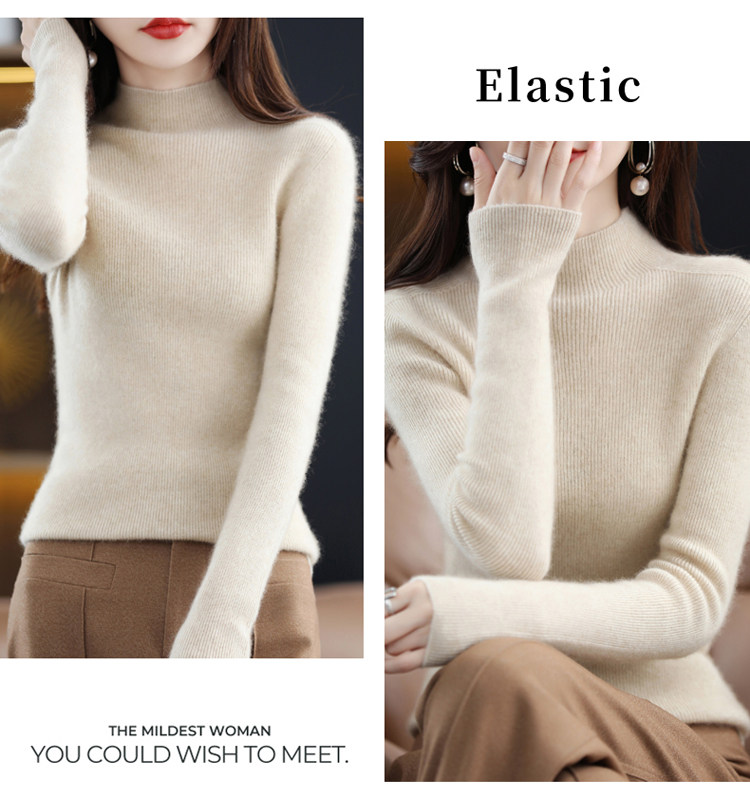Шерстяной свитер, трикотажный зимний лонгслив, высокий воротник, облегающий крой
