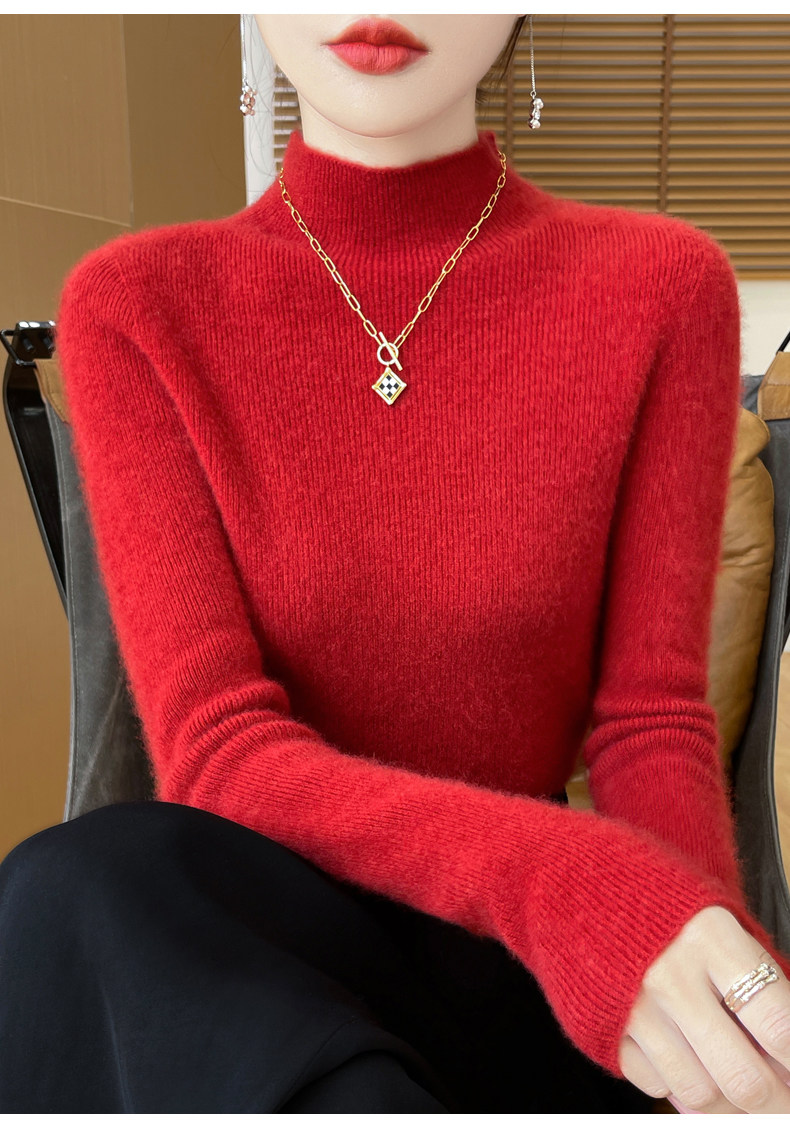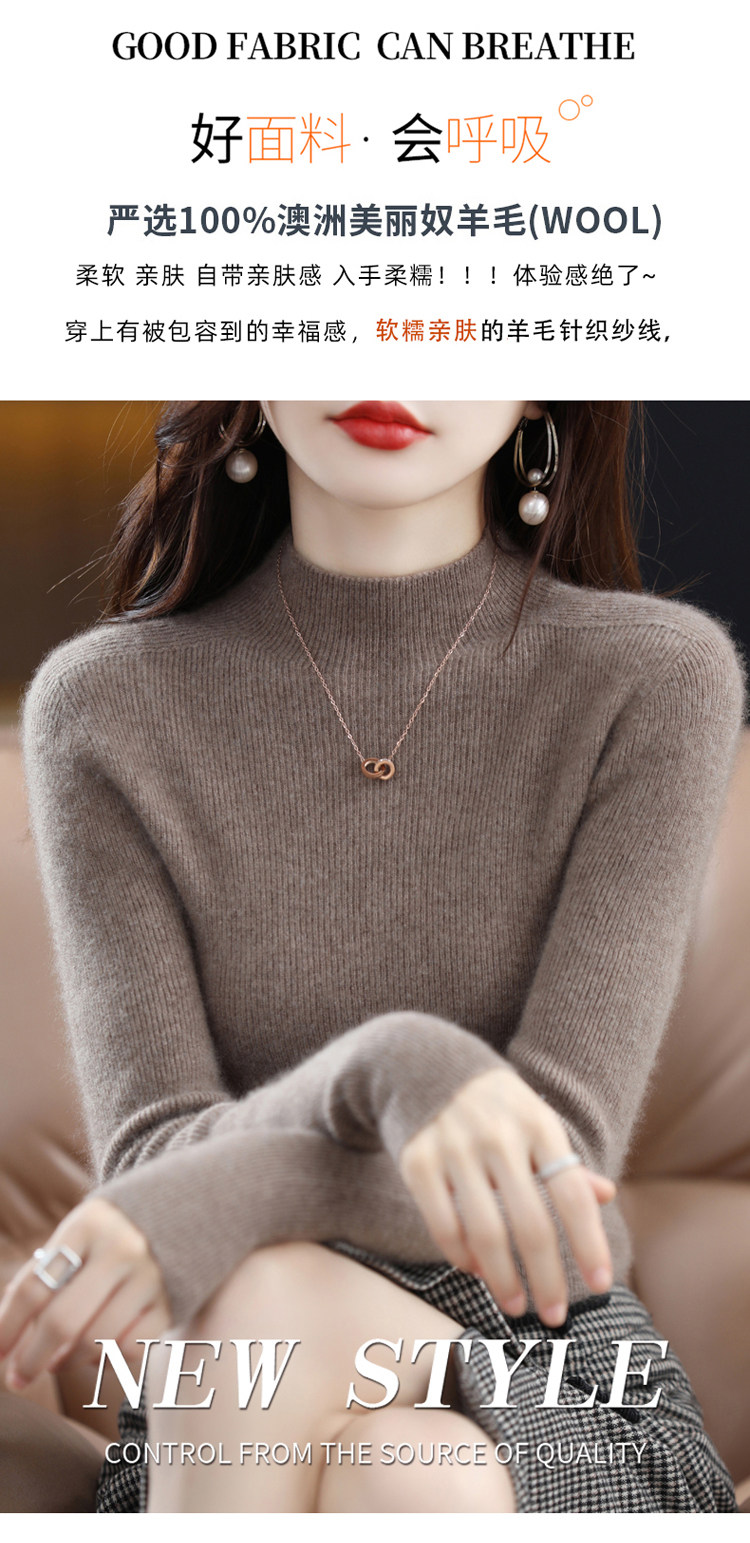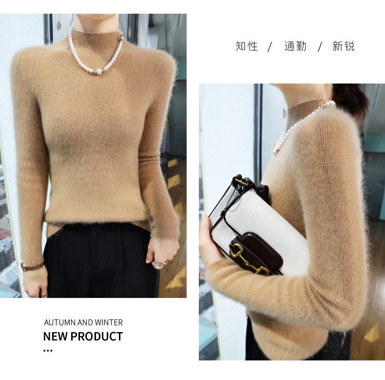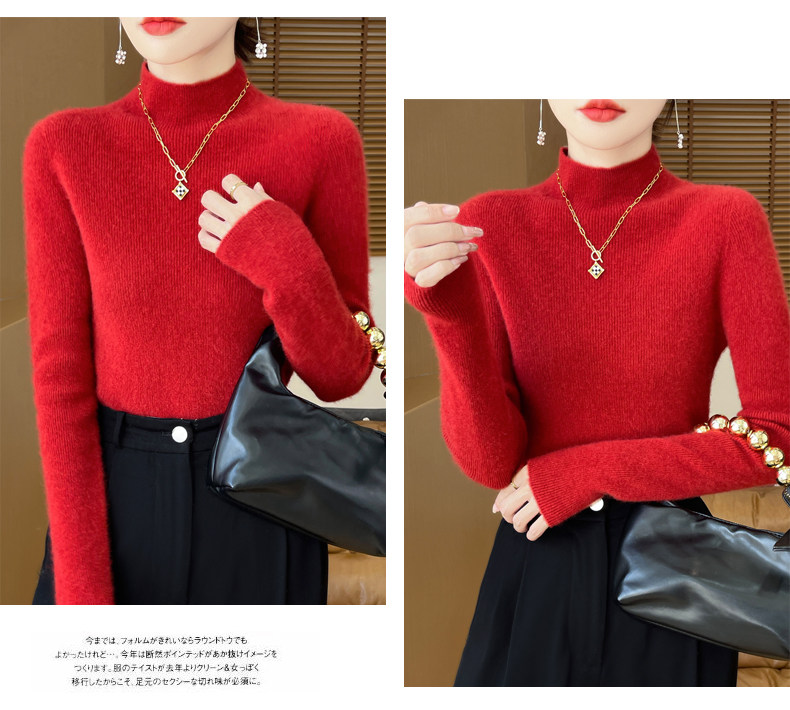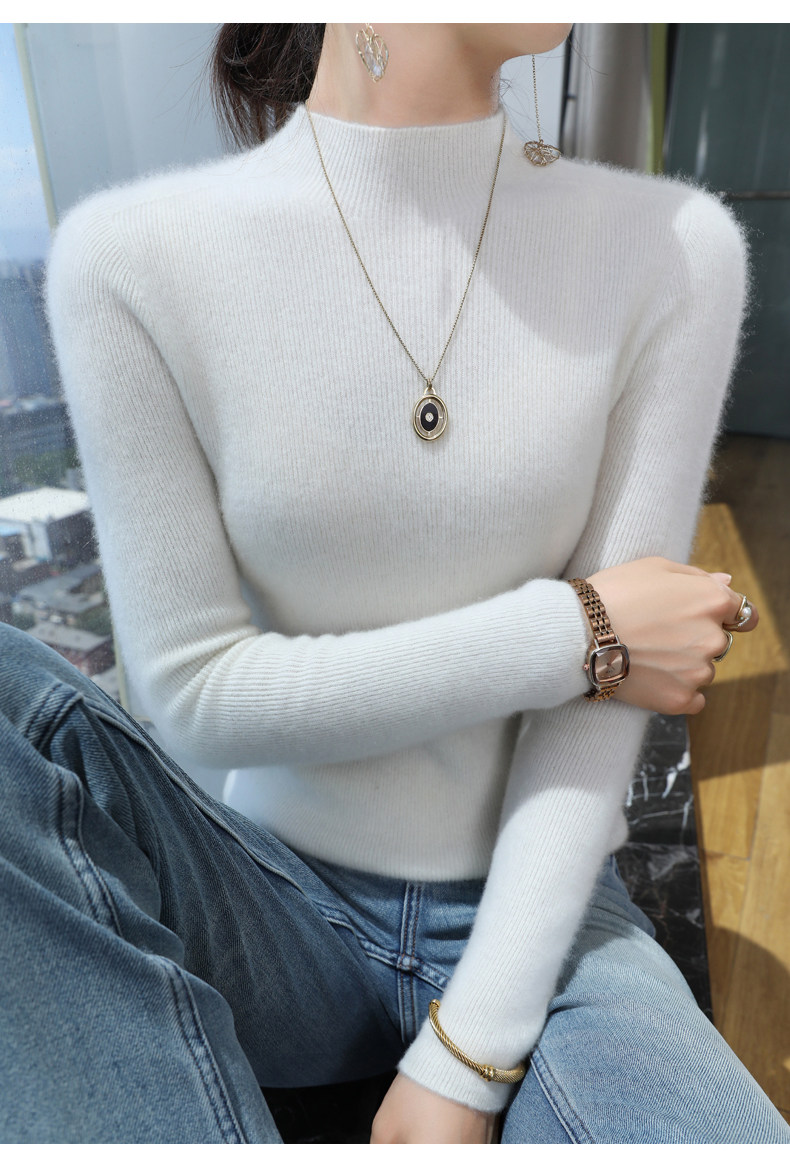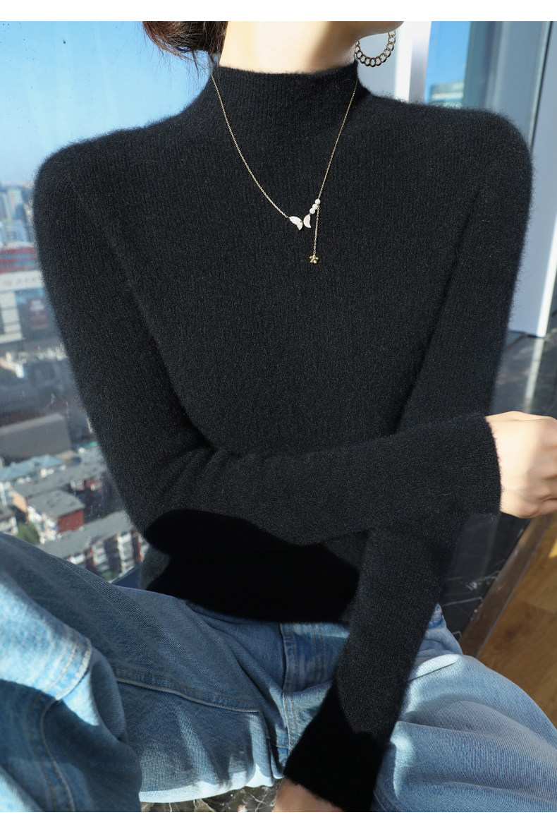 Шерстяной свитер, трикотажный зимний лонгслив, высокий воротник, облегающий крой