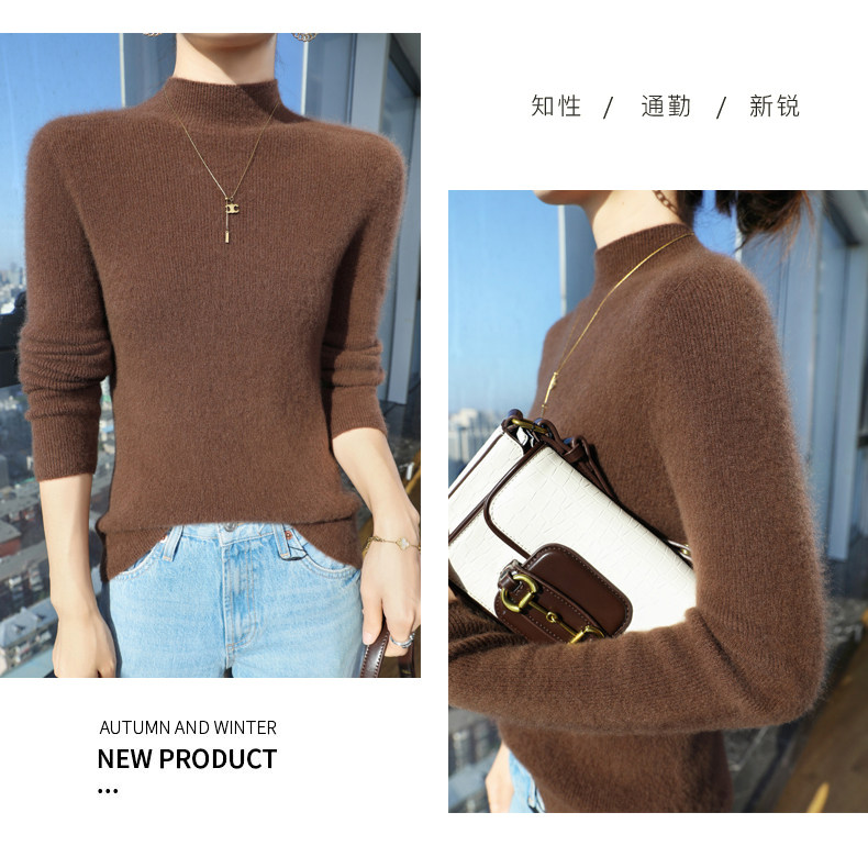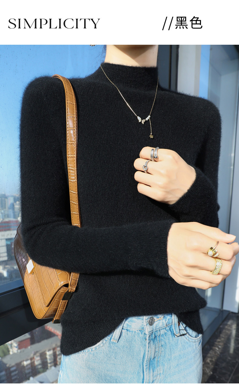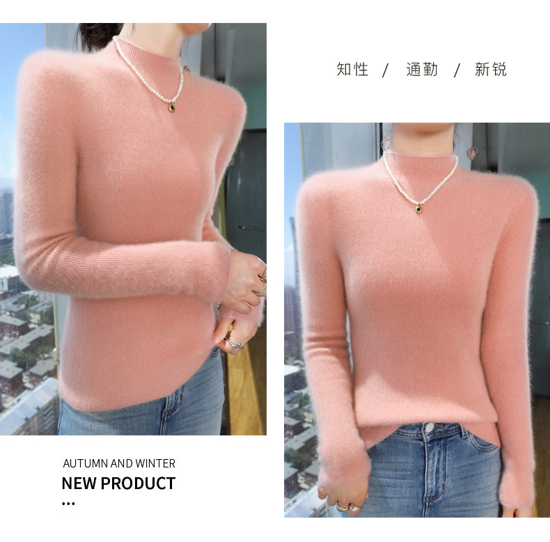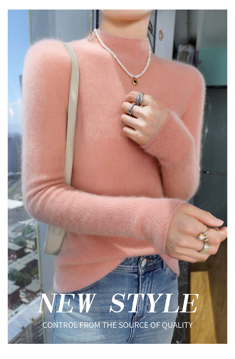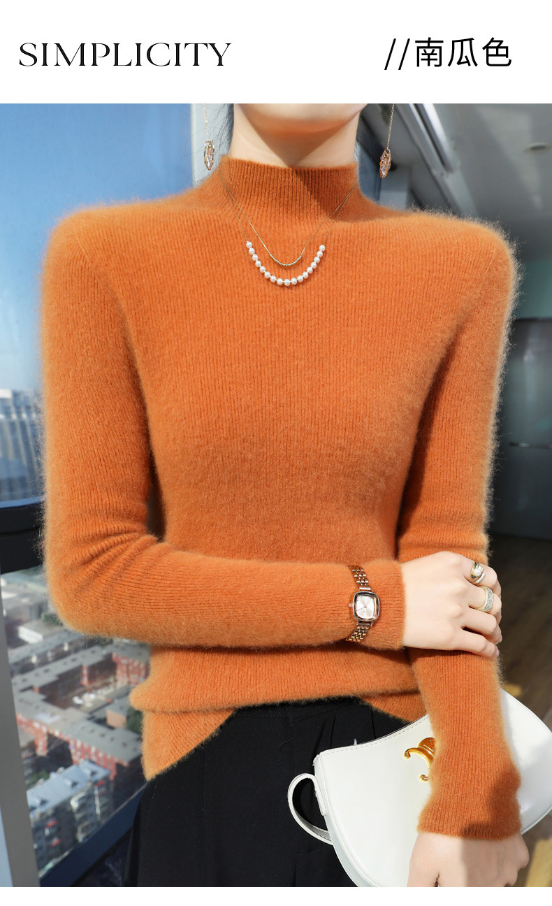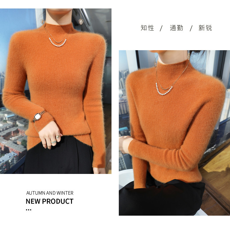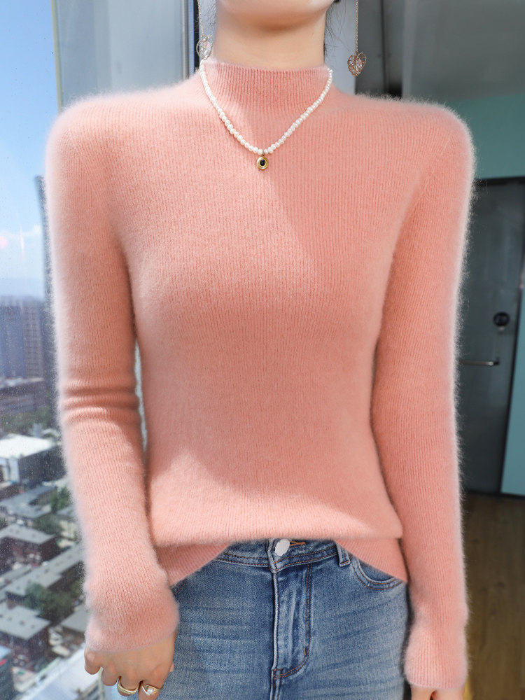Шерстяной свитер, трикотажный зимний лонгслив, высокий воротник, облегающий крой