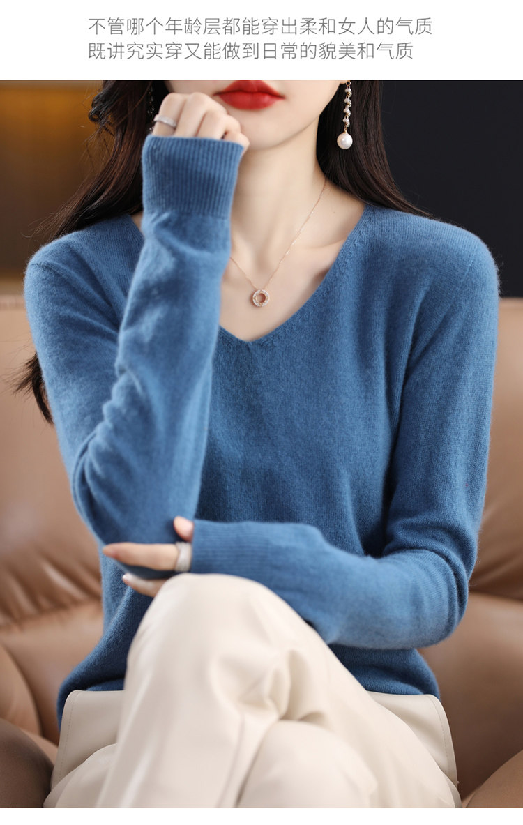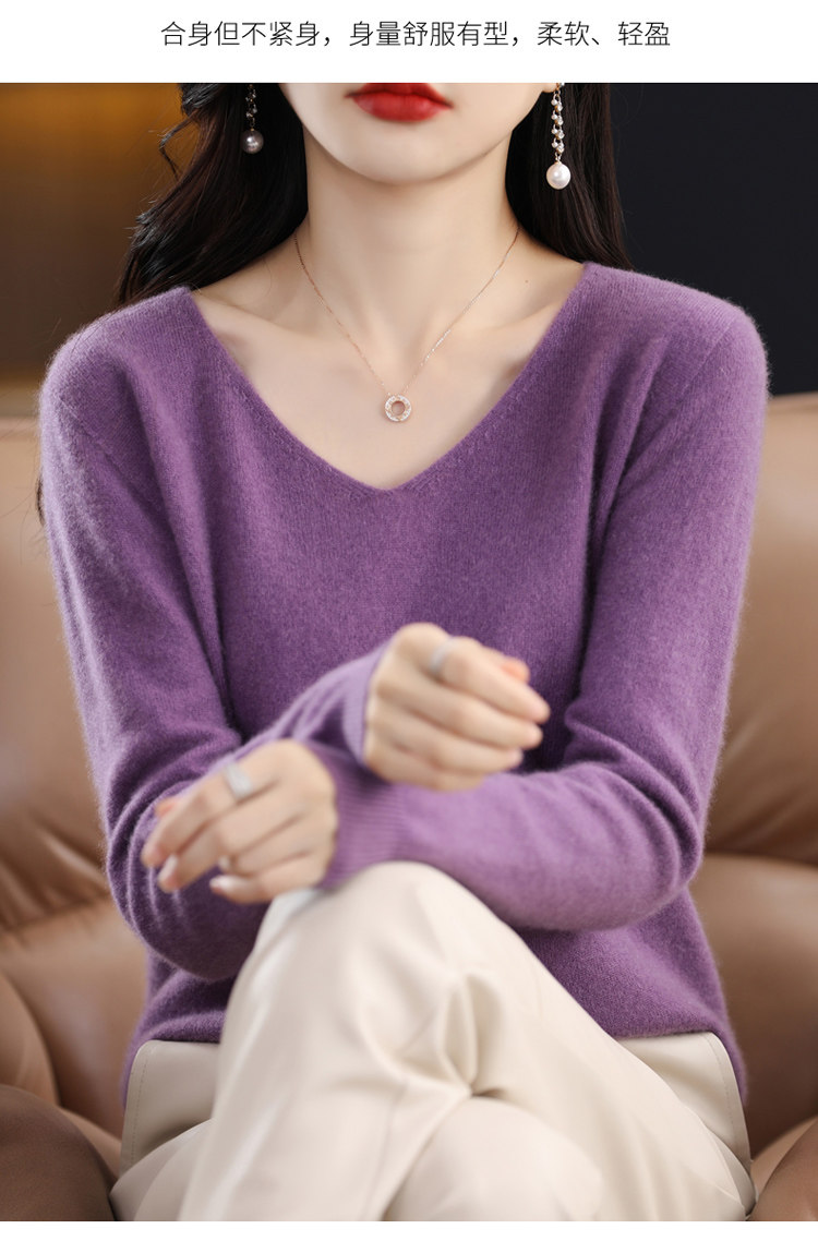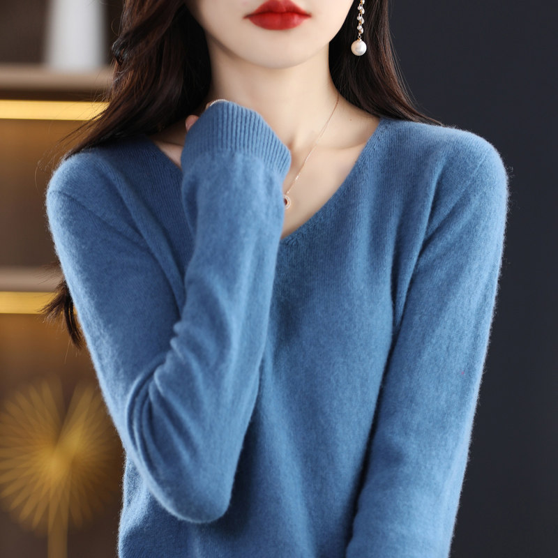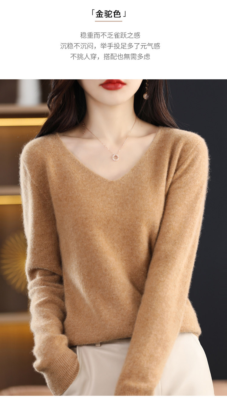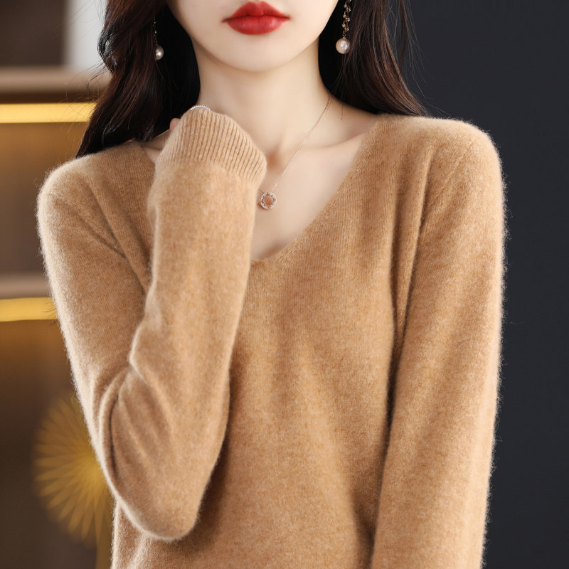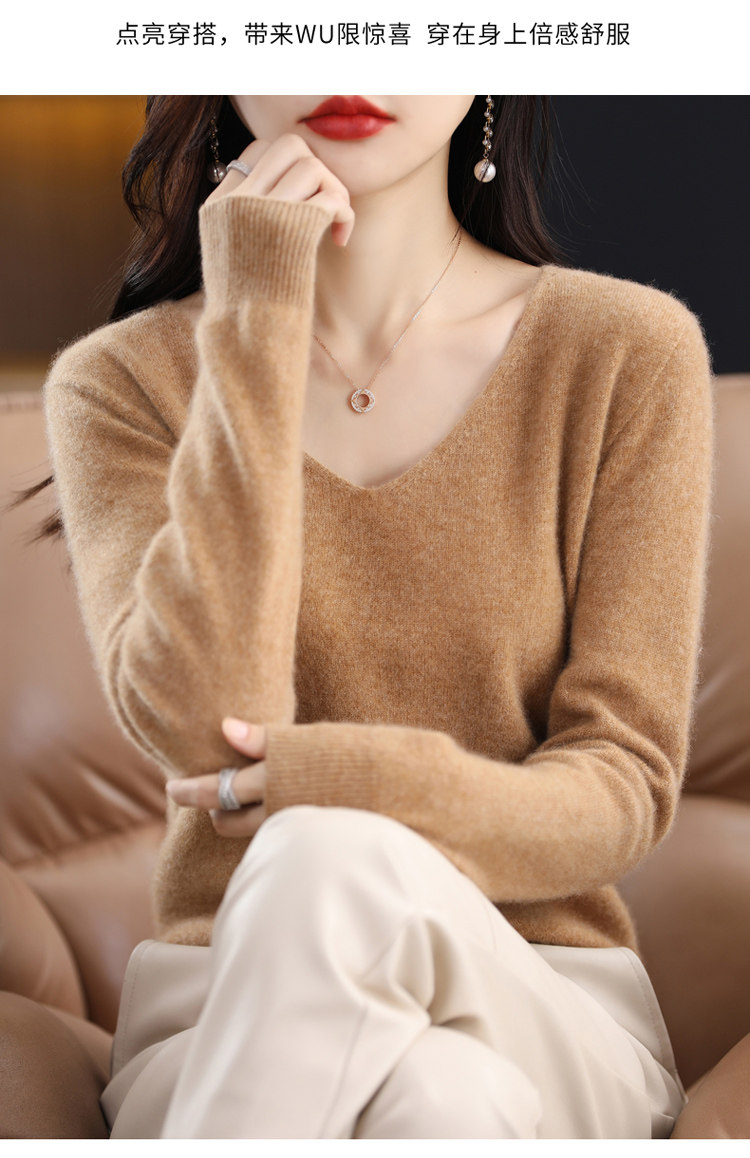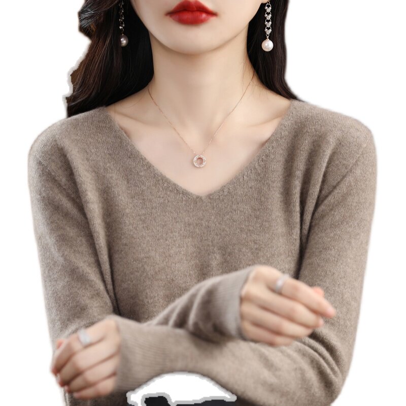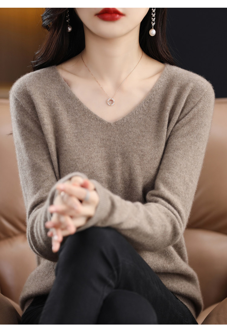 Кашемировый демисезонный шерстяной трикотажный свитер, V-образный вырез, оверсайз