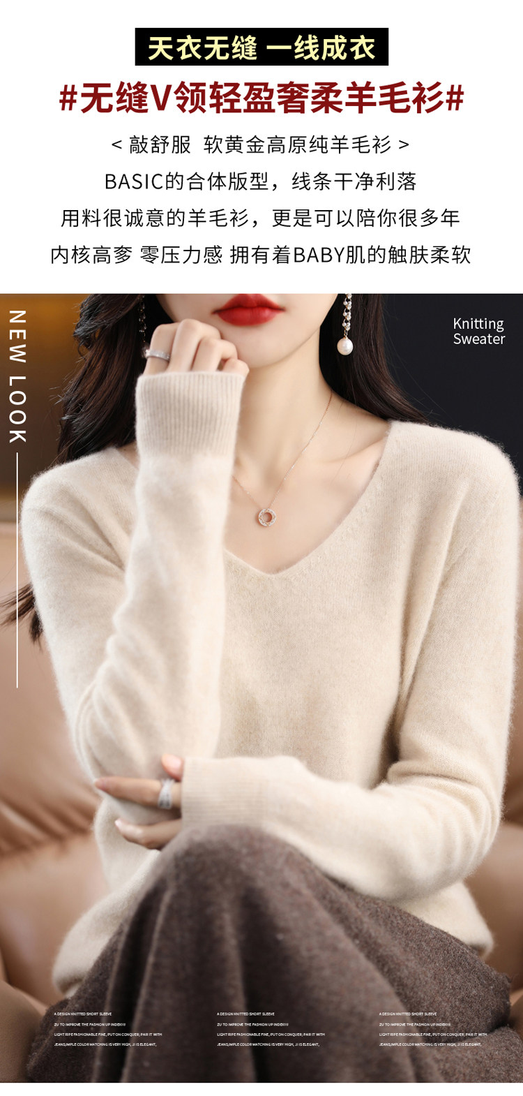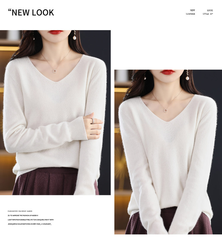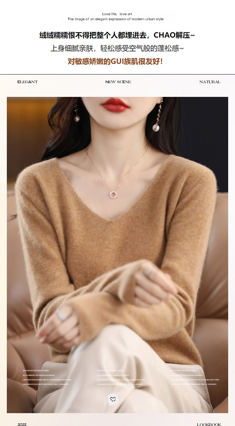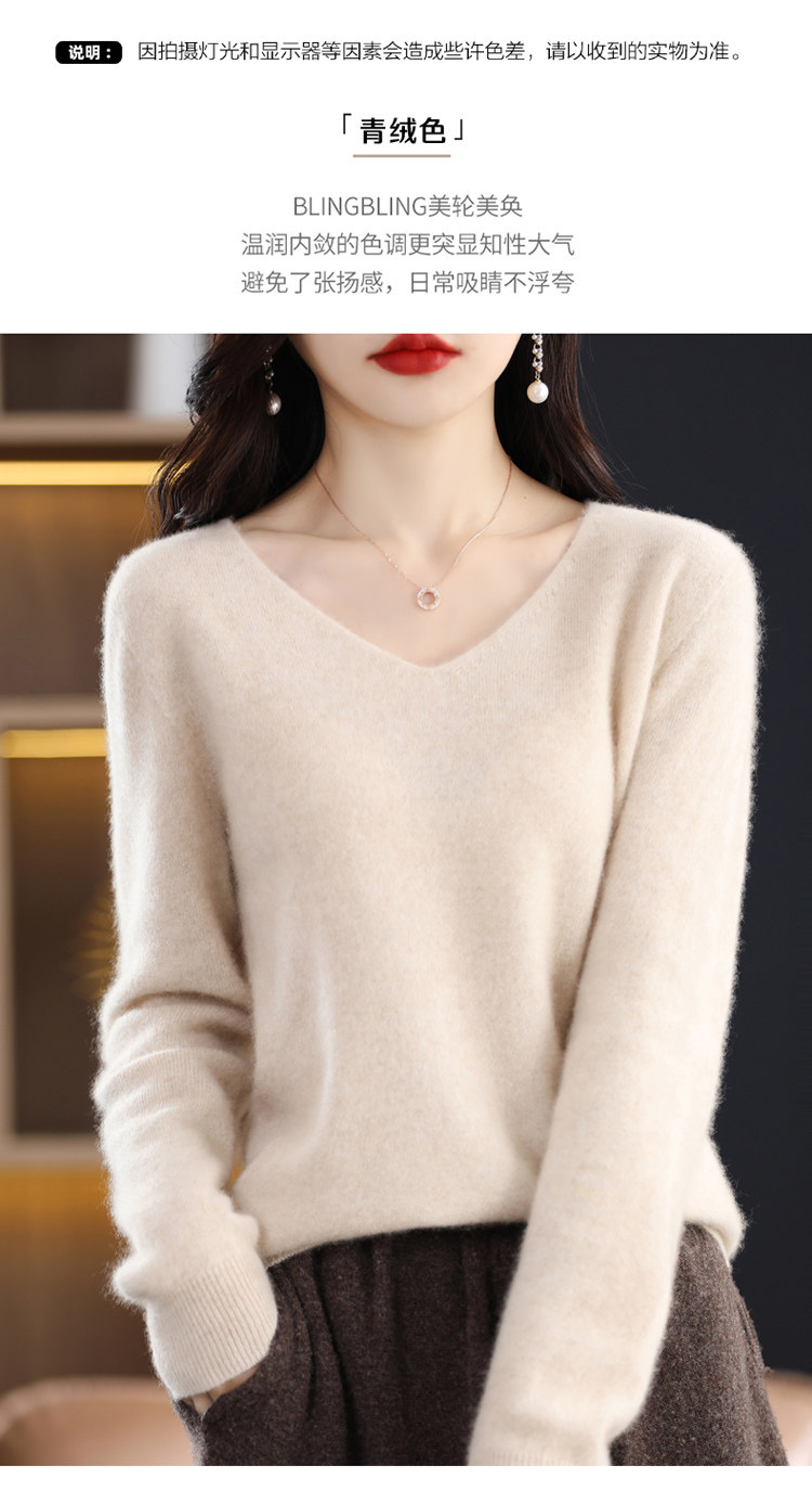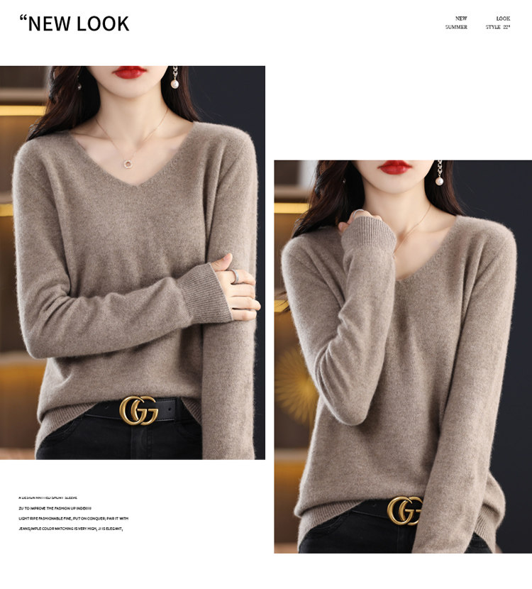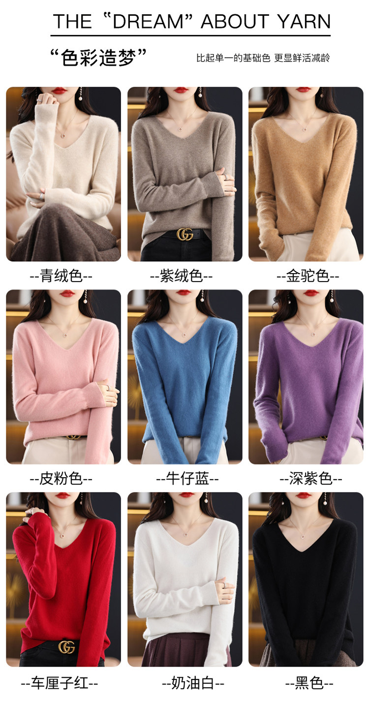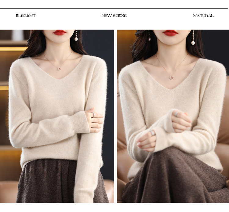 Кашемировый демисезонный шерстяной трикотажный свитер, V-образный вырез, оверсайз