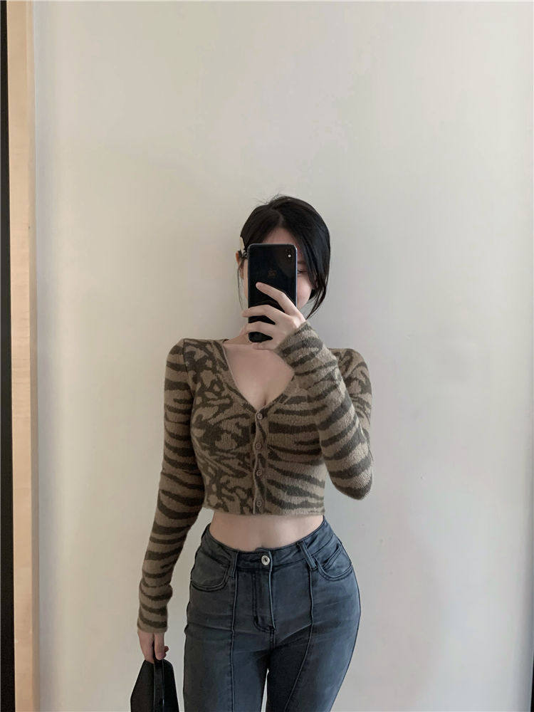 Сексуальный трикотажный демисезонный атмосферный дизайнерский кардиган, короткий свитер, тренд сезона
