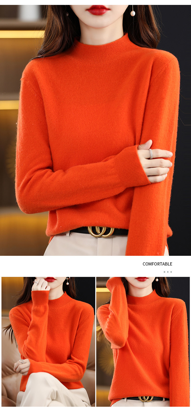Кашемировый базовый шерстяной осенний свитер, высокий воротник, увеличенная толщина