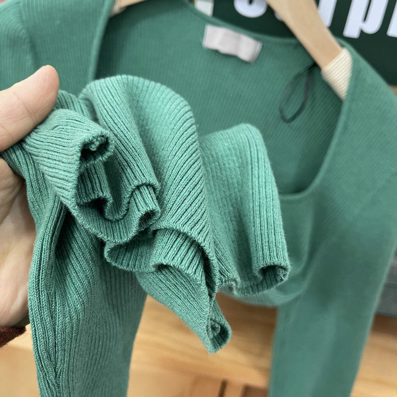 Сексуальный свитер, комплект, V-образный вырез, высокий воротник, облегающий крой