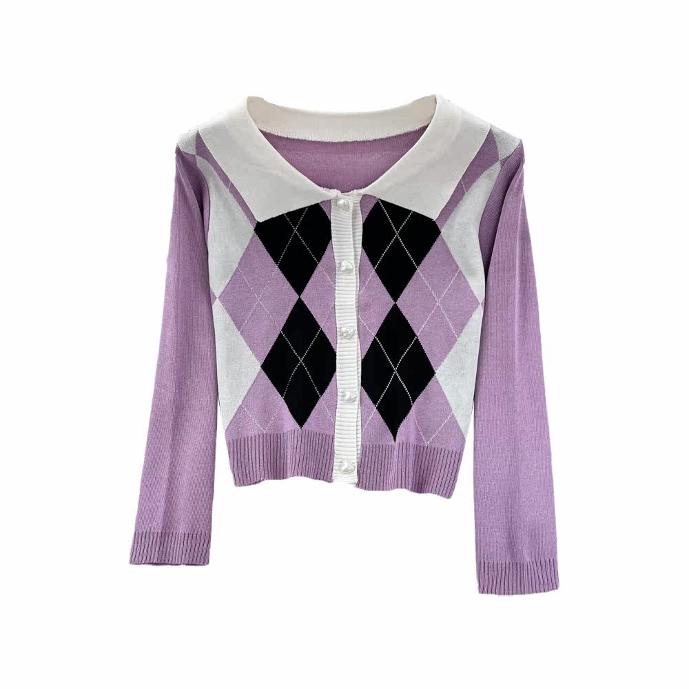 Дизайнерский трикотажный осенний свитер с ромбовидным узором, ретро кардиган, тренд сезона, в американском стиле