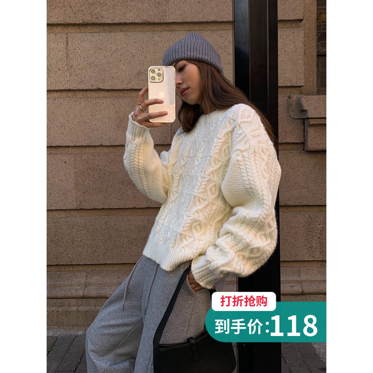 Бежевый свитер, весенний трикотажный комплект, 2023, тренд сезона