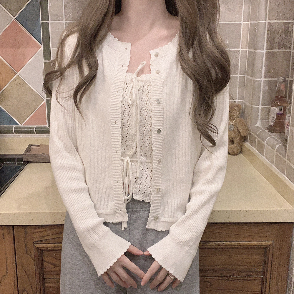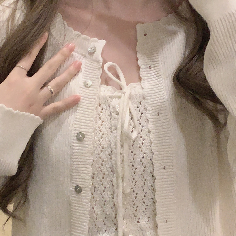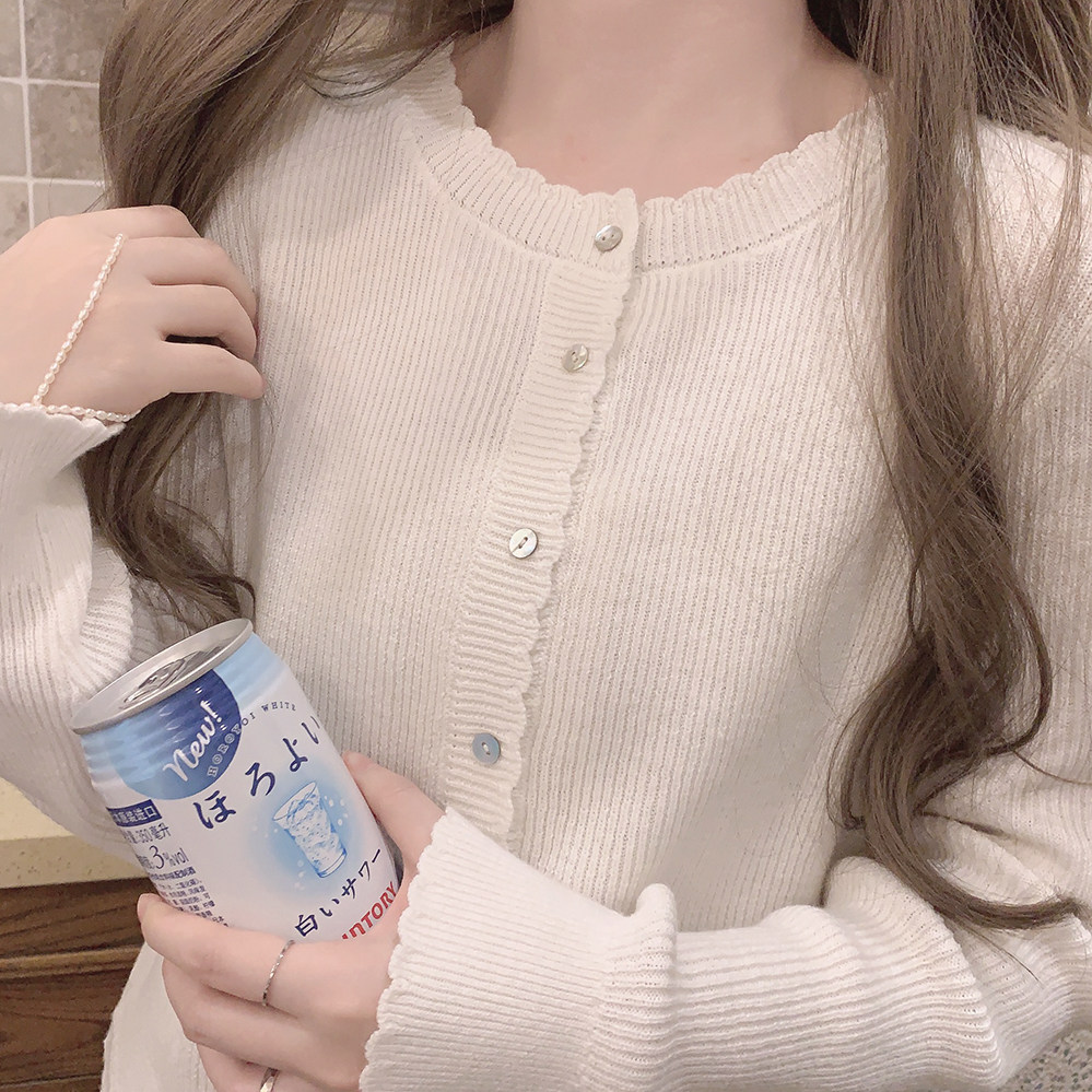 *Натуральная пряжка для раковины маленькое кружево, простота японской девушки, позитивная длинная длинная вязаная кардиган