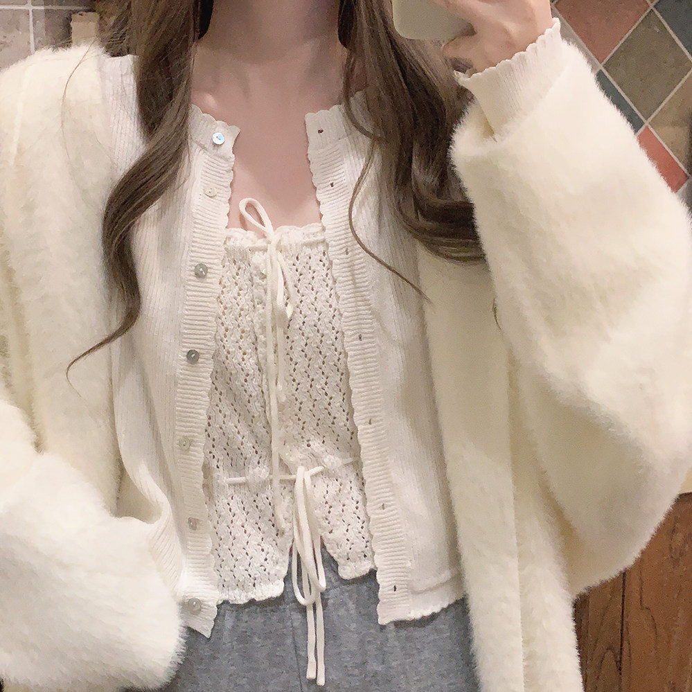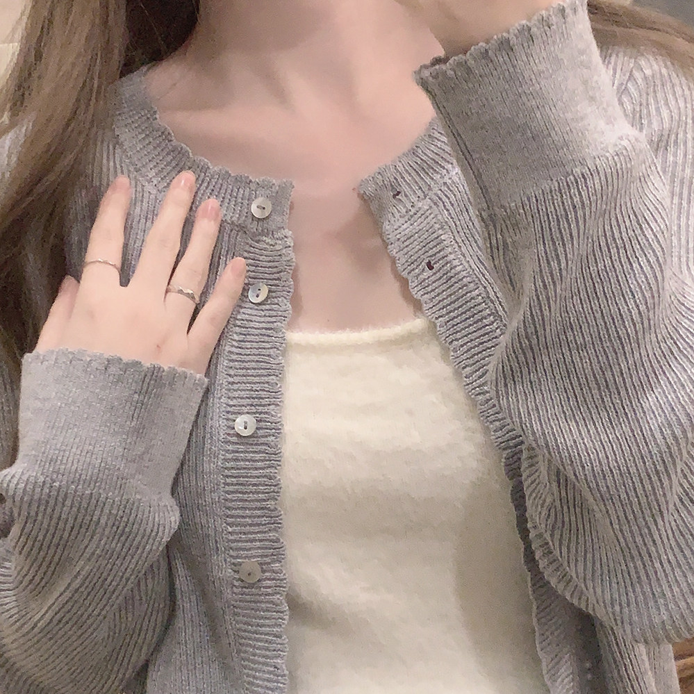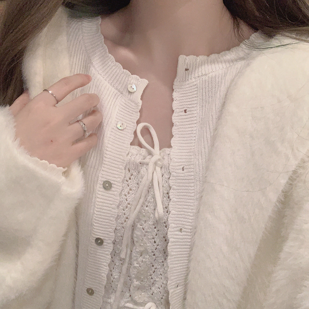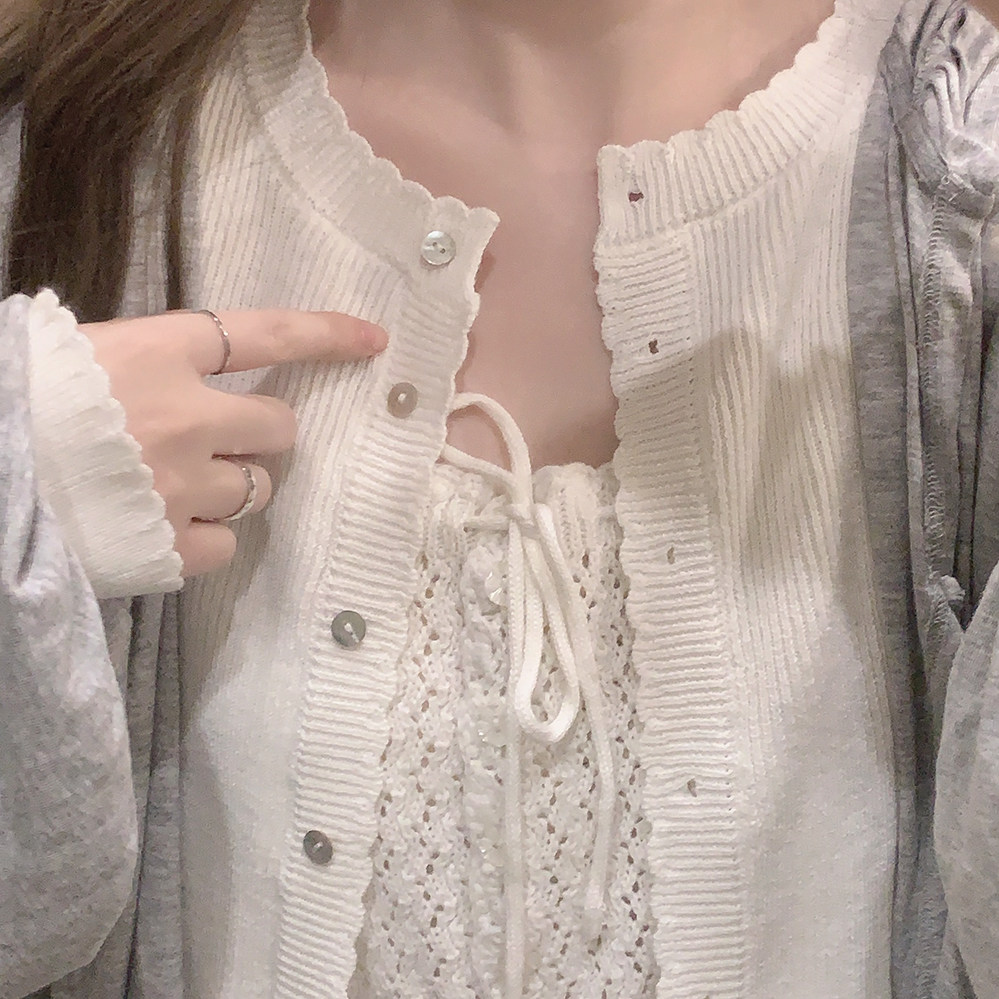 *Натуральная пряжка для раковины маленькое кружево, простота японской девушки, позитивная длинная длинная вязаная кардиган