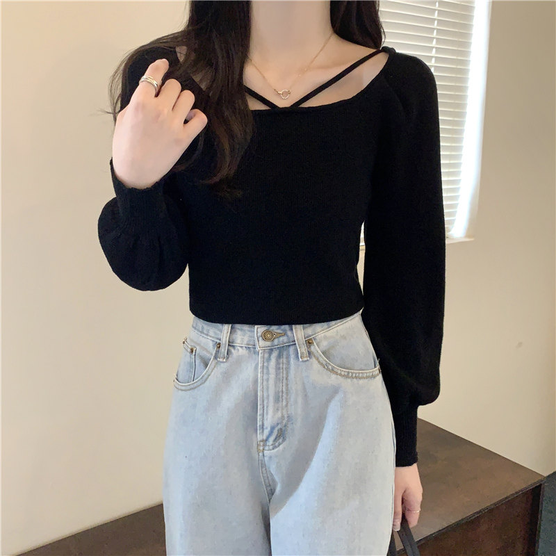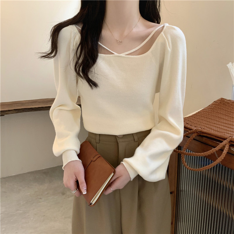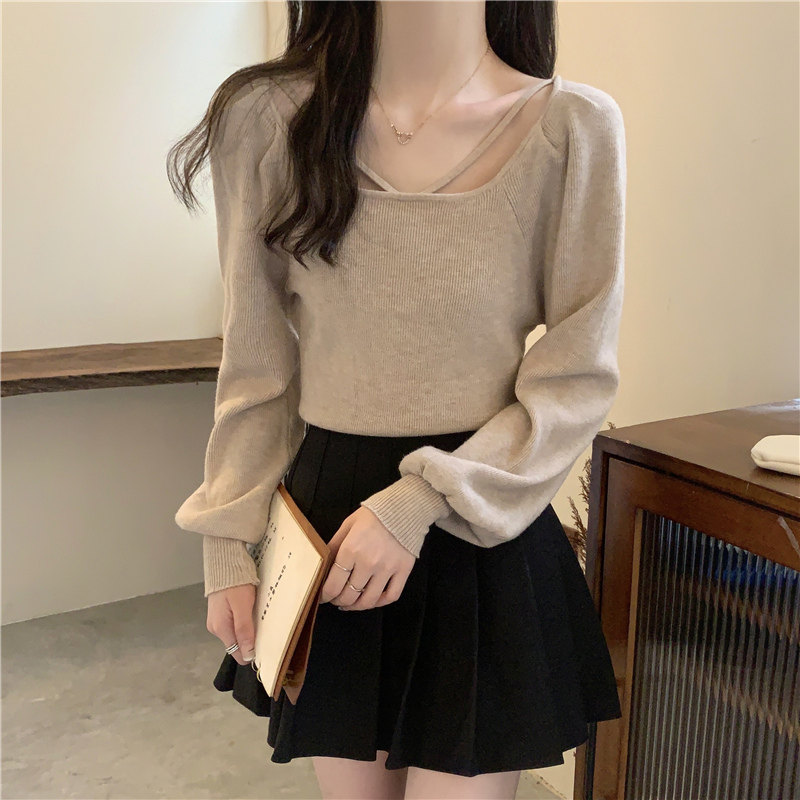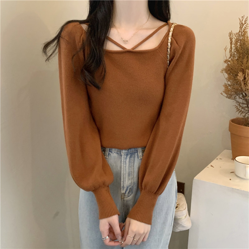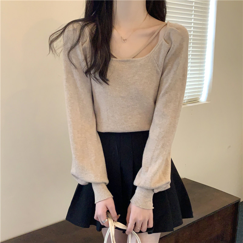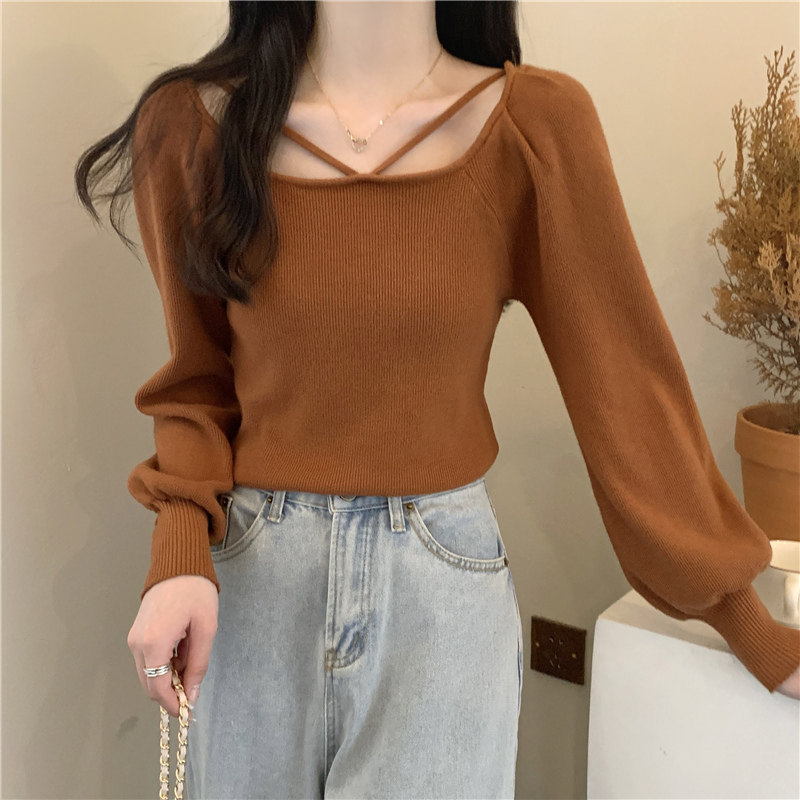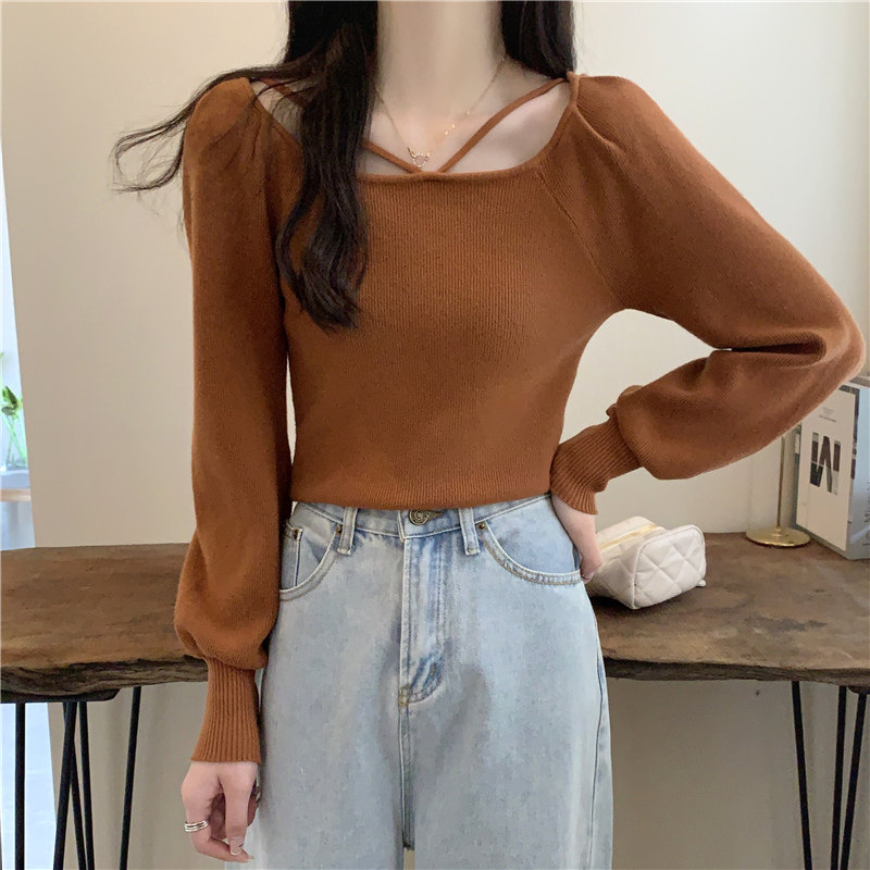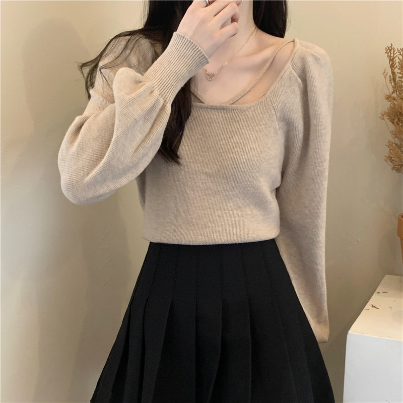 Модный фонарь, базовый свитер, приятное телу демисезонное термобелье, лонгслив, в западном стиле, французский стиль, квадратный вырез