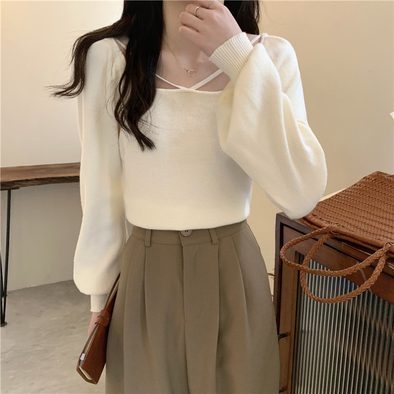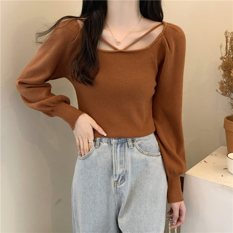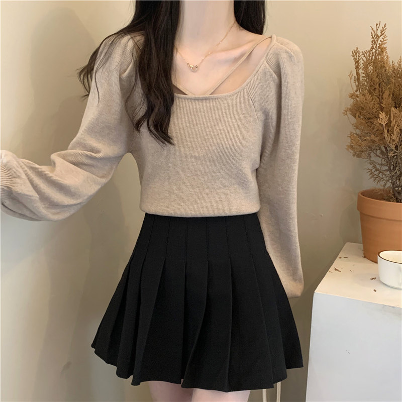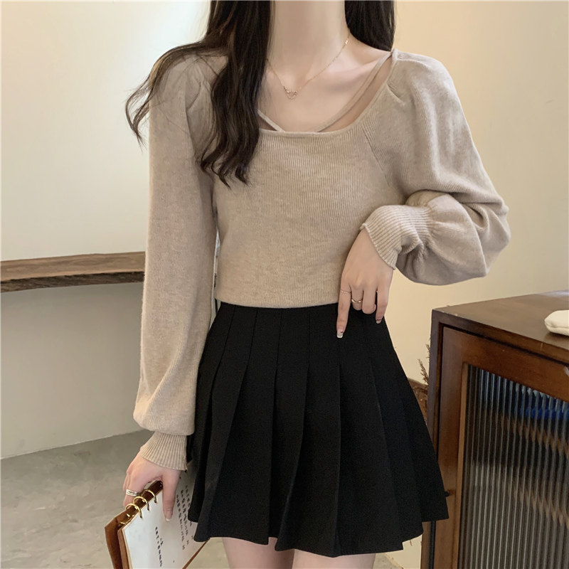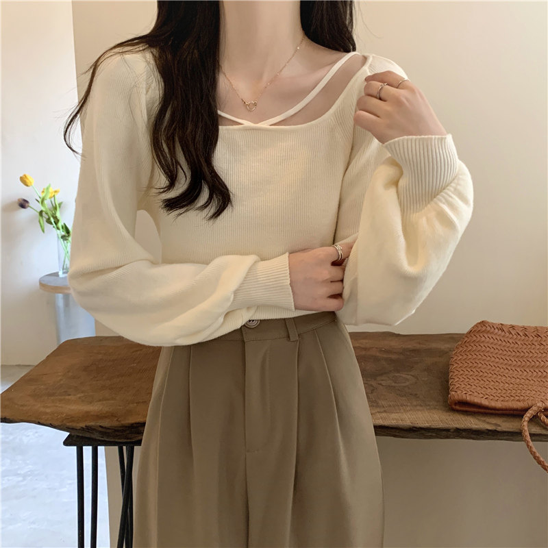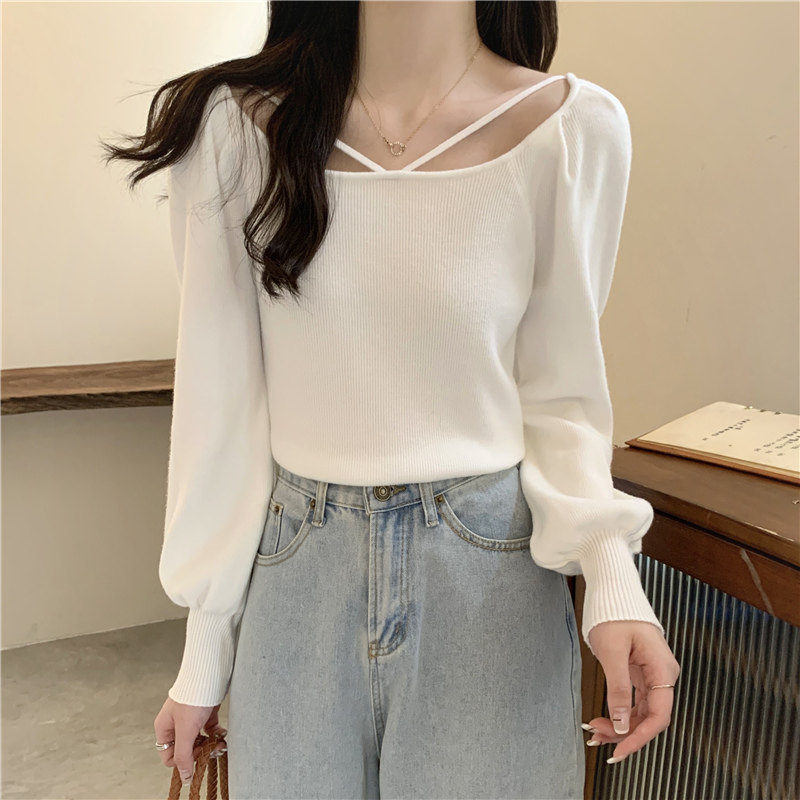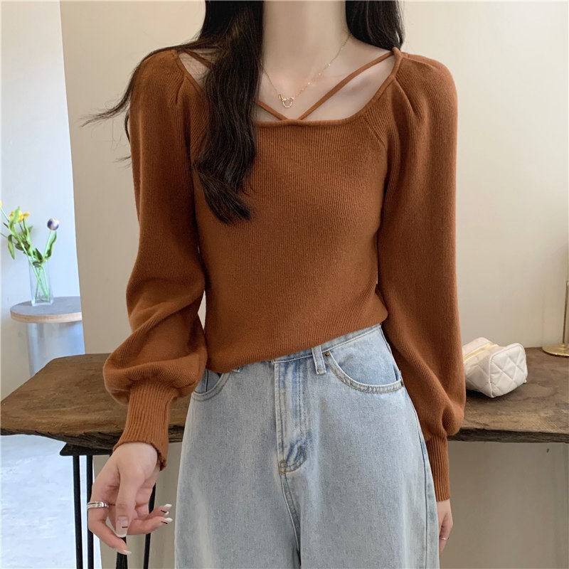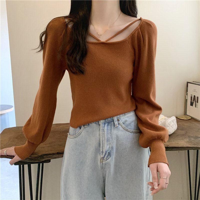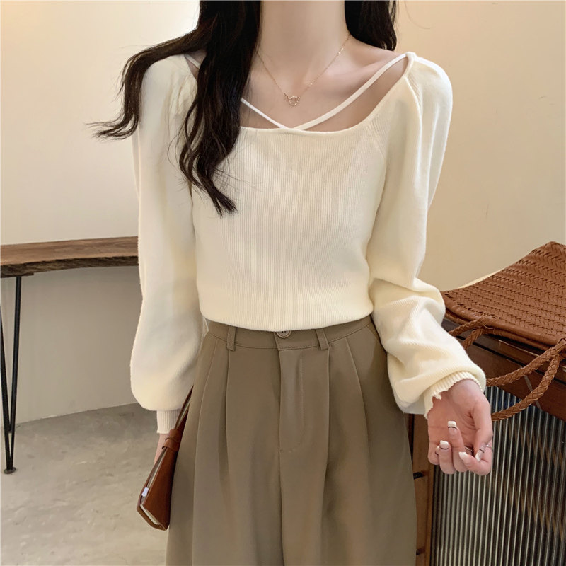 Модный фонарь, базовый свитер, приятное телу демисезонное термобелье, лонгслив, в западном стиле, французский стиль, квадратный вырез