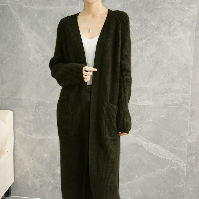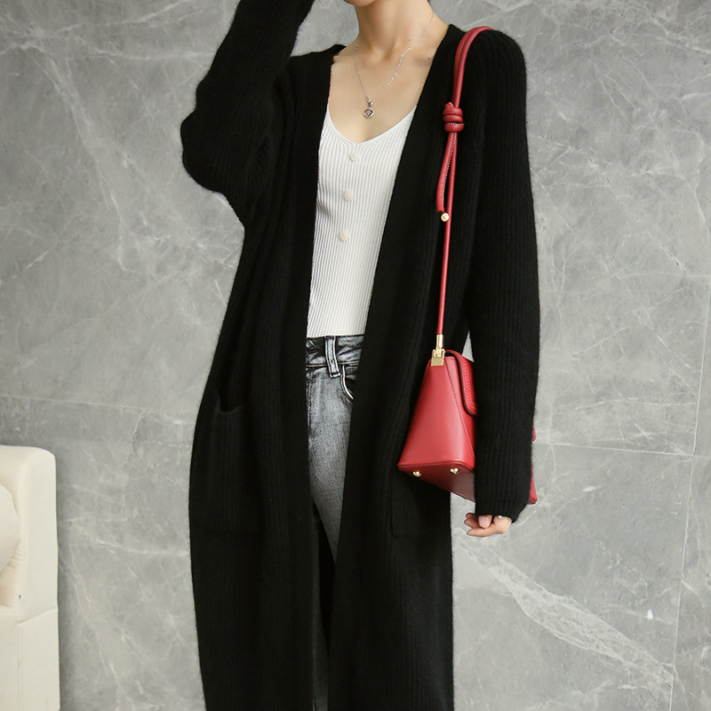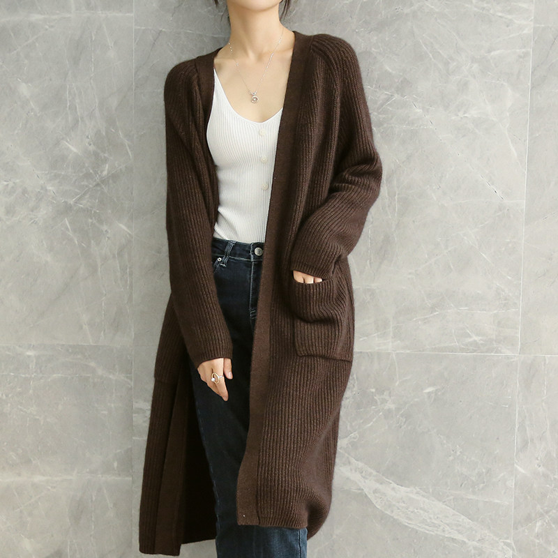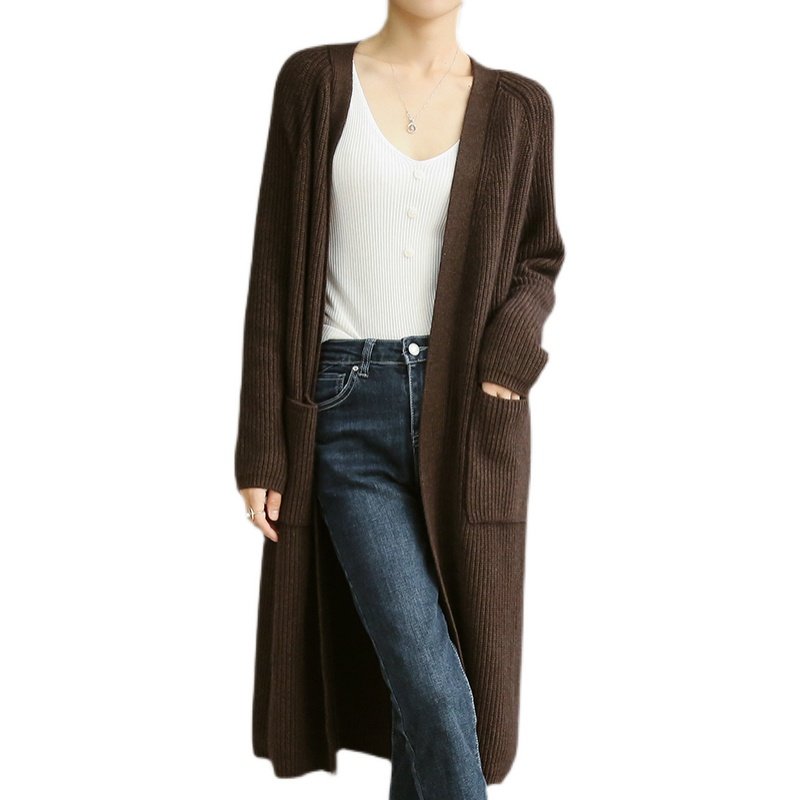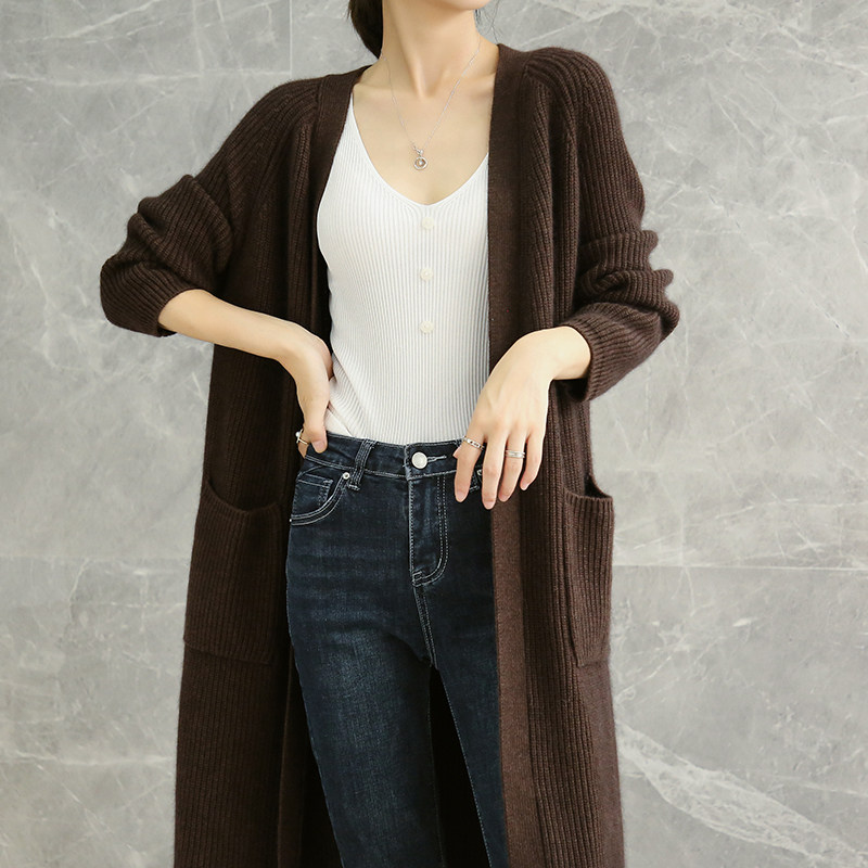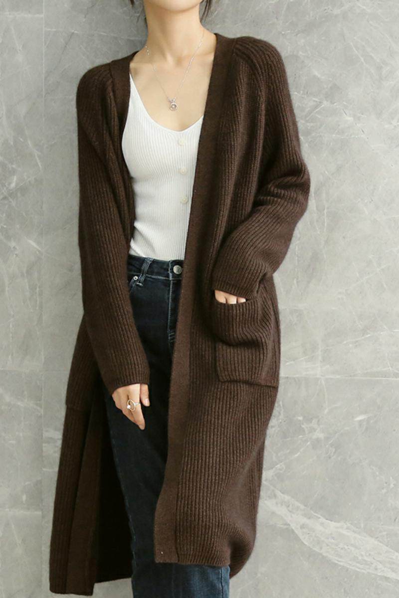 Кашемировый осенний демисезонный свитер, шерстяное пальто, длинный кардиган, свободный крой, средней длины