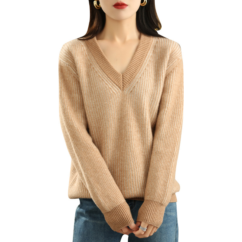 Шерстяной трикотажный кашемировый базовый приятный телу свитер, оверсайз, увеличенная толщина, V-образный вырез