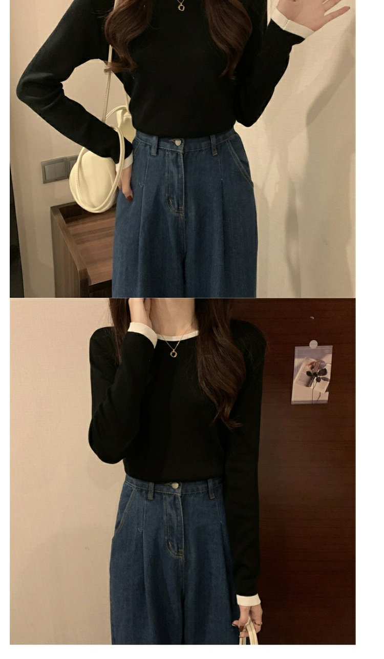 Осенний демисезонный трикотажный свитер, базовый приятный телу брендовый лонгслив