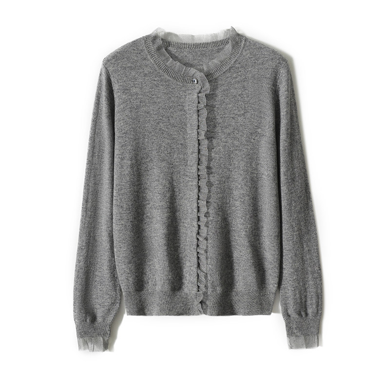 Темный кардиган, разработанный наполовину высоким вырезом,