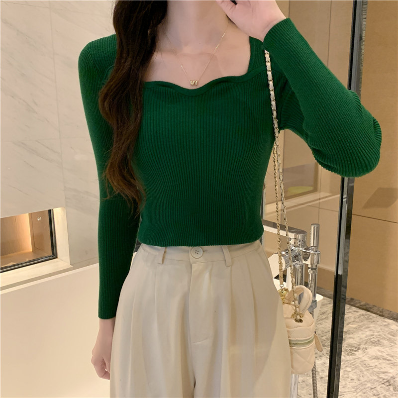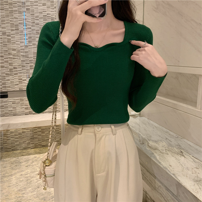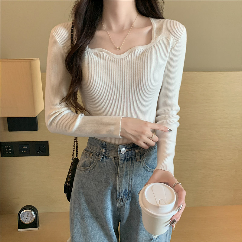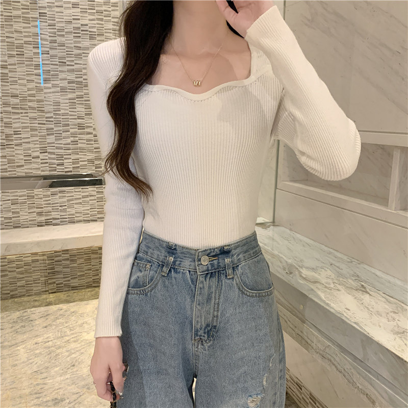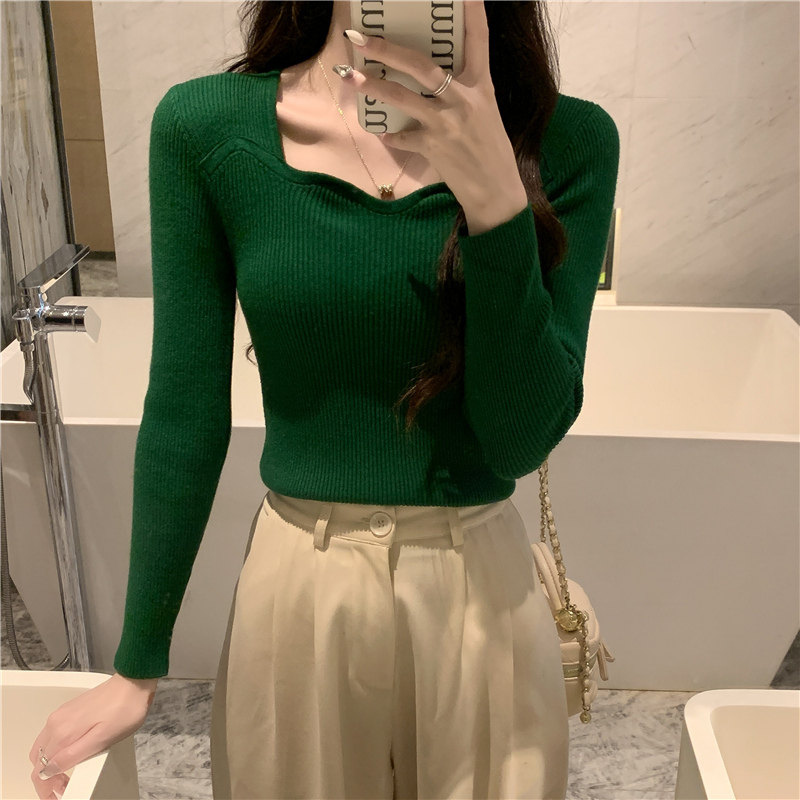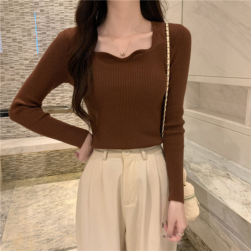 Демисезонный свитер, модный приталенный трикотажный лонгслив, французский стиль, квадратный вырез, в западном стиле