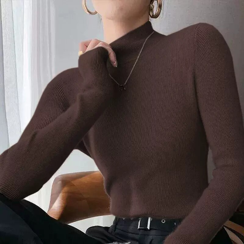 Весенний демисезонный трикотажный черный базовый приятный телу свитер, облегающий крой, в обтяжку, по фигуре