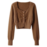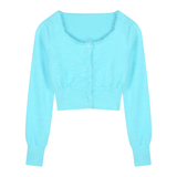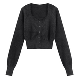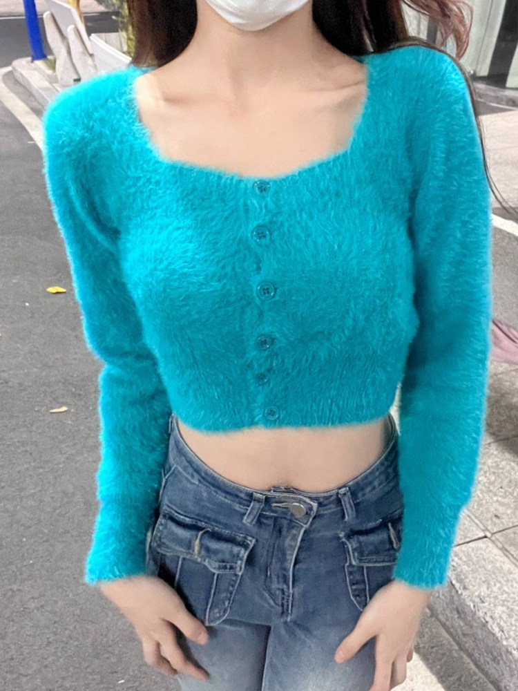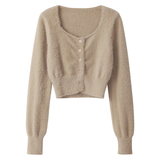 Бархатный короткий трикотажный демисезонный кардиган, базовый свитер, куртка, квадратный вырез, коллекция 2023, облегающий крой