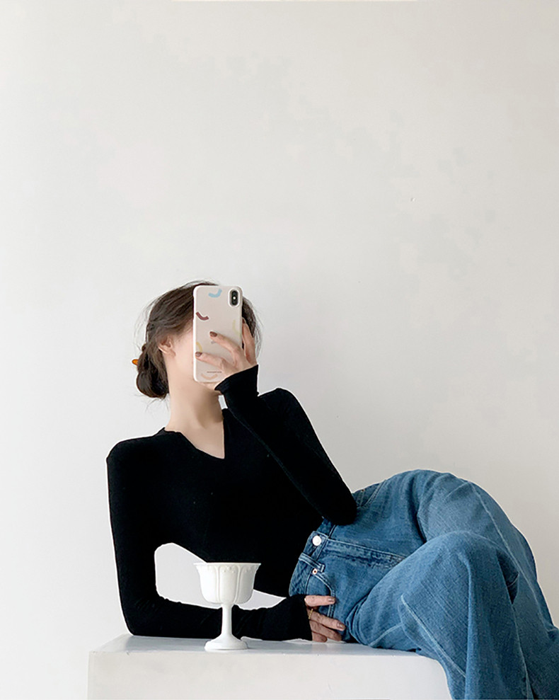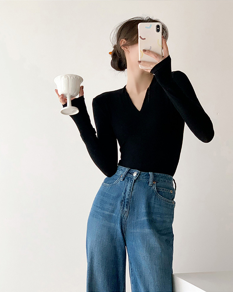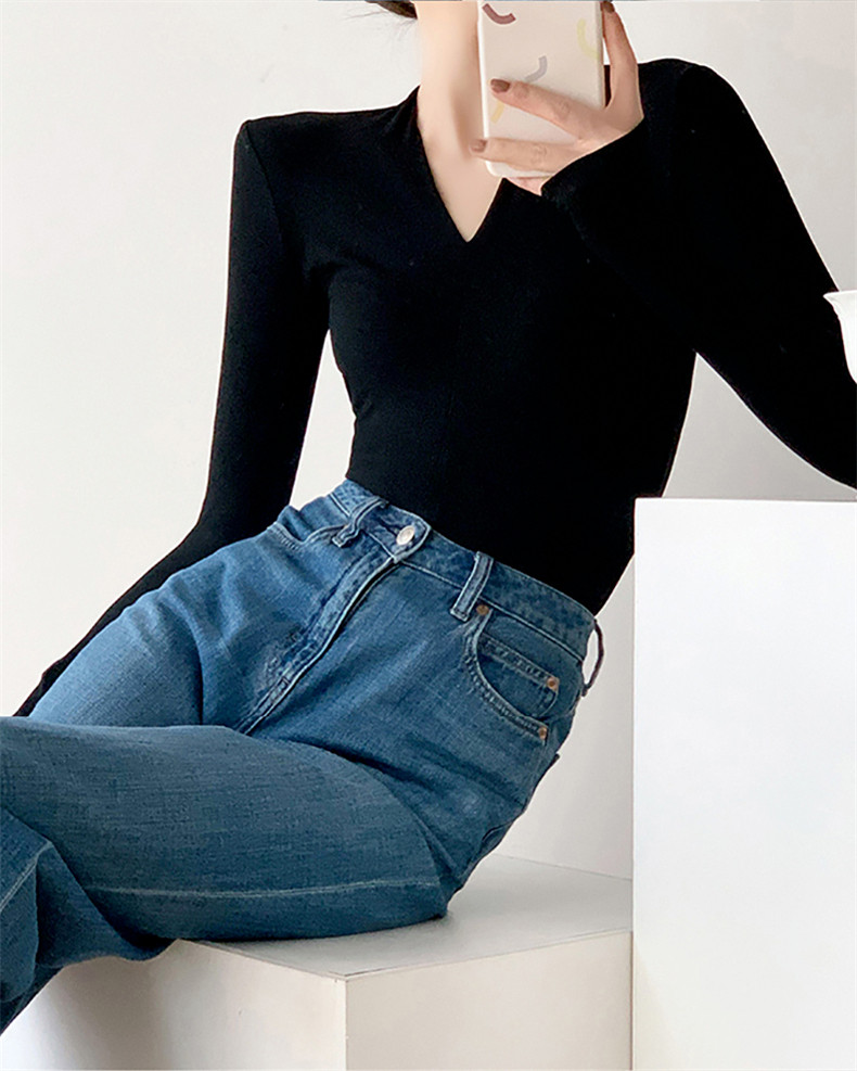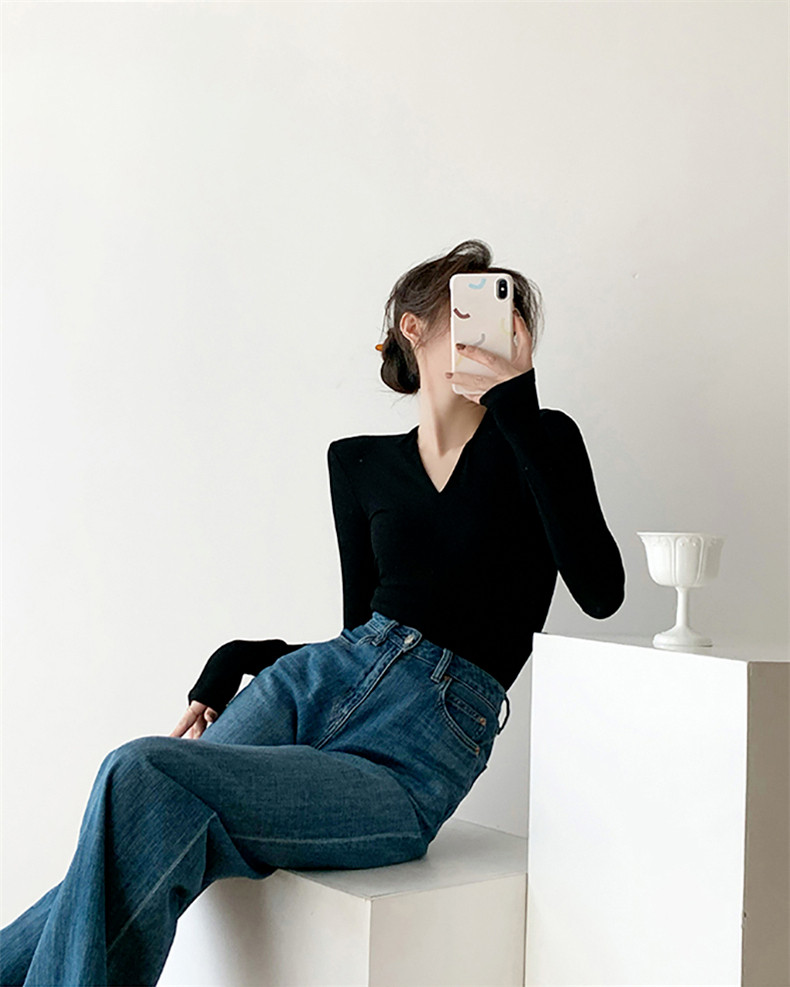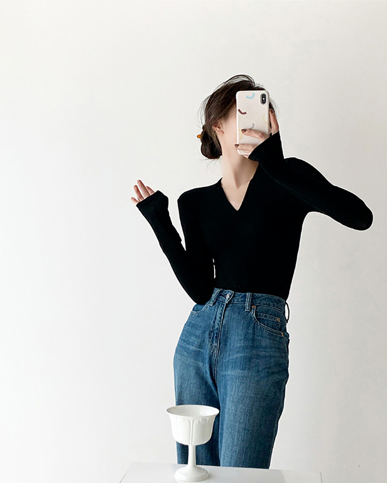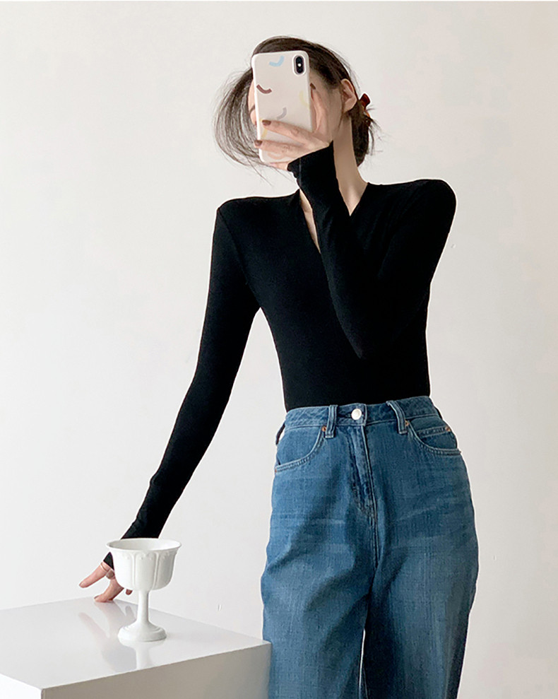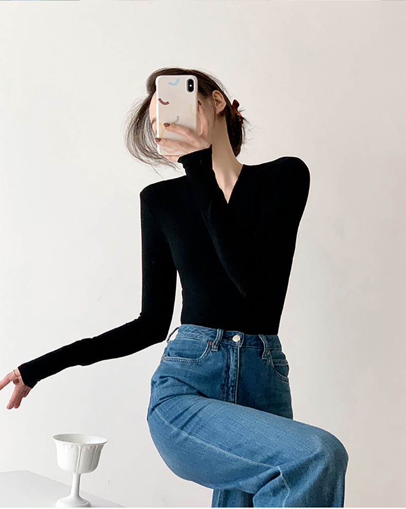 Черный базовый приятный телу осенний лонгслив, демисезонный трикотажный свитер, 2024 года, облегающий крой