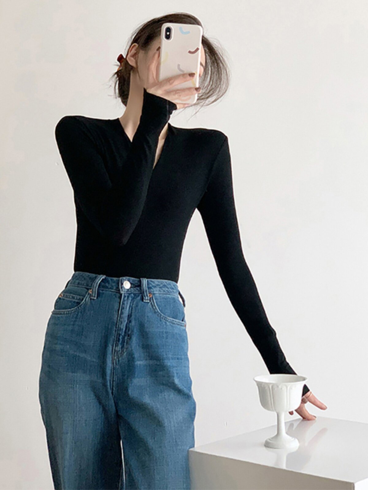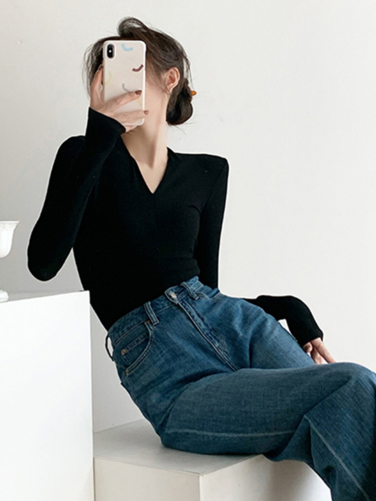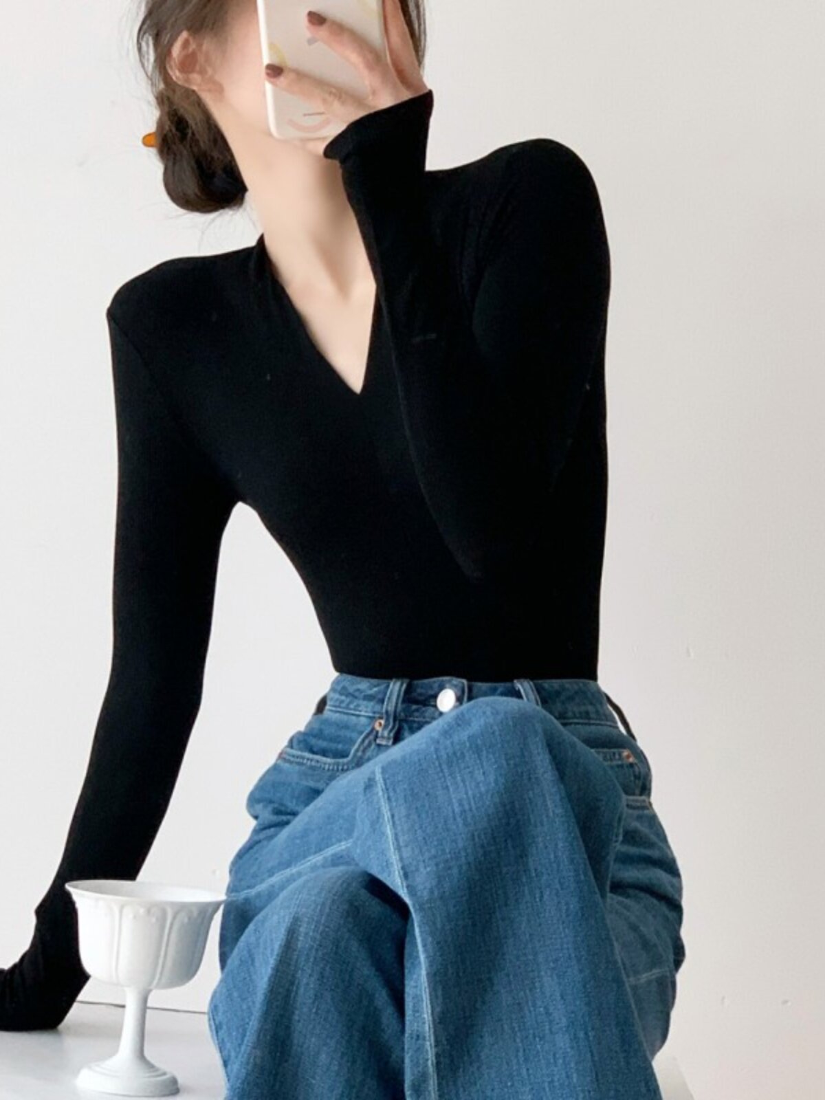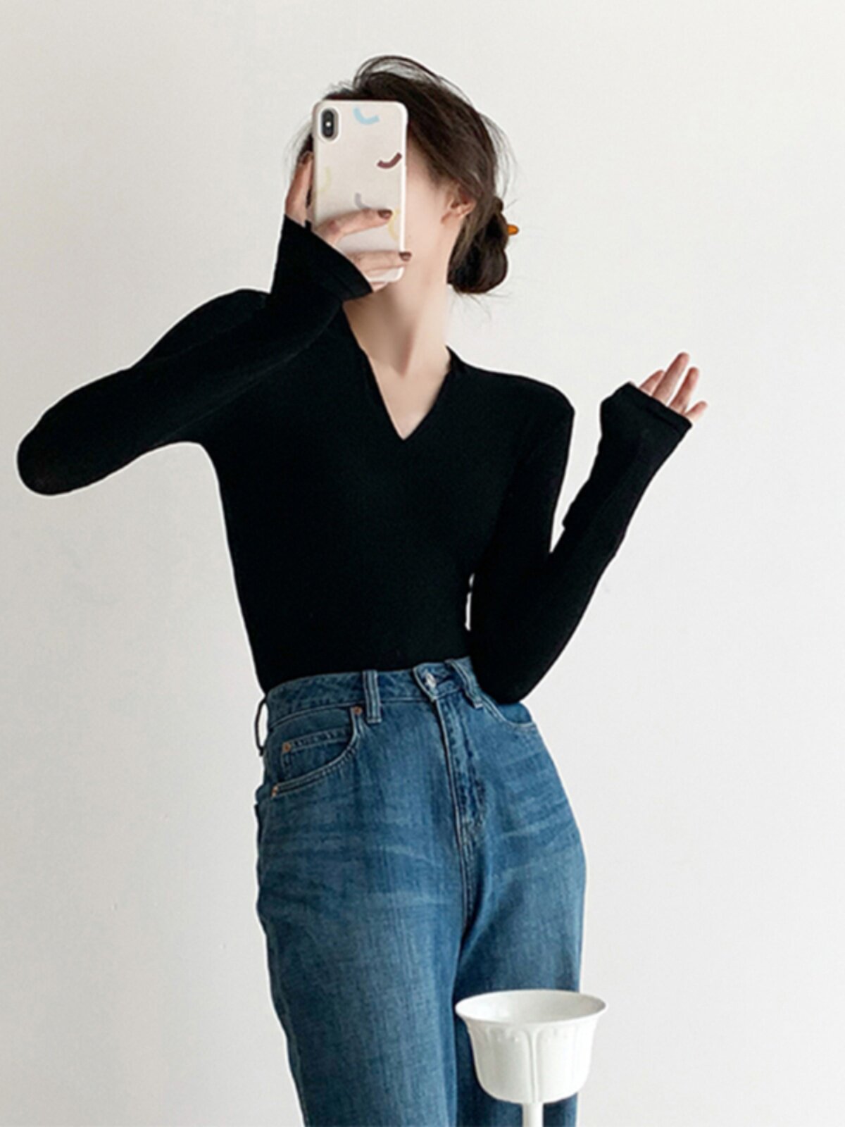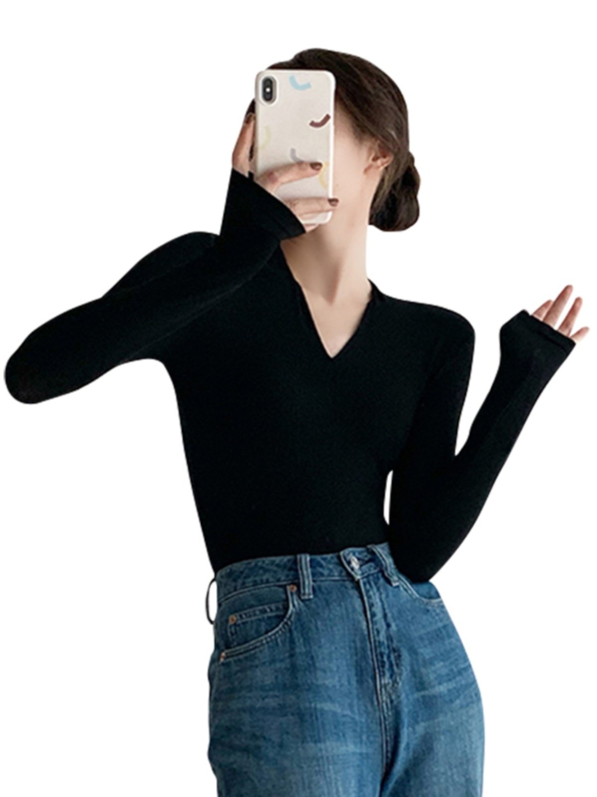 Черный базовый приятный телу осенний лонгслив, демисезонный трикотажный свитер, 2024 года, облегающий крой