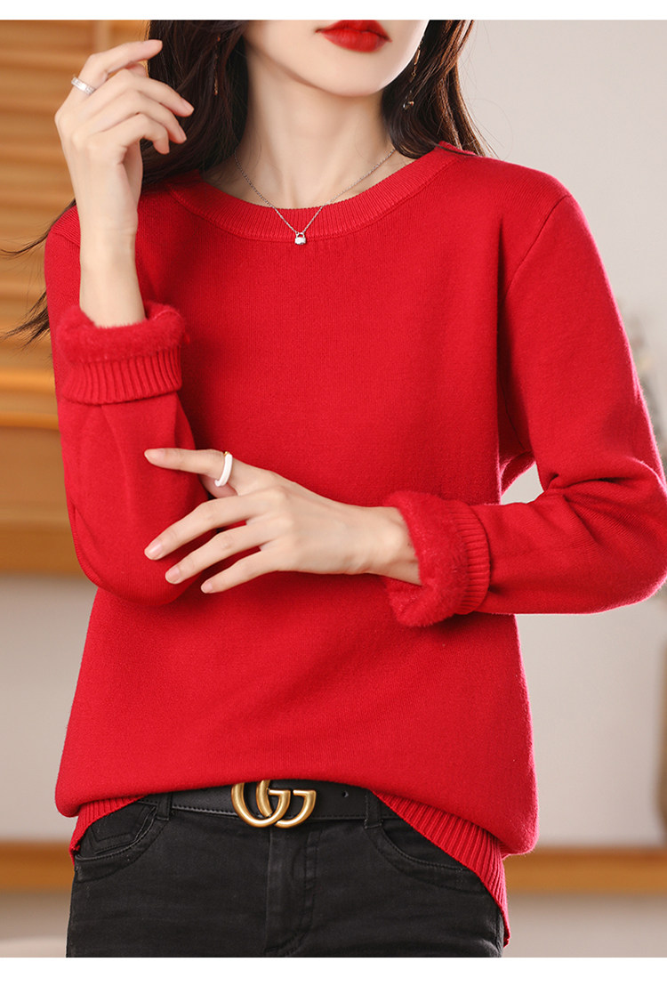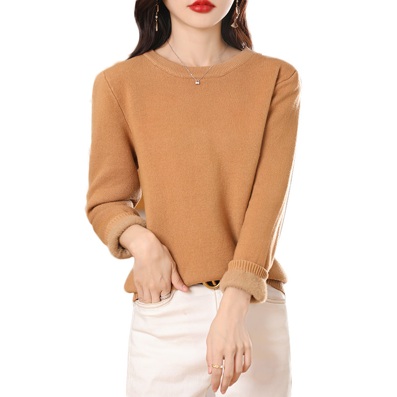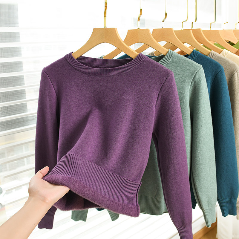 Бархатный зимний утепленный свитер, демисезонный трикотажный базовый лонгслив с круглым воротником, свободный крой
