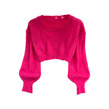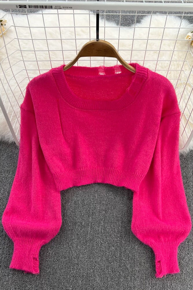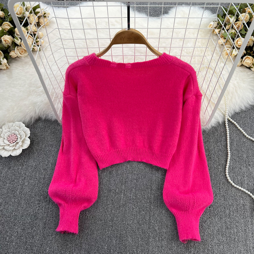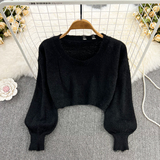 Ретро лонгслив с круглым воротником, короткий трикотажный свитер, европейский стиль, высокая талия, в западном стиле