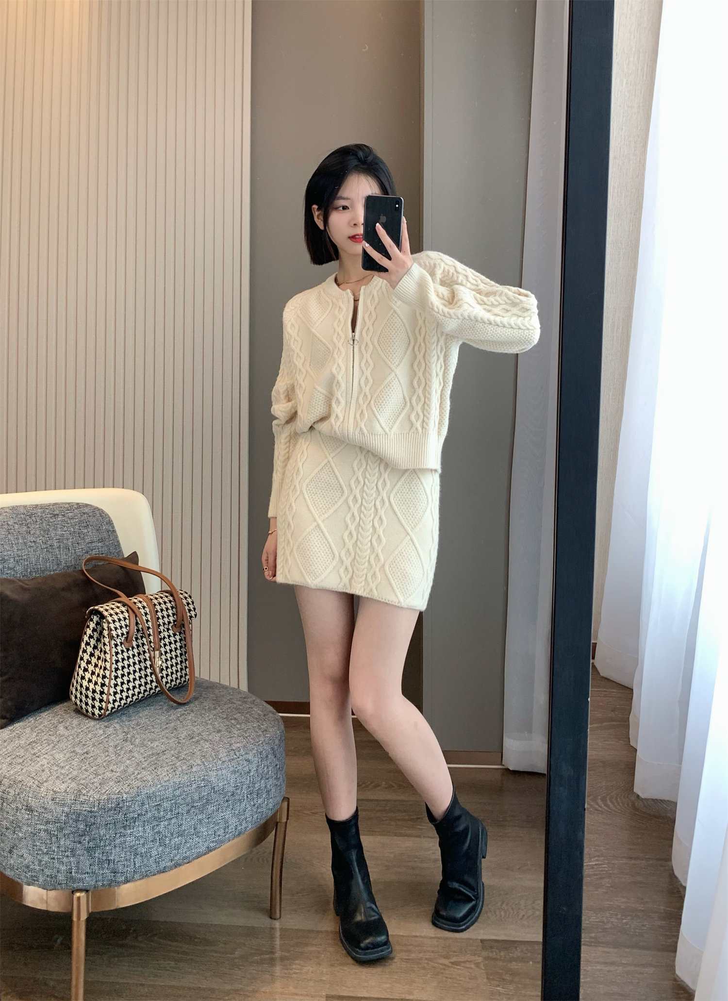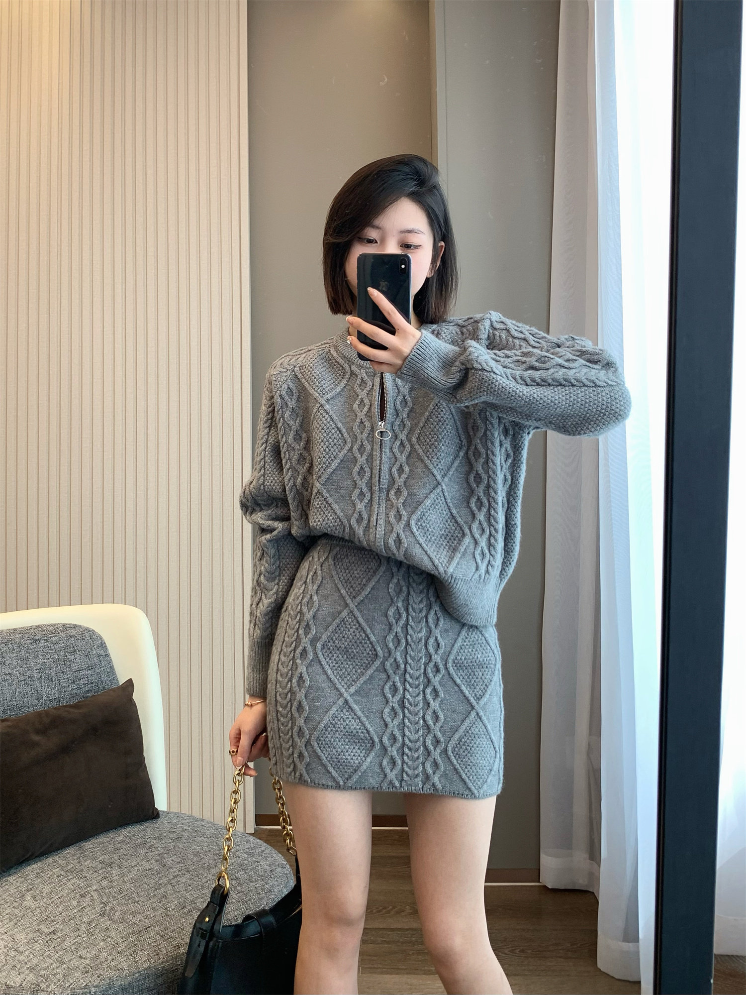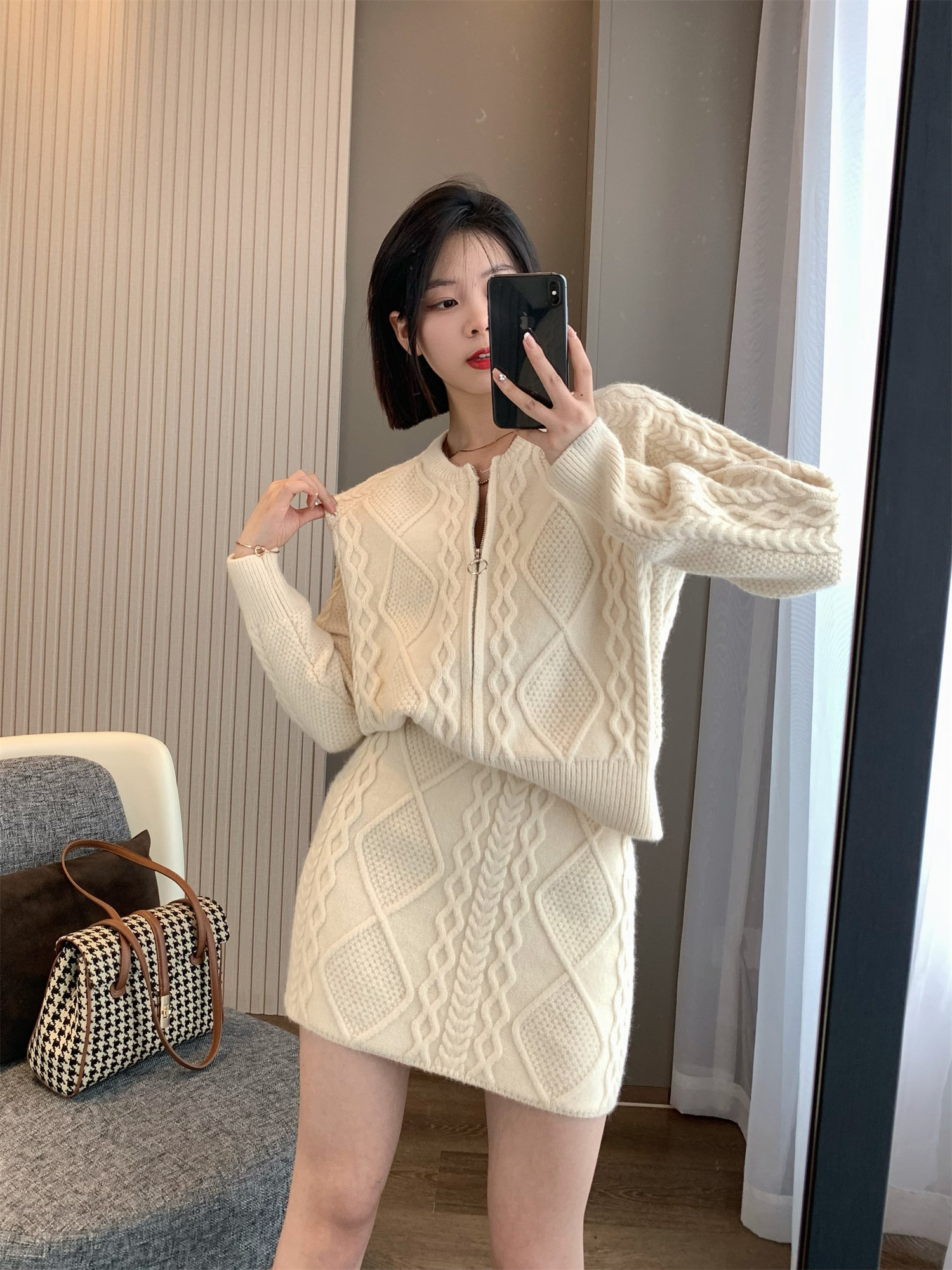 Демисезонный ретро кашемировый свитер с косичкой, трикотажная юбка, комплект