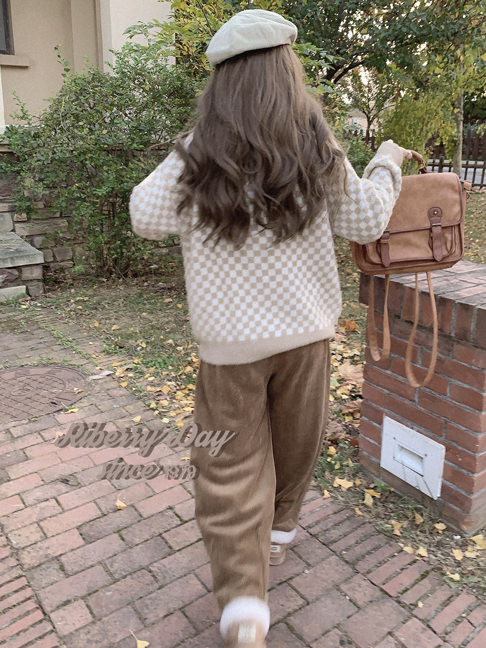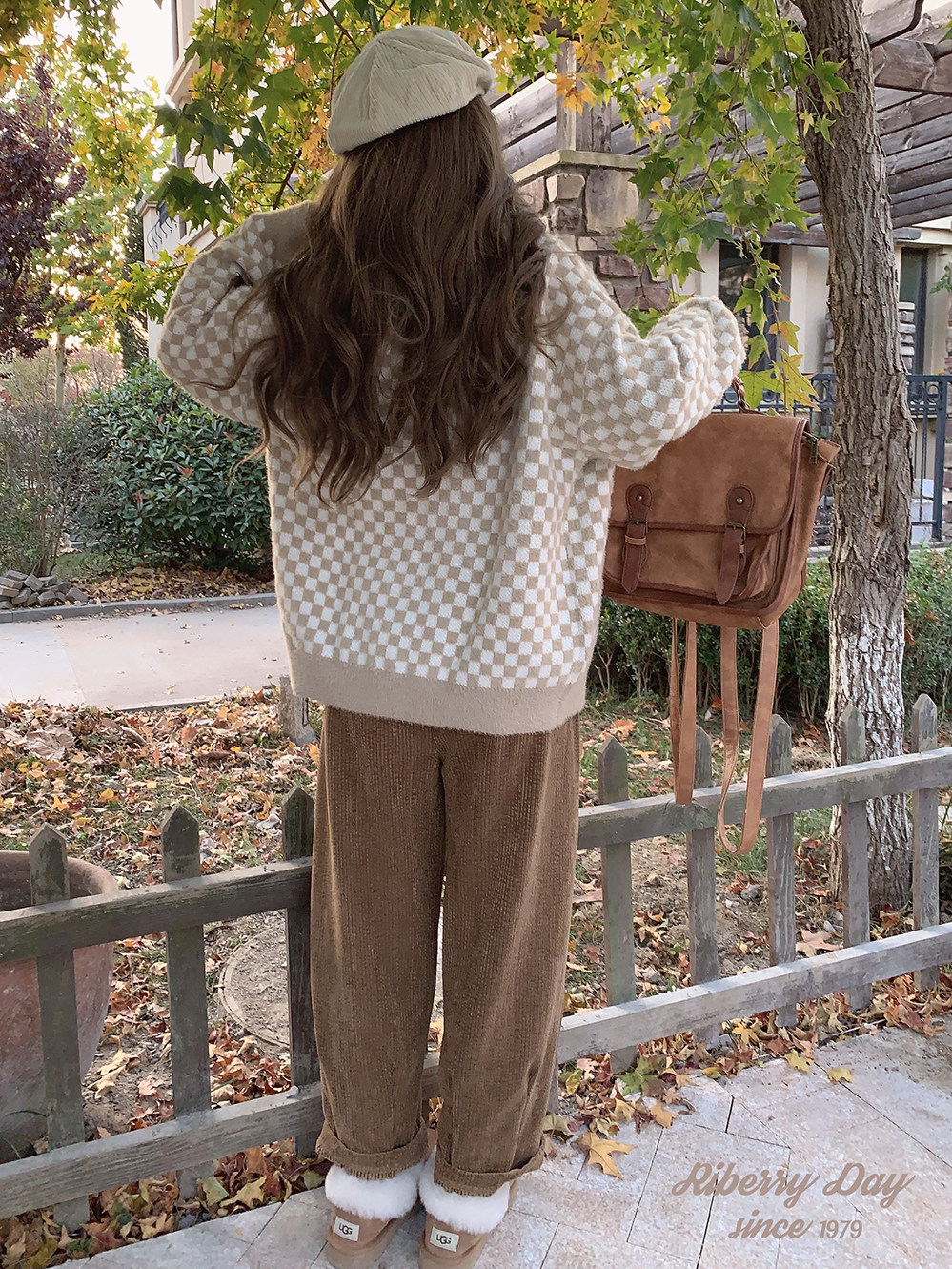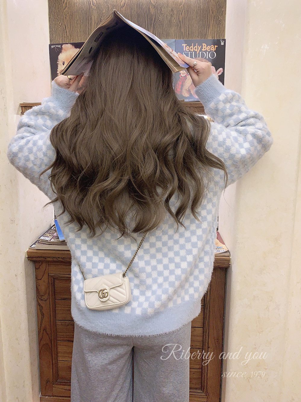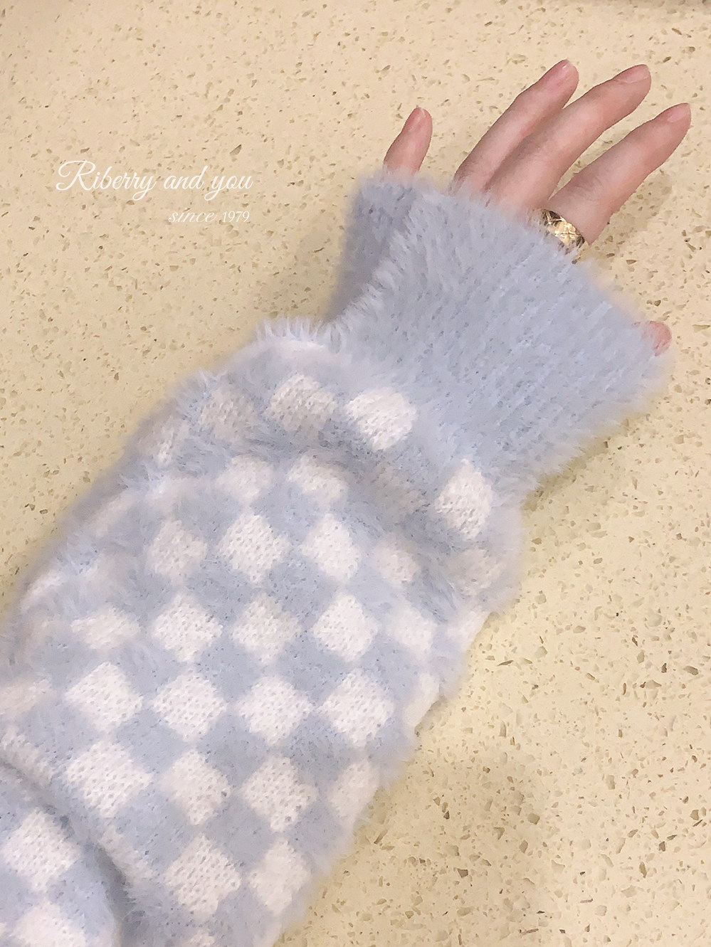 Бархатные синие белые шахматы, цветной трикотажный кардиган, свитер, искусственный мех, свободный крой