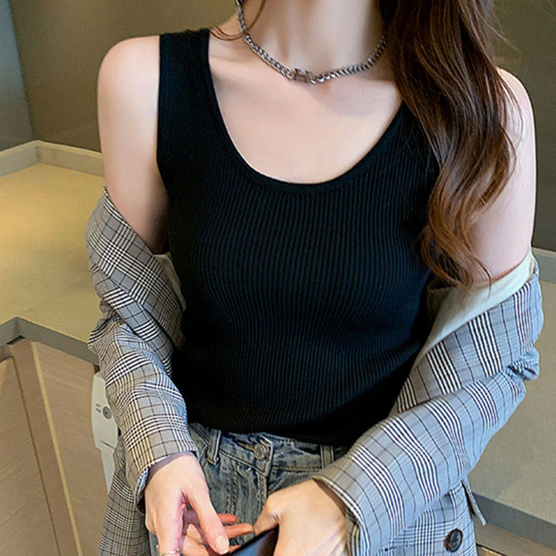 Утепленный топ с чашечками, трикотажный свитер, базовая куртка, французский стиль, в стиле Шанель